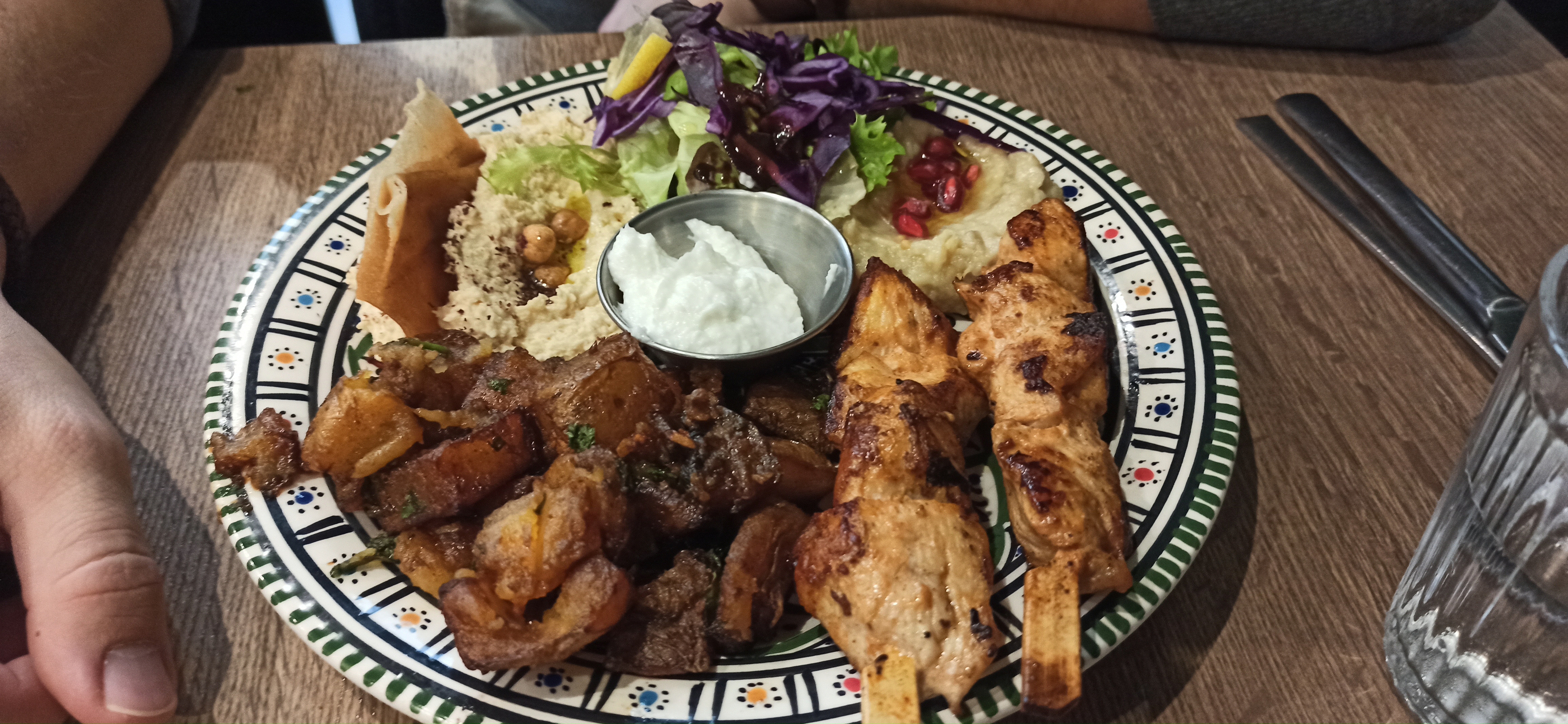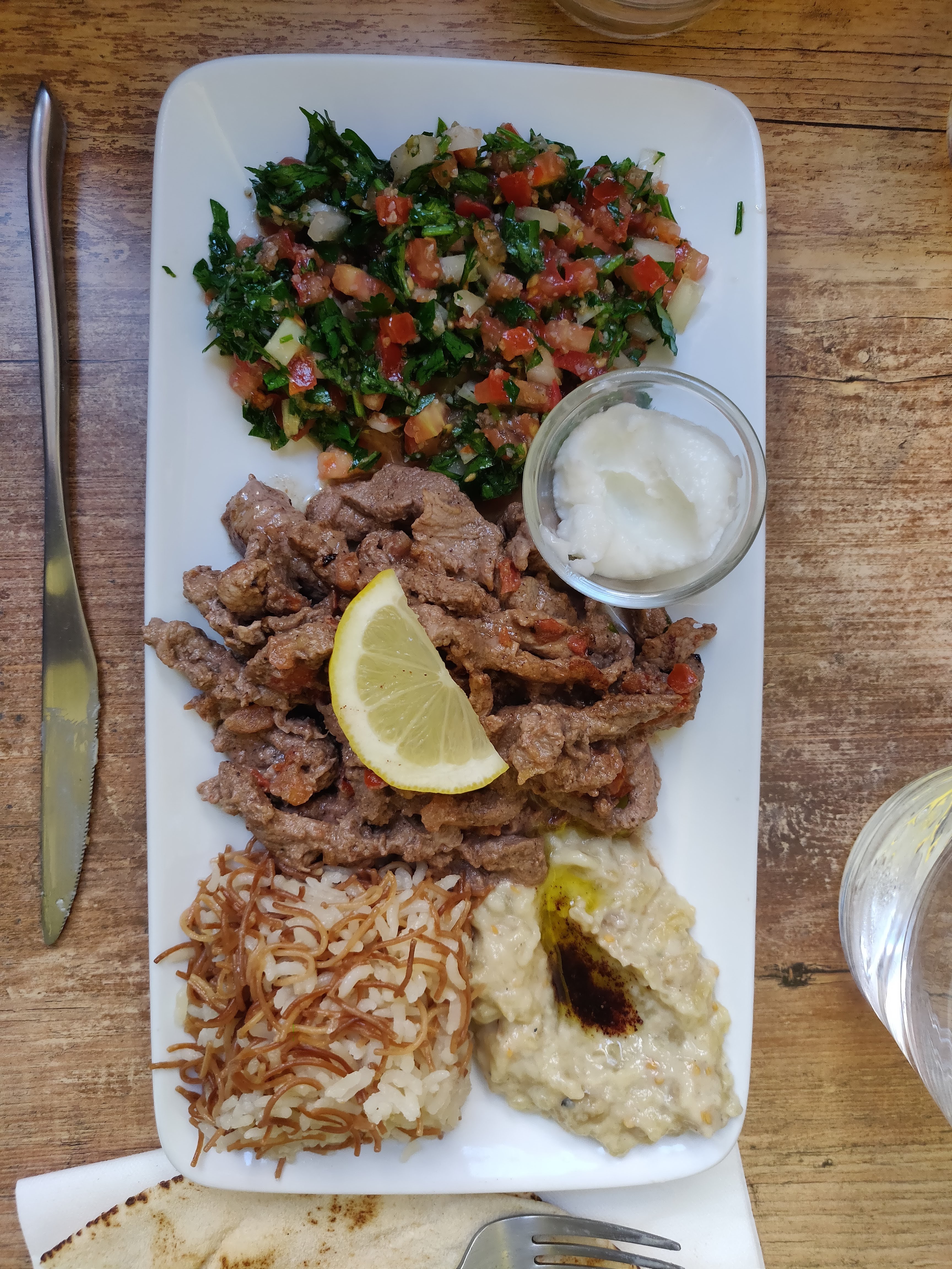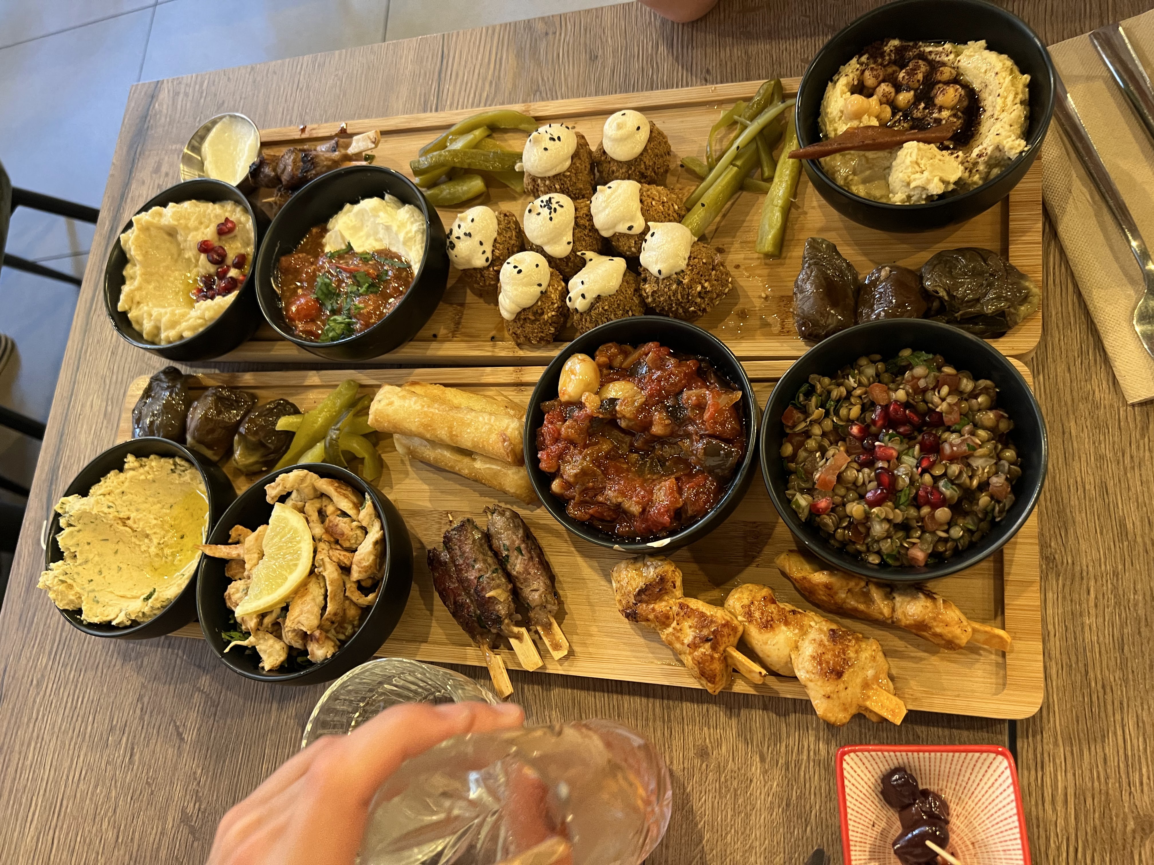 Bon resto libanais, la planche à partager est savoureuse mais pas assez de viande à mon goût, et un peu trop de sauce/houmous/caviar d'aubergine. Mais dans l'ensemble je recommande, service rapide :)