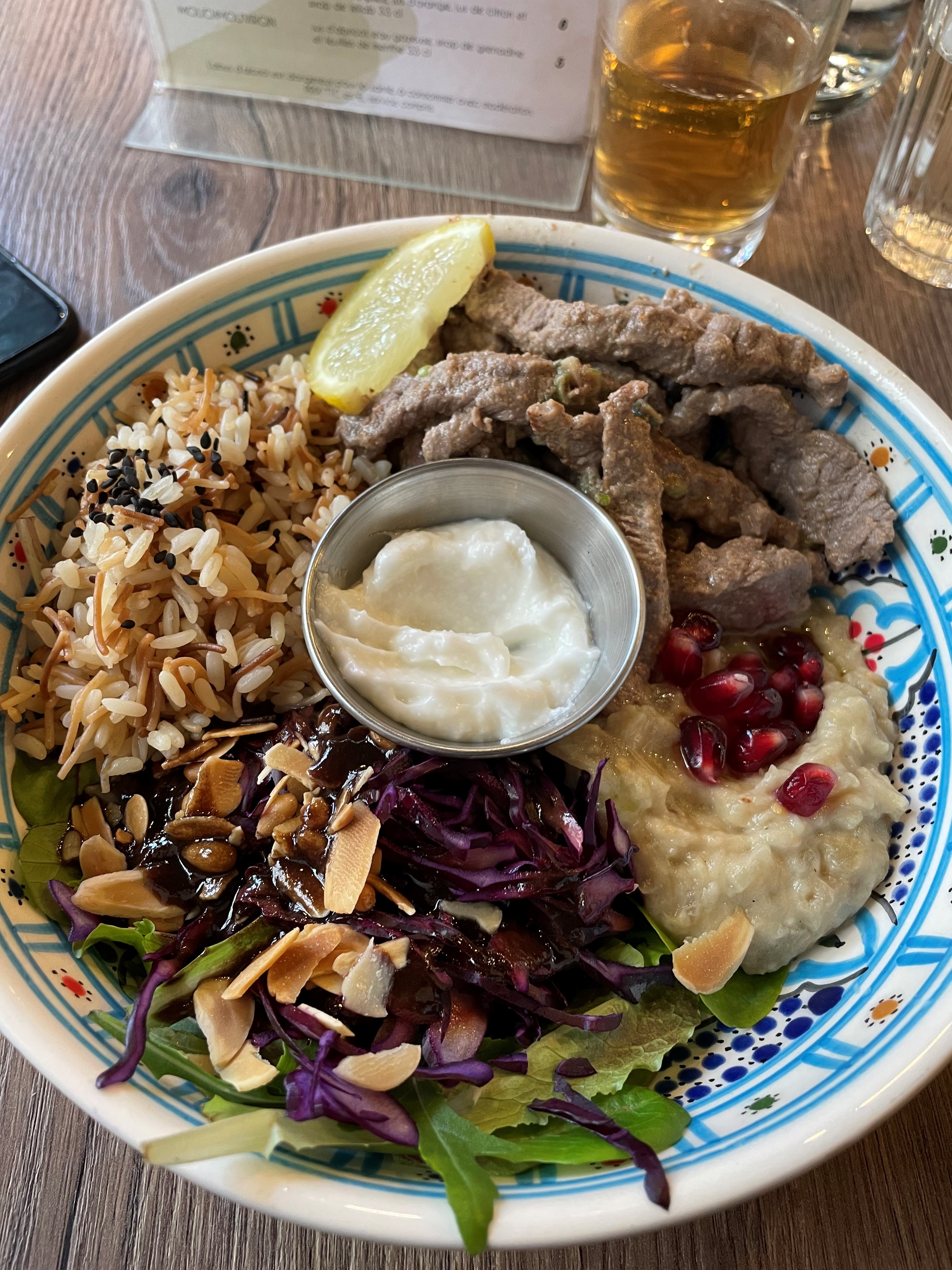 Avis aux amateurs de cuisine libanaise et aux végétariens - voir végétaliens pour ce qui est de l'assiette de mezze - c'est délicieux et à des prix parfaits pour le midi. Bonus : en boisson il y a du café blanc et du café à la cardamone !!