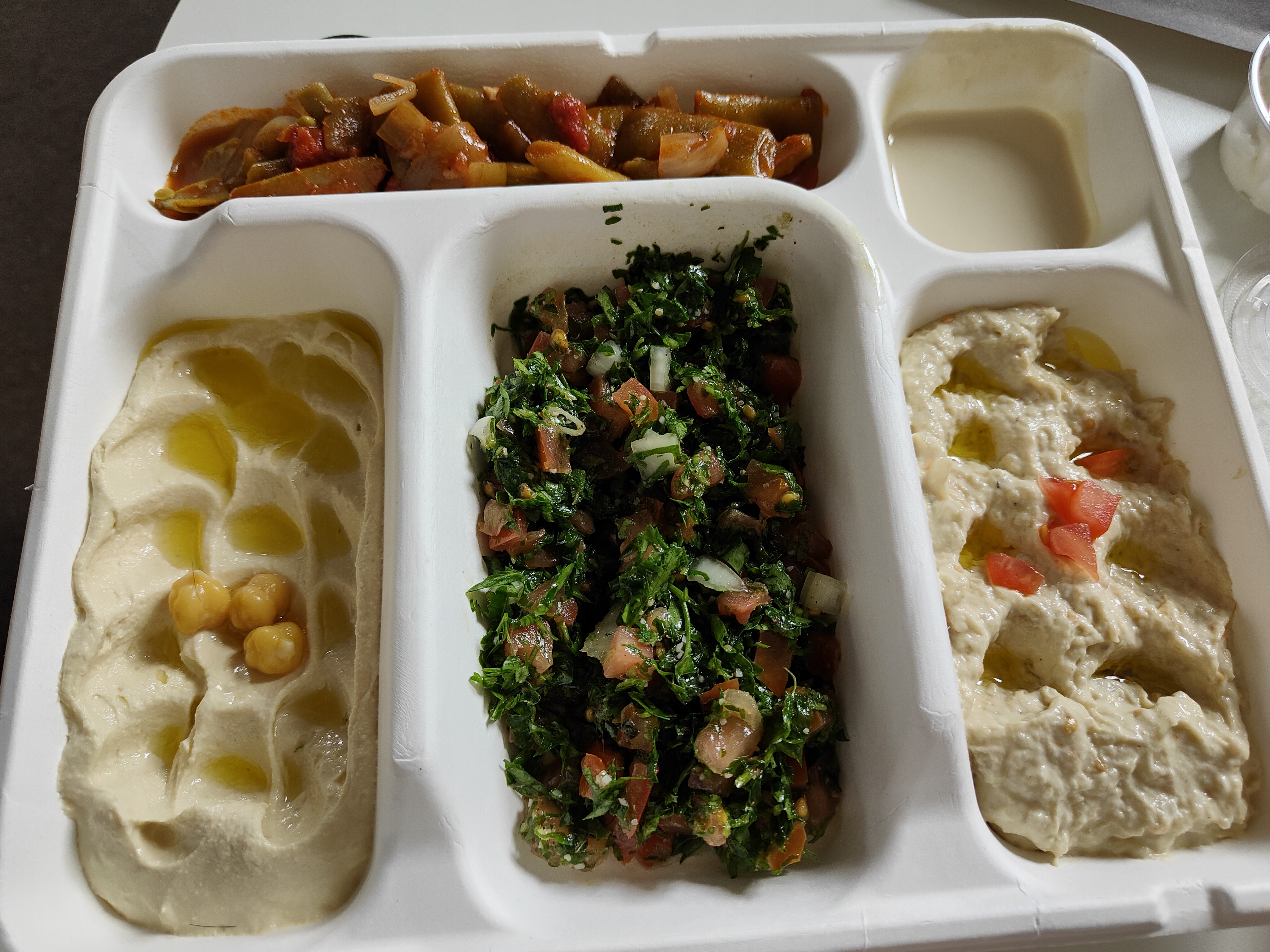 Délicieux et abordable ! Pris à emporter : plusieurs mezzés chauds végétariens, du houmous et du taboulé. Vraiment très bon, une excellente découverte !