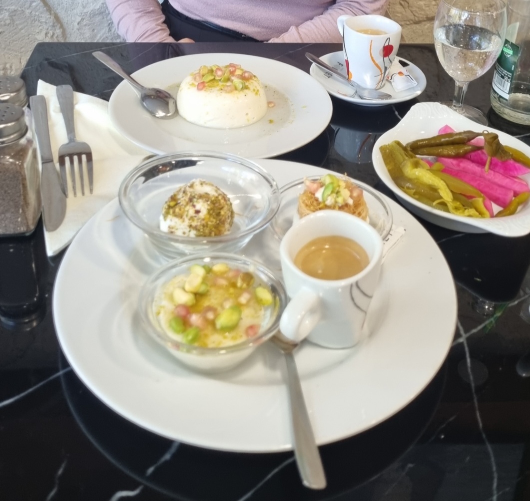 Excellent accueil, le patron est d'une rare gentillesse,nous avons pris le menu au Liban l'assiette, désert, café ou boissons, aux choix. 2 Assiettesdécouvertes, 2 thés gourmands, boissons. C'était frais et délicieux, si bien que nous avons repris 2 desserts. Le mouhalabieh était succulent. A très bientôt !!!🤩