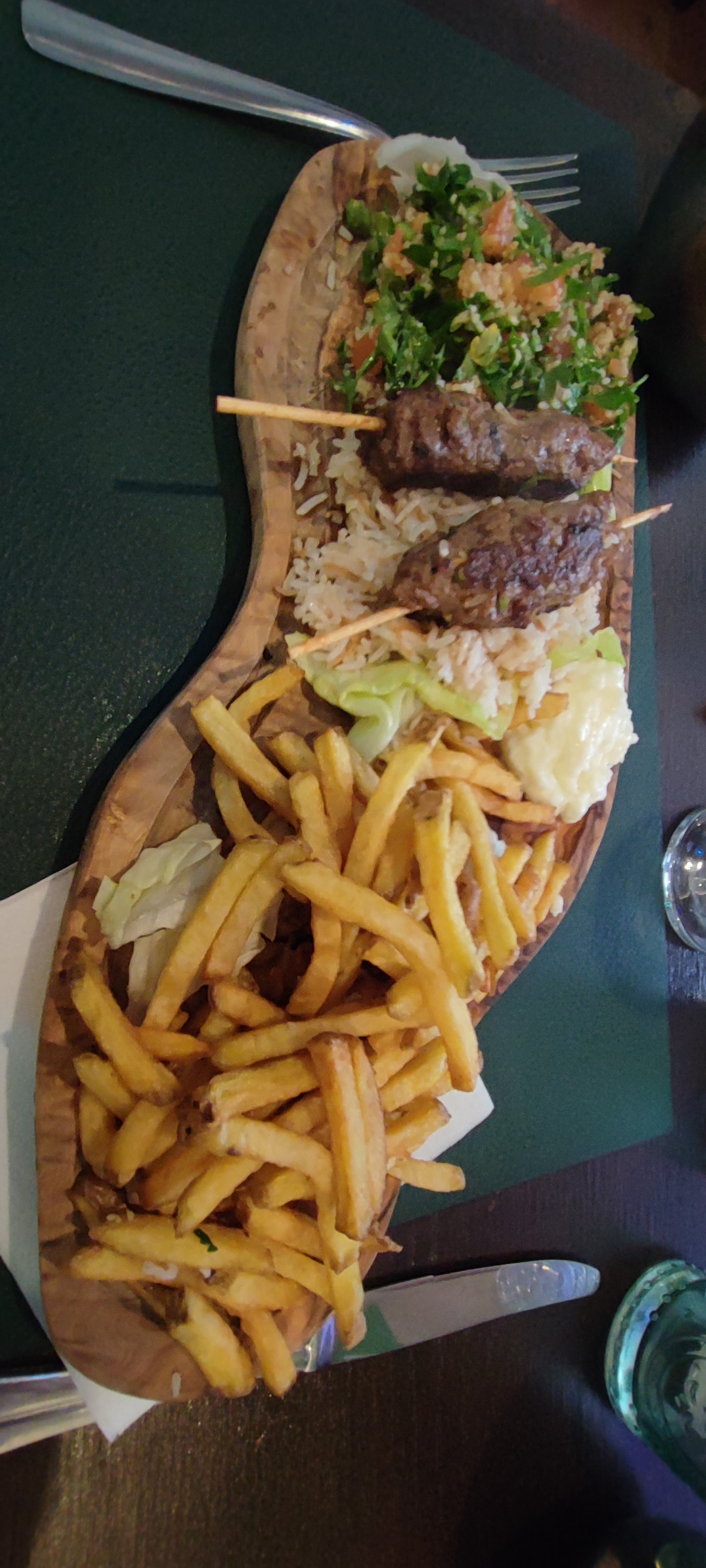 Super surprise que ce restaurant qui propose une carte assez diversifiée et des produits de qualité. Nous avons pris un petit mezze pour 3 personnes nous n'avons pas pu finir et on nous a proposé une box pour ramener les restes à la maison. Toutes les photos postées dans les avis sont réalistes. Accueil très sympathique cuisine de qualité et plats copieux et faits maison. Nous sommes venus un jeudi soir et toutes les tables étaient prises pensez donc à réserver. Le seul bémol il y avait une table de 10 personnes derrière nous et c'était un peu bruyant mais ça le restaurateur n'y peut rien. Nous recommandons.