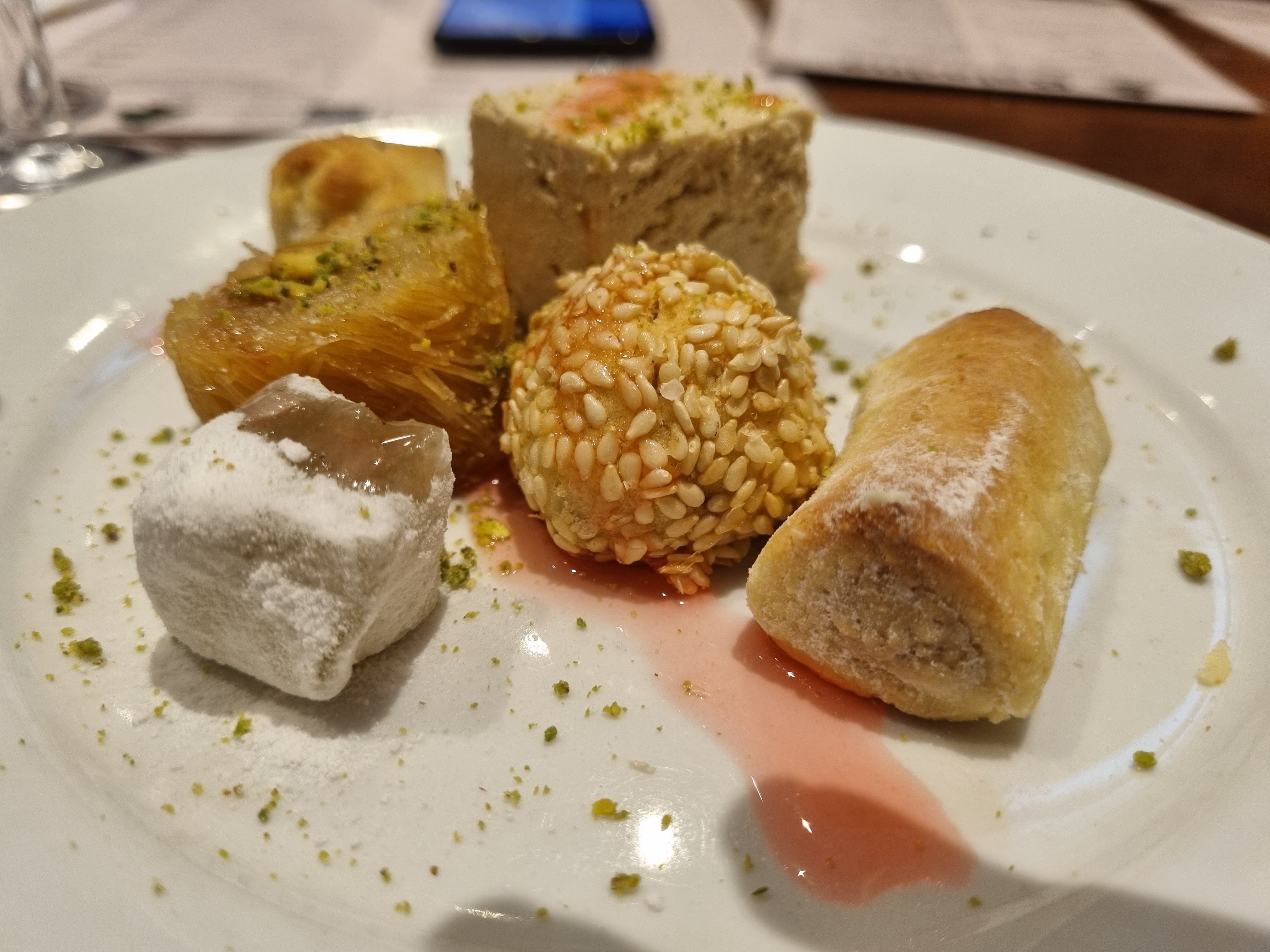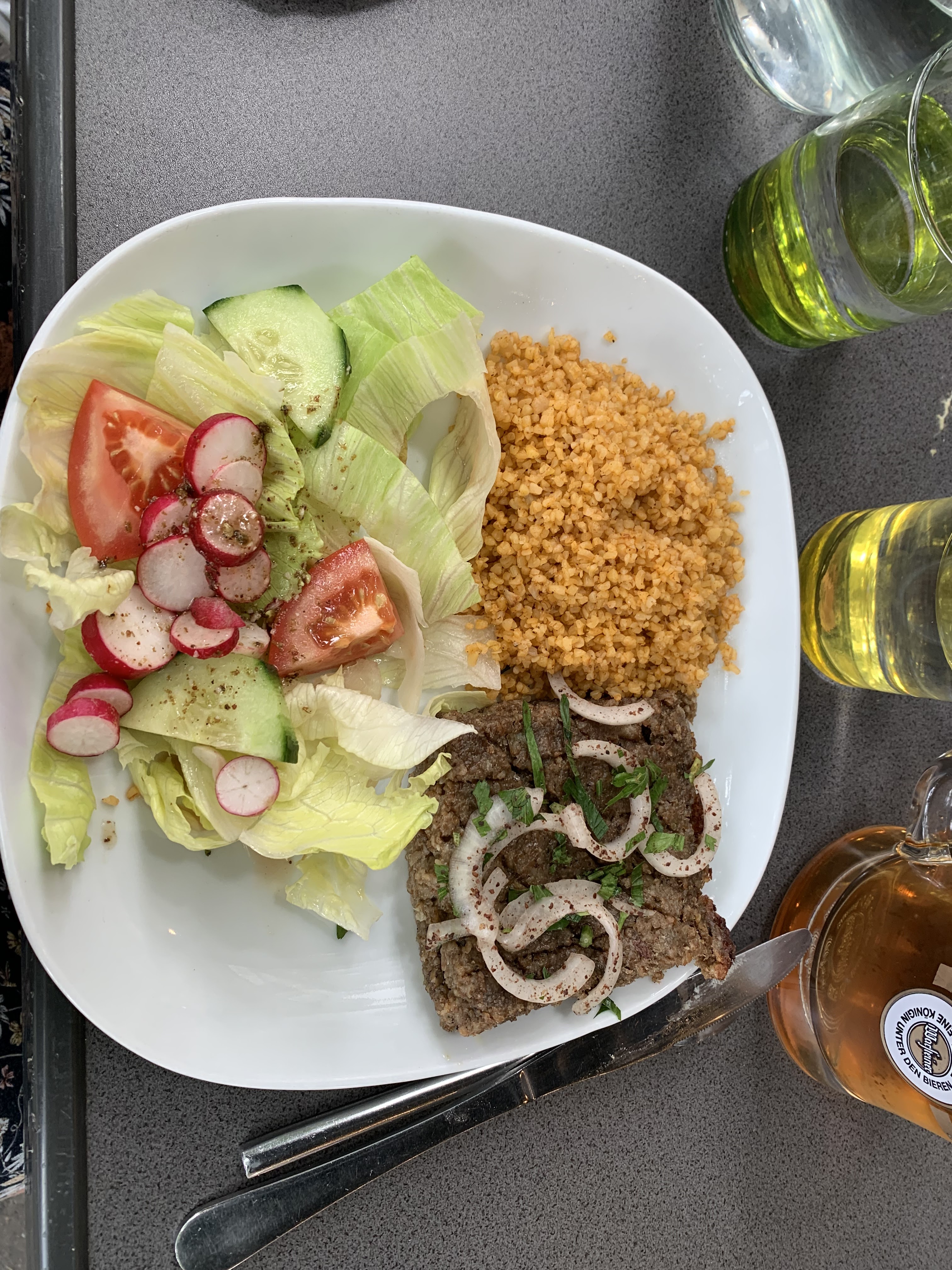Le mezze complet, il faut s'accrocher tellement c'était copieux ! Un vrai régal qui plus est ! La présentation des plats est simple mais les saveurs sont là, le blé concassé qui accompagne les plats vaut le détour. La sympathie et la simplicité du serveur ou gérant ou propriétaire (je ne sais pas) nous a également permis de passer une bonne soirée. Bref, j'y retournerai avec plaisir !
