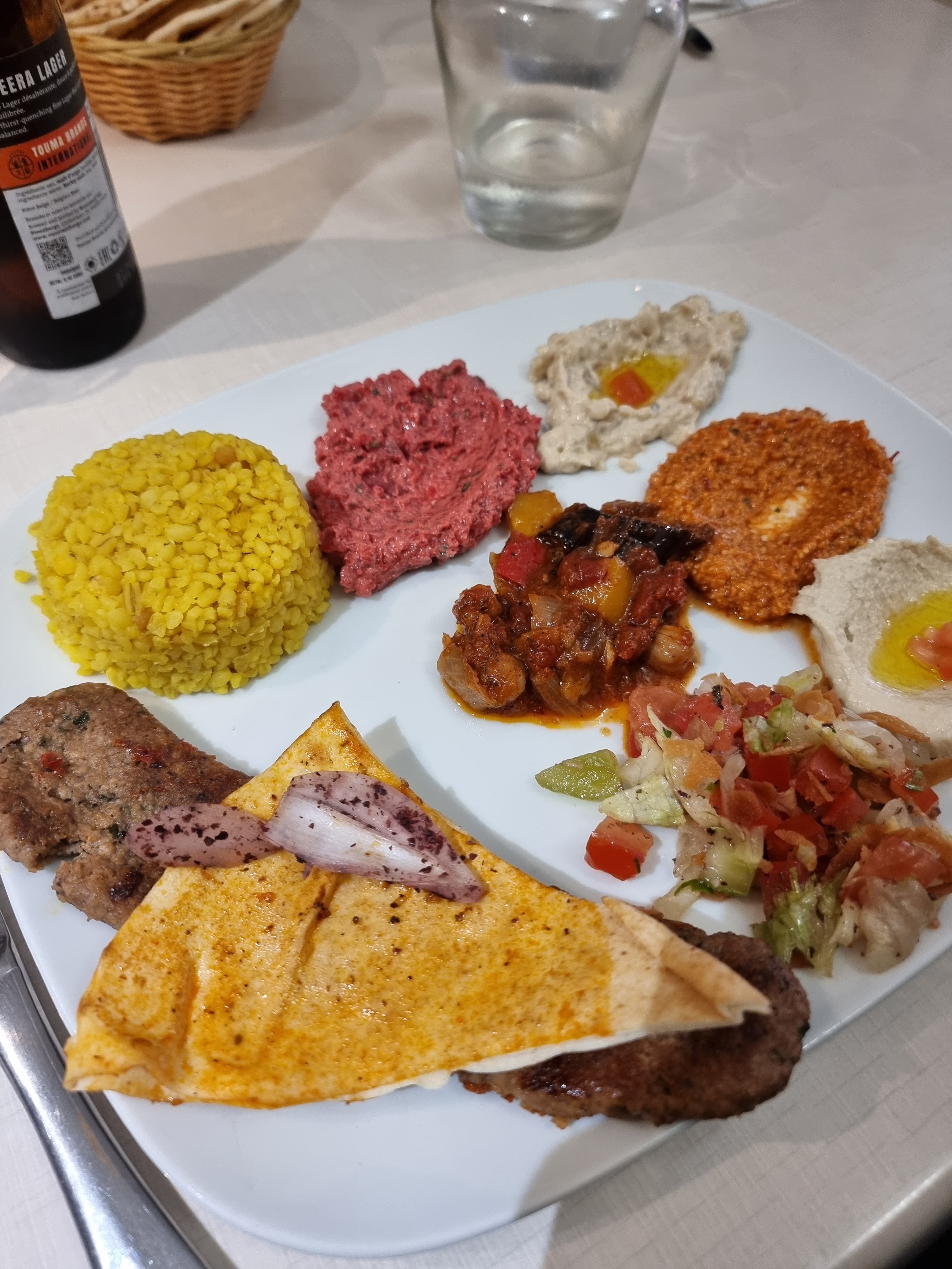 Nous avons passé un moment agréable, le gérant est sympa, les plats font tous envie ! Nous avons pris un mezze pour 4 (14 plats différents), c'était bon dans l'ensemble. Mais pour ma part j'ai trouvé certains plats un peu secs et je ne recommande pas nécessairement les desserts. Mes amis qui étaient avec moi ne sont pas forcément d'accord donc à vous d'y aller pour vous faire votre propre avis :)