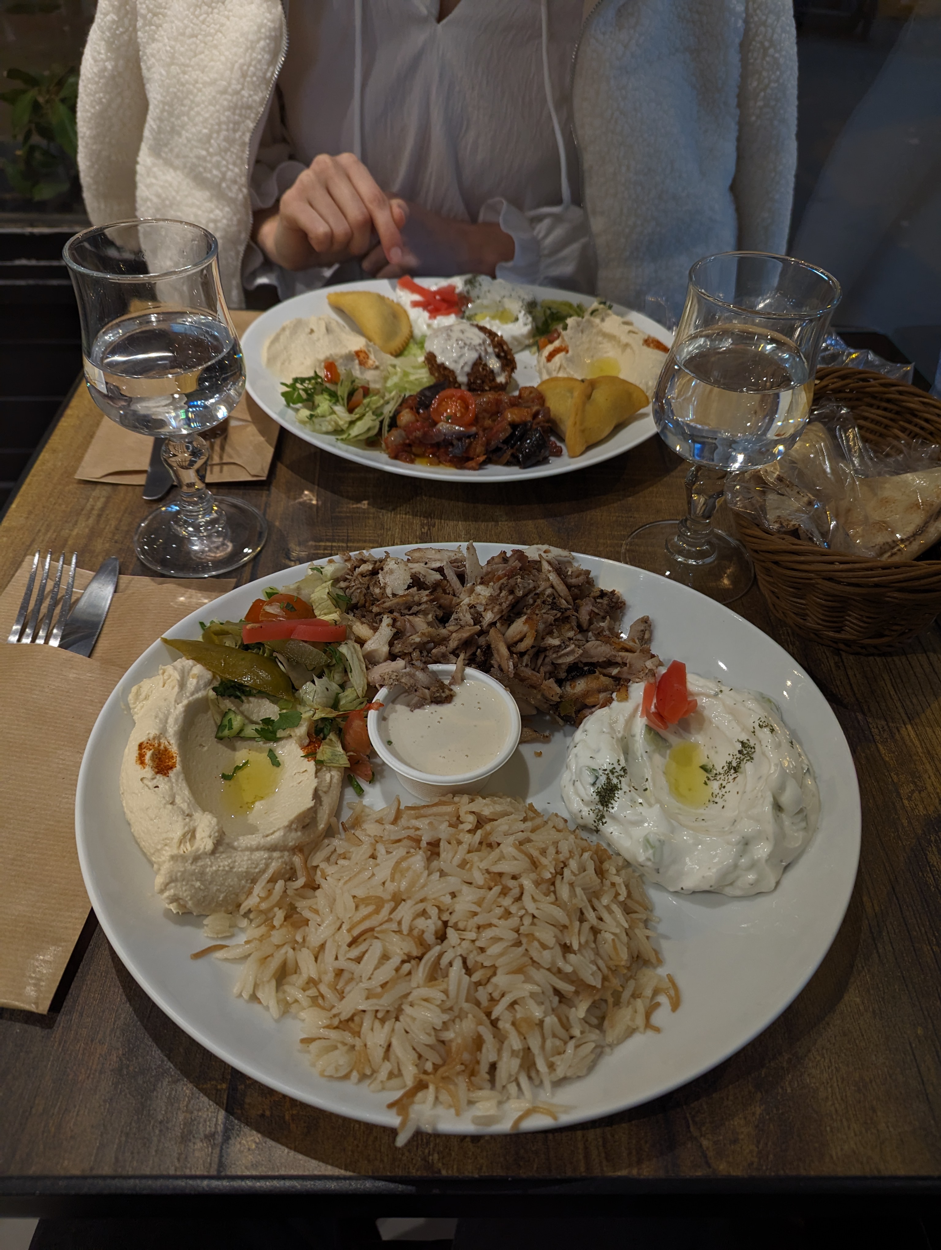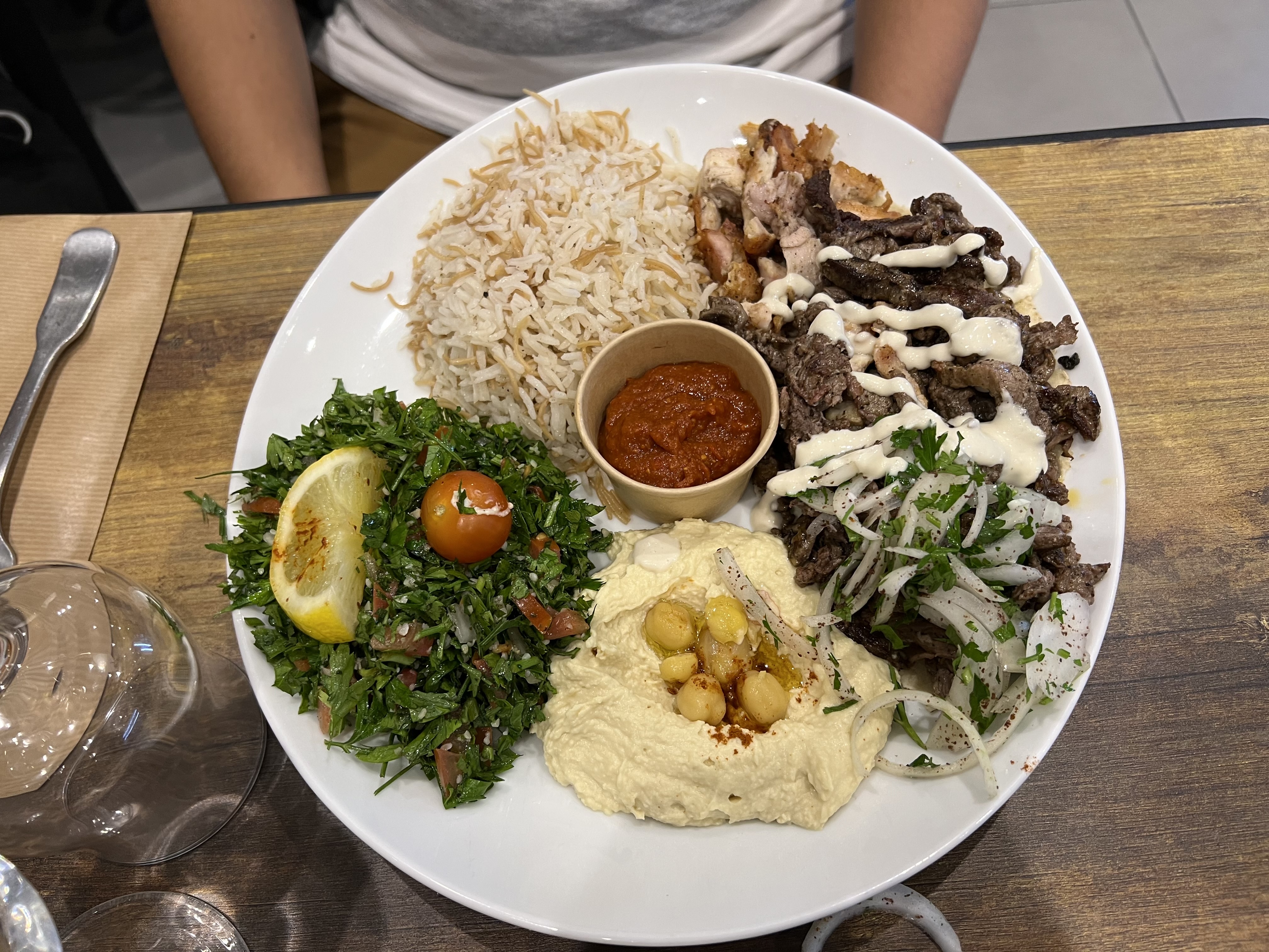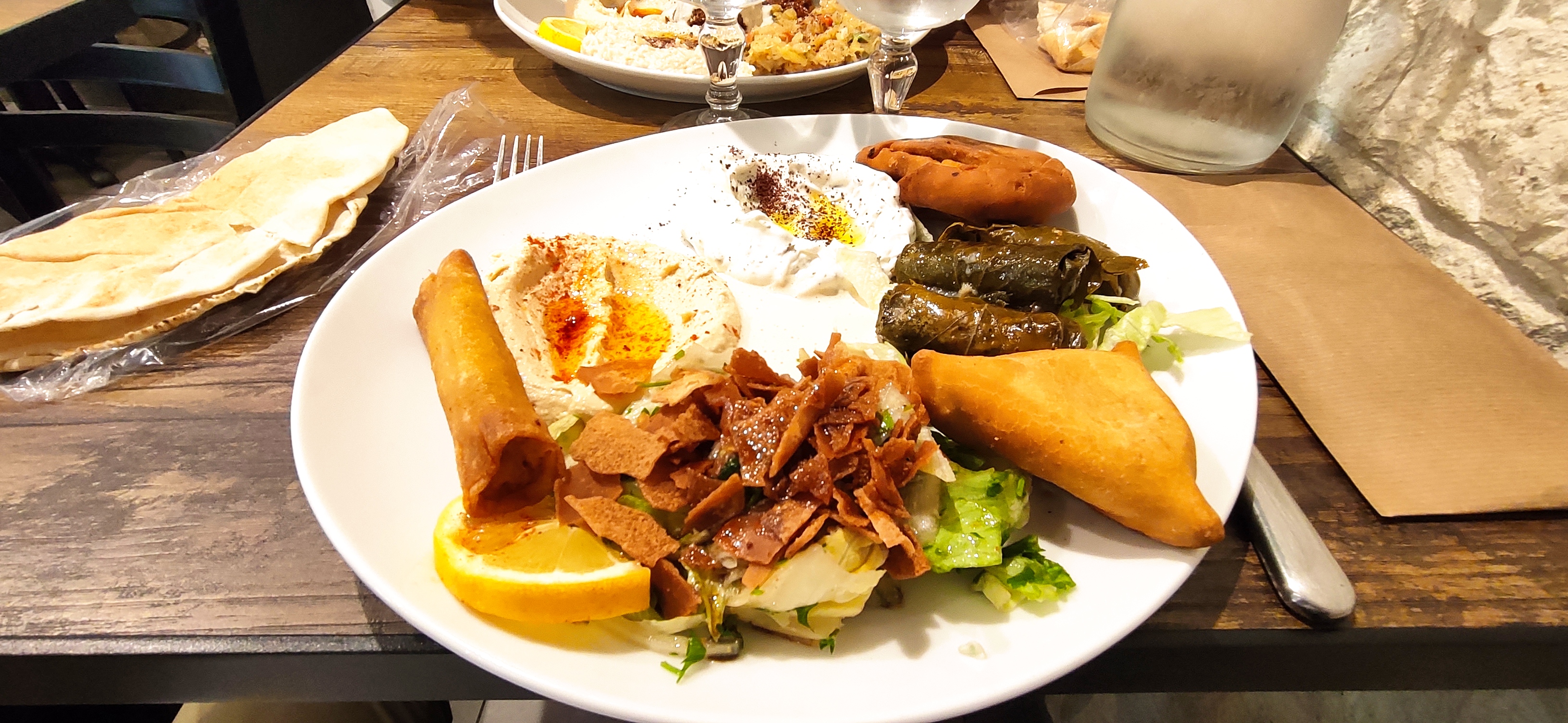 On s est régalé. Les assiettes sont copieuses et le serveur est très agréable. Le petit vin rouge libanais était pas mal du tout aussi. À tester 👍🤗