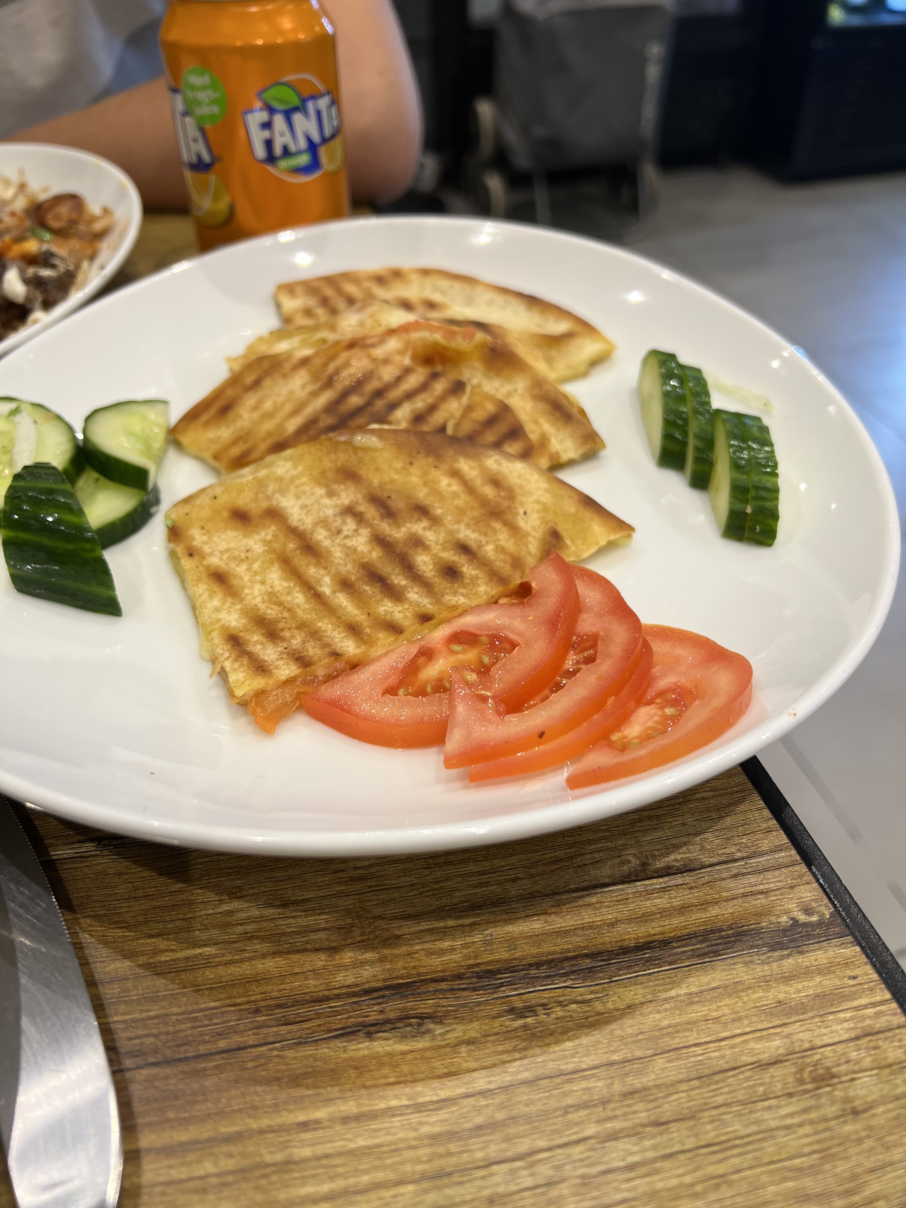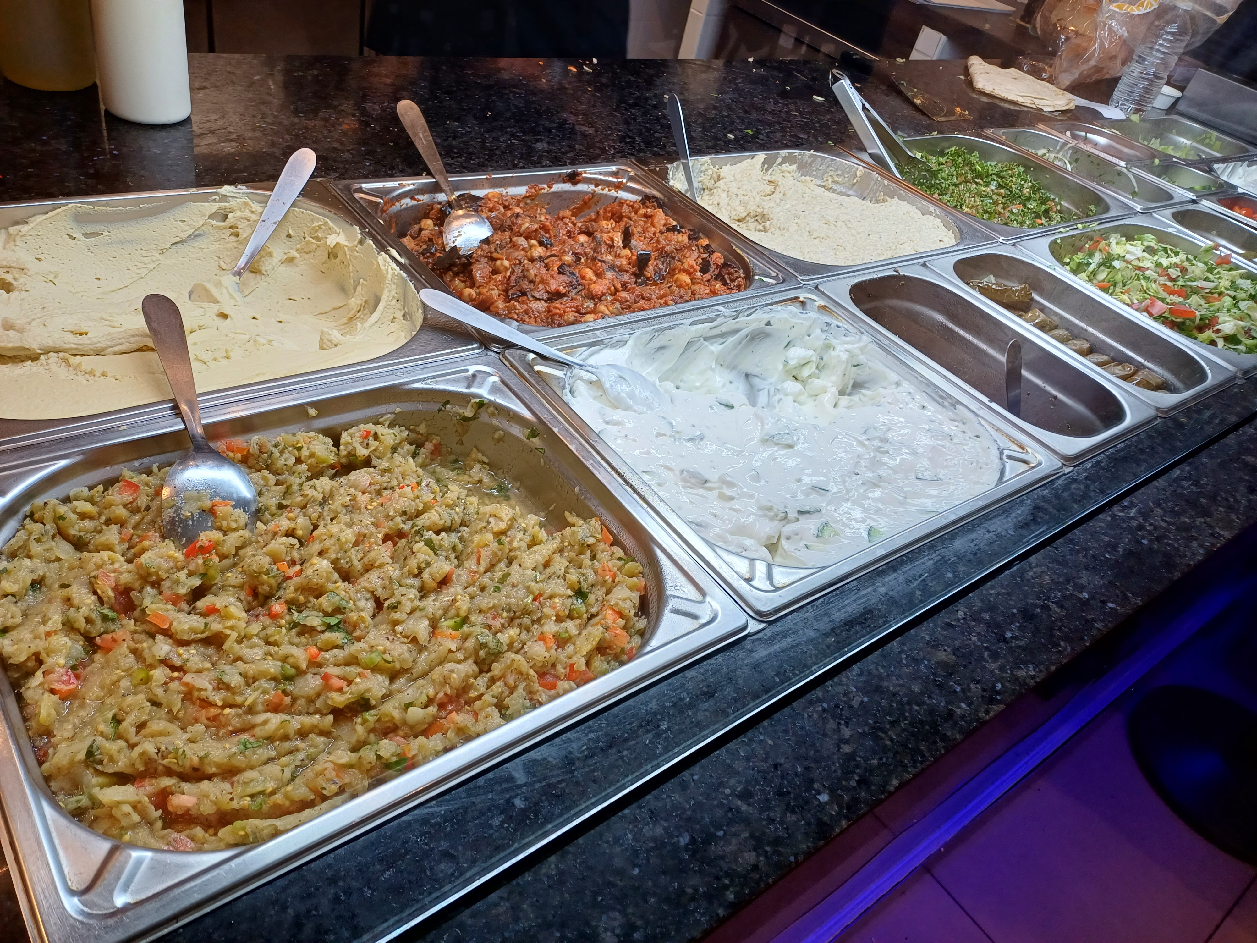 J'ai pris un mezze: la première partie avec les entrées était trop bonne, rien que pour le houmous et le caviar d'aubergine je reviendrai. La deuxième partie avec différents beignets n'était pas trop à mon goût. Prochaine fois je prendrai plutôt des grillades. Dommage pour les galettes servies dans des sachets plastiques...