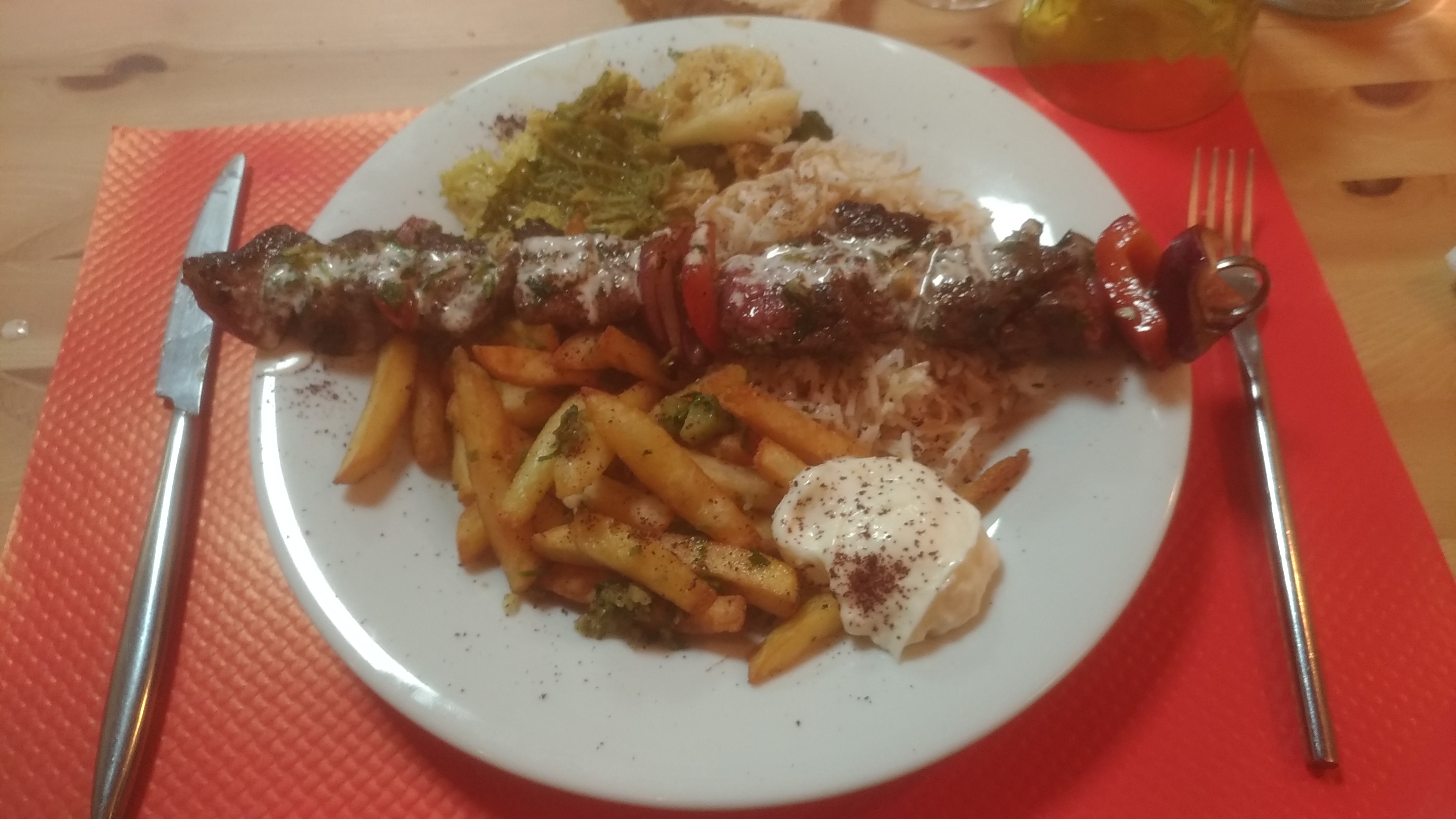 Ma compagne originaire de ce charmant village de Mauvezin voulait à tout prix déjeuné « Chez Fady » pour me faire découvrir l’endroit … je comprend dorénavant pourquoi!!! Un Mezzé aussi bien assaisonné que savoureux, suivi d’un Kebab succulent. La viande était tendre et semblait de bonne qualité, les accompagnements se marient très bien avec cette dernière et pour finir l’aïoli m’a fait redécouvrir mon Sud-Est natal. Je n’avais jamais mangé dans un restaurant libanais respectant autant cette charmante cuisine. Petit + pour le thé à la cannelle en fin de repas. Je recommande vivement, pour les novices de cette cuisine autant que pour les adeptes. Merci pour ce formidable moment! Je reviendrai dorénavant à chaque nouvelle visite de Mauvezin!