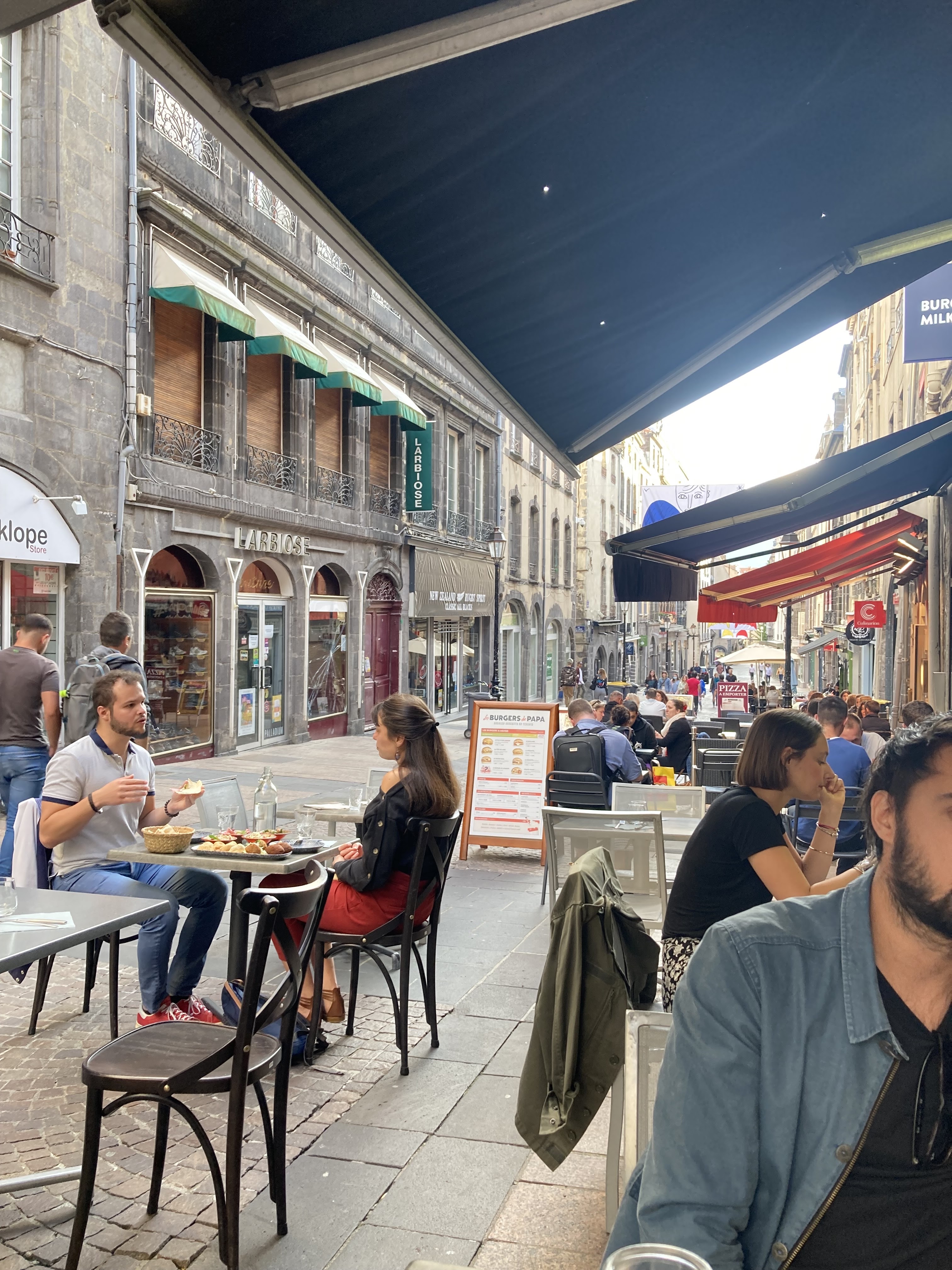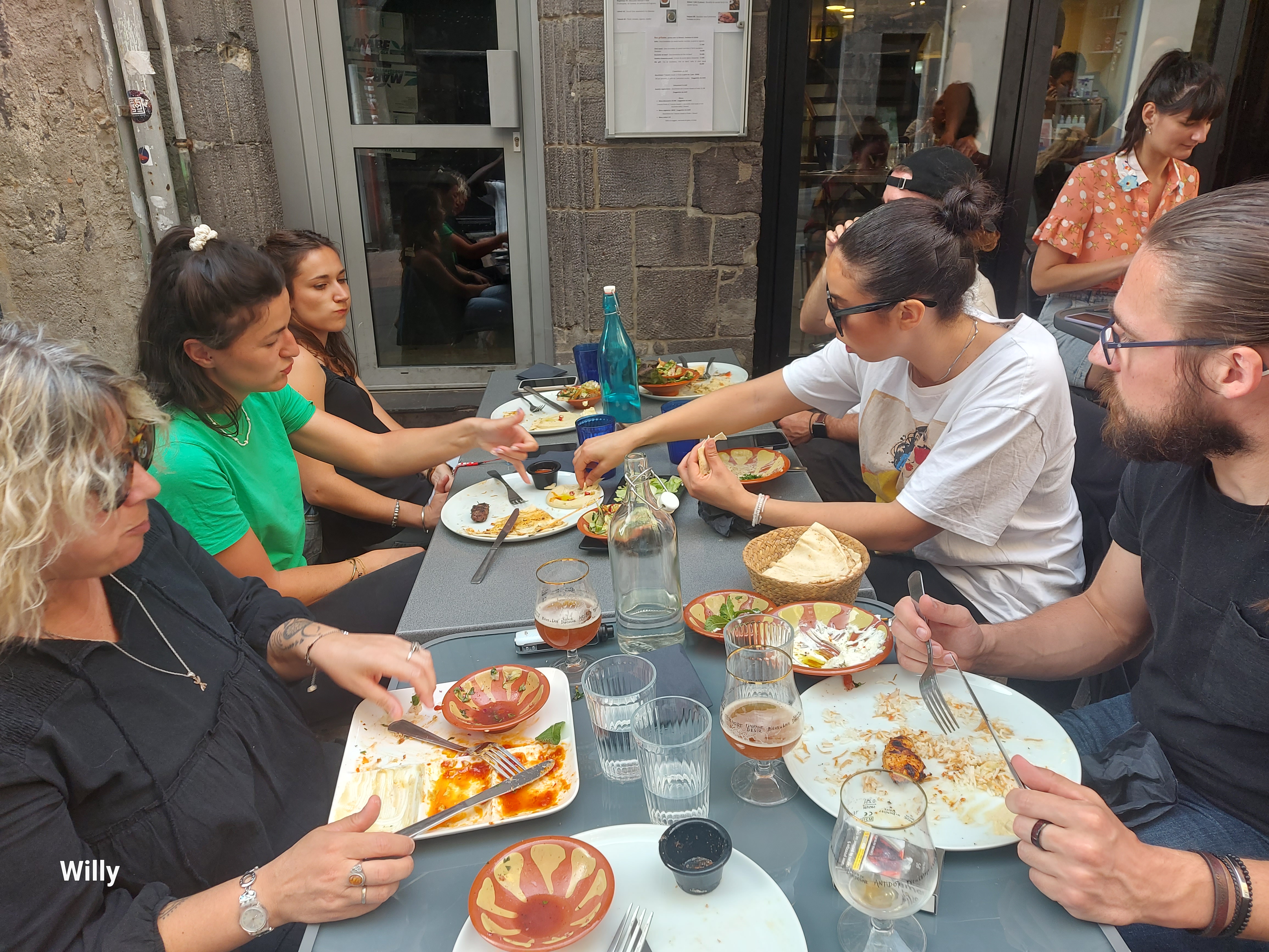 L'EMPLACEMENT NE FAIT PAS TOUT !!!! Mezzés particulièrement bourratifs : La pâte très épaisse étouffe la farce qui manque de saveurs. Dans La sélection du chef le plus réussi était la salade verte. Le choix des produits sent trop le premier prix : tomate sans gout en plein cœur de l'été, saucisse de bœuf faite de viande reconstituée.... etc . Les serveuses sont gentilles mais je ne suis pas sûr que faire la pause cigarette sous le nez du client qui attend patiemment d'être servi soit très classe. C'est un emplacement très chouette entre la cathédrale et le Puy de Dôme qui mériterait d'être plus honoré par sa cuisinière. La cuisine libanaise peut être si savoureuse!!! Bref c'est un attrape touriste , piège dans lequel on est lamentablement tombé