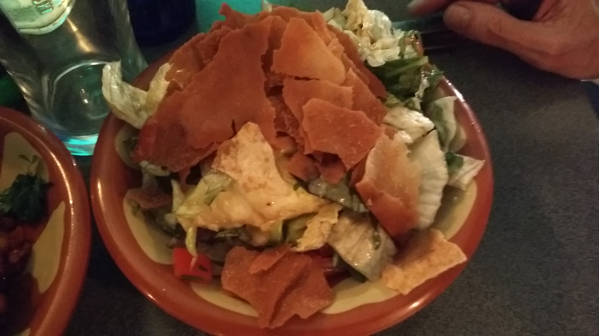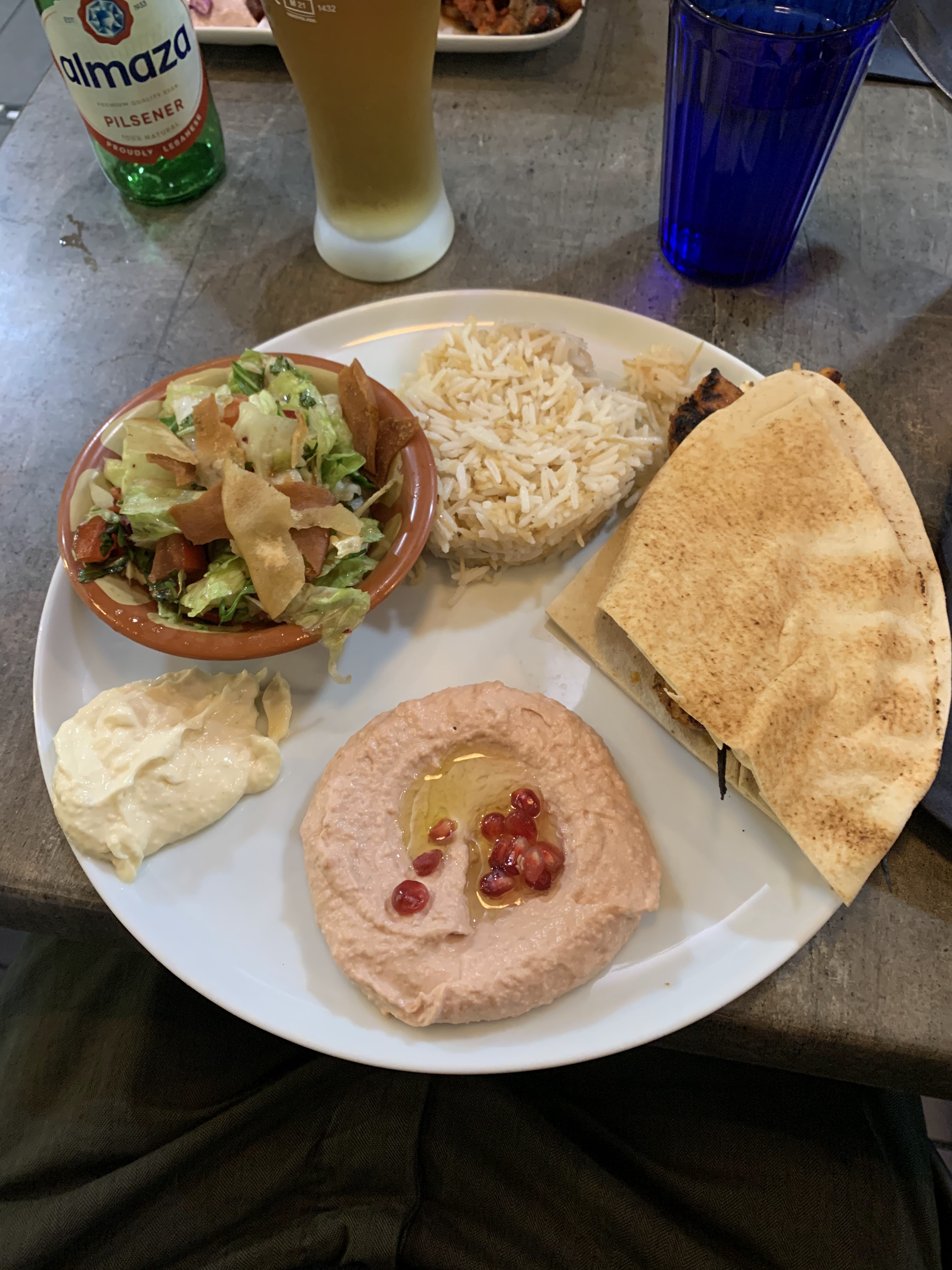 Nous avons pris le plat végétarien et nous en avons été plutôt satisfaits. Les différentes préparations étaient bonnes et, même si on ne s'y attends pas en voyant le plat arriver, on est rapidement calés. Nous aurions aimé cependant qu'il y ait plus de préparations solides (plus de falafels par exemple) et moins de préparation type pâte/purée. Cela ne reste après qu'une question de goût. Cela dit le restaurant a des prix plutôt élevés par rapport à ce qui est servi, mais cela est compréhensible dans la mesure où c'est une rue très touristique.