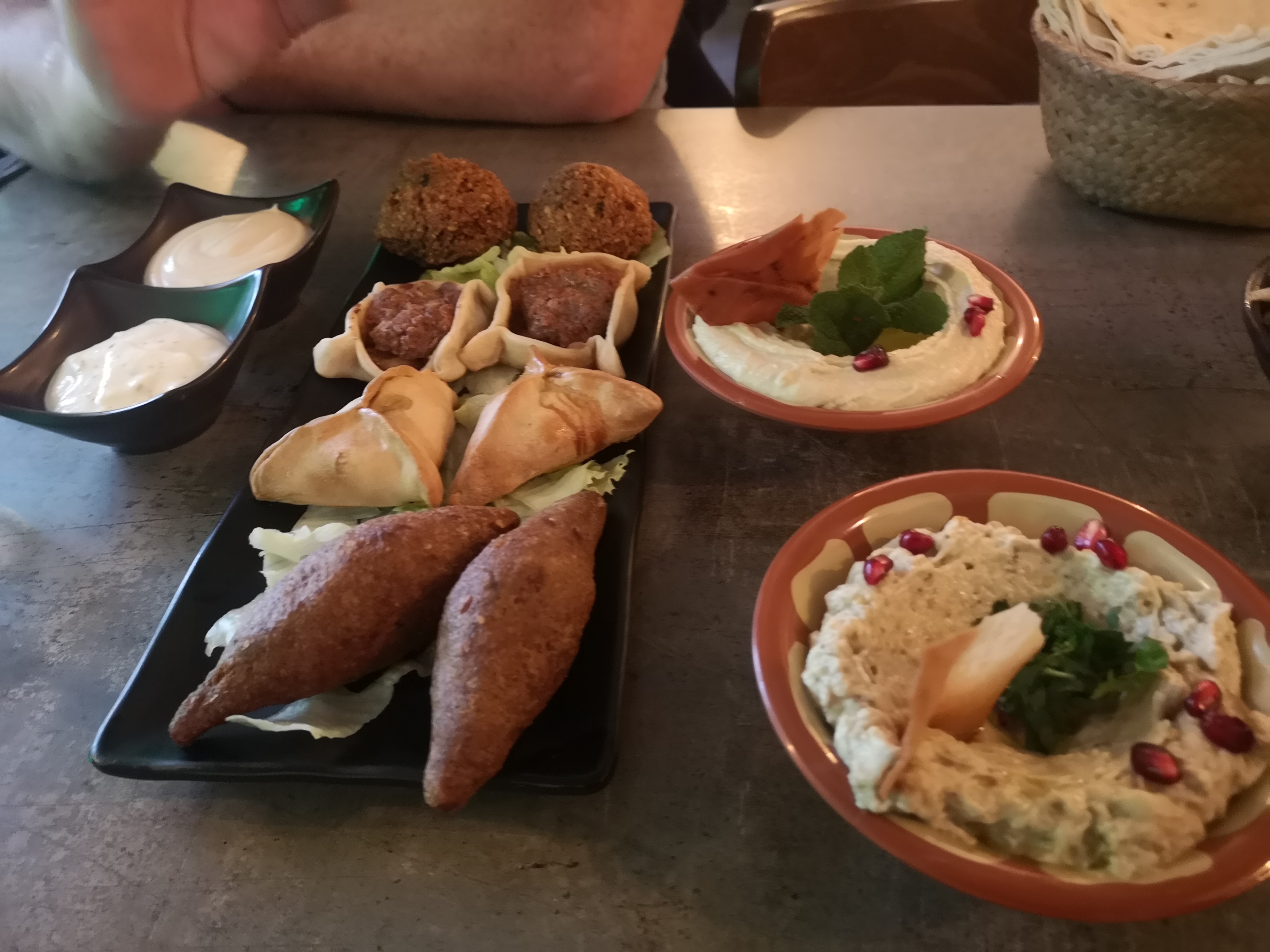 Découverte totale pour moi. Je connaissais le houmous et les falafels, mais je n'avais jamais vécu l'expérience d'un repas complet Libanais. Chaque mezze était délicieux, je suis tombée sous le charme. Une expérience a répéter ! Super !