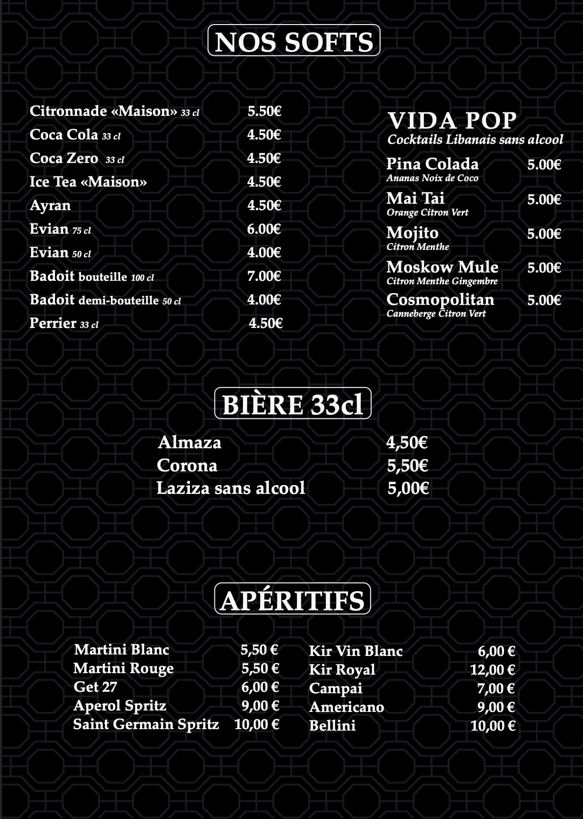 - ✔️ Cocktails et apéritifs