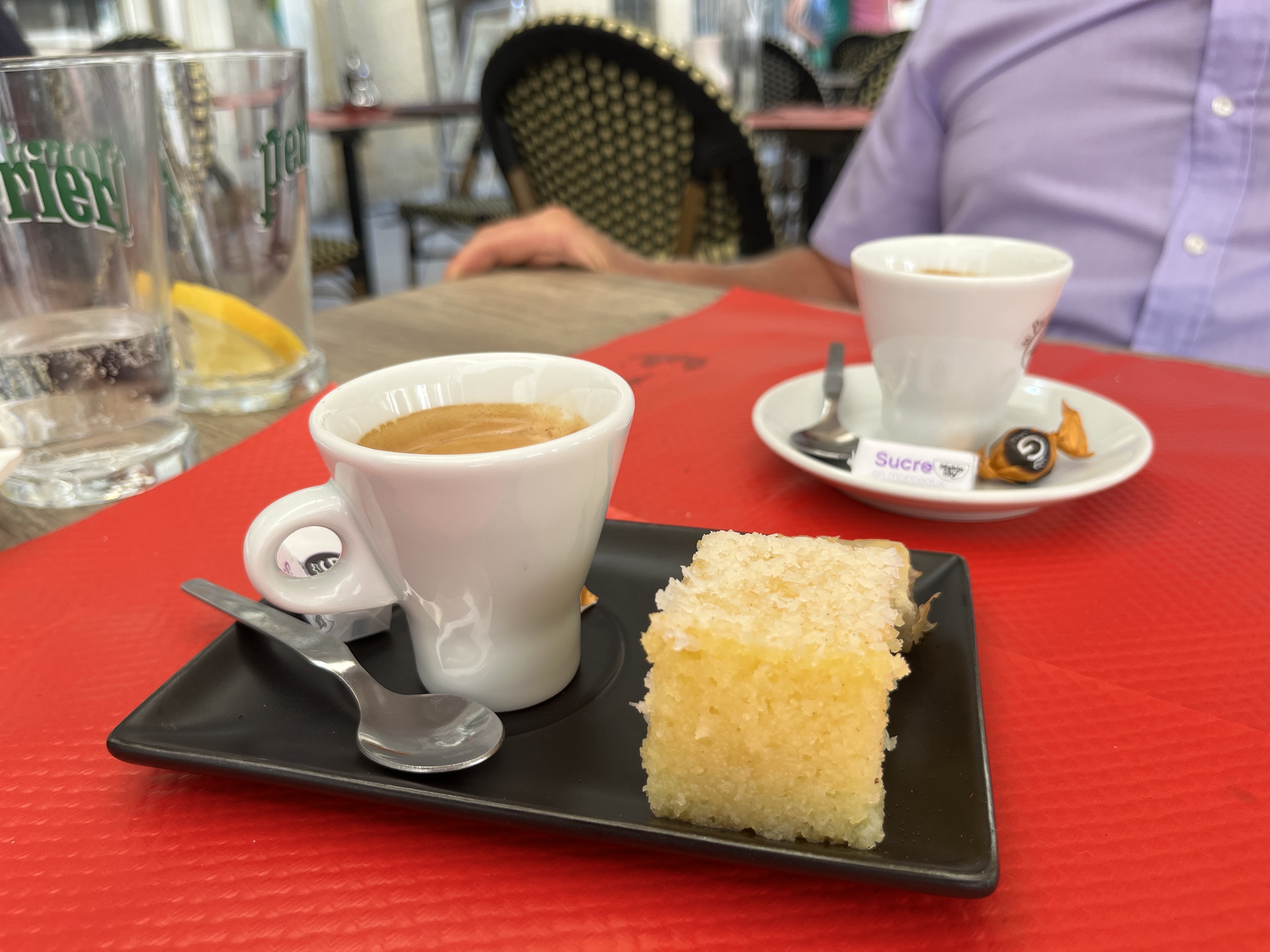 Sur une place très agréable. Des pâtisseries libanaises délicieuses. Jeannot, le patron tient un commerce de café où il torréfie qu'il met aussi en capsule. Il vend d'ailleurs des Nespresso portables, et où il vend aussi des thés. Un bon moment passé en terrasse.