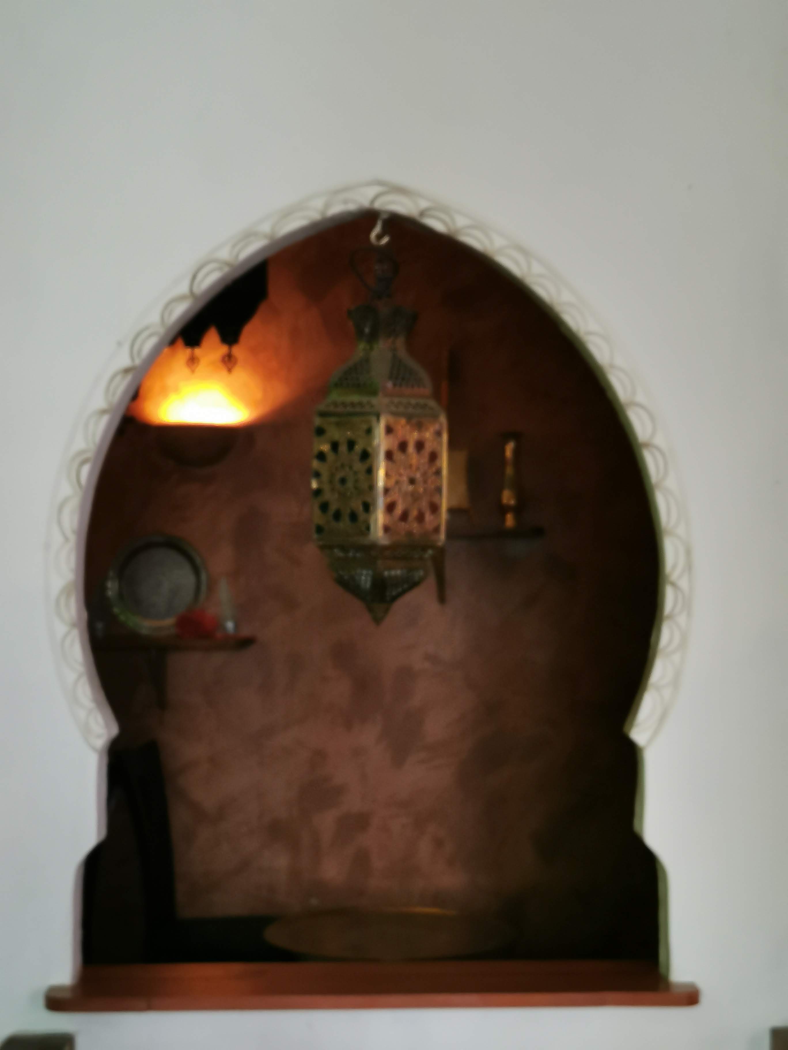 En extérieur superbe terrasse ombragée au pied de l'église. Intérieur oriental à l'étage.