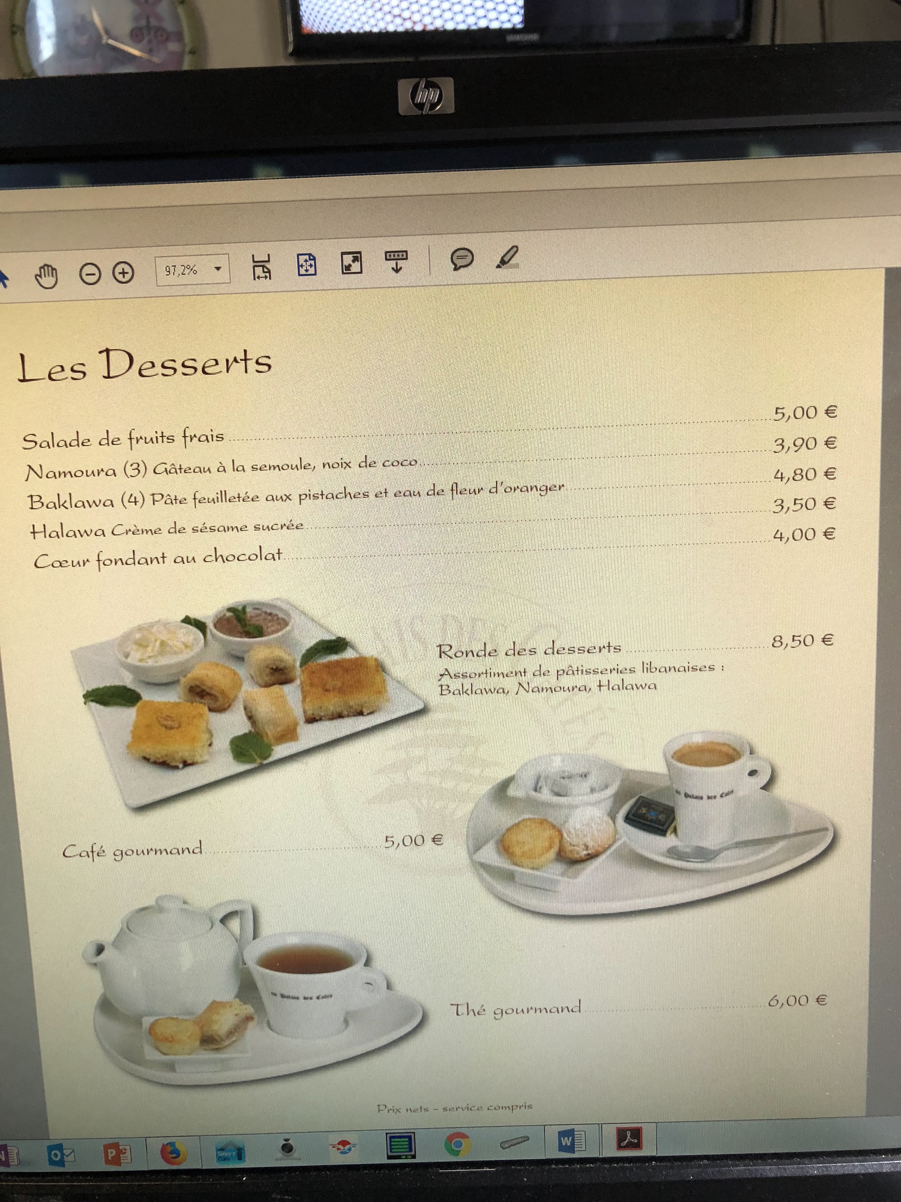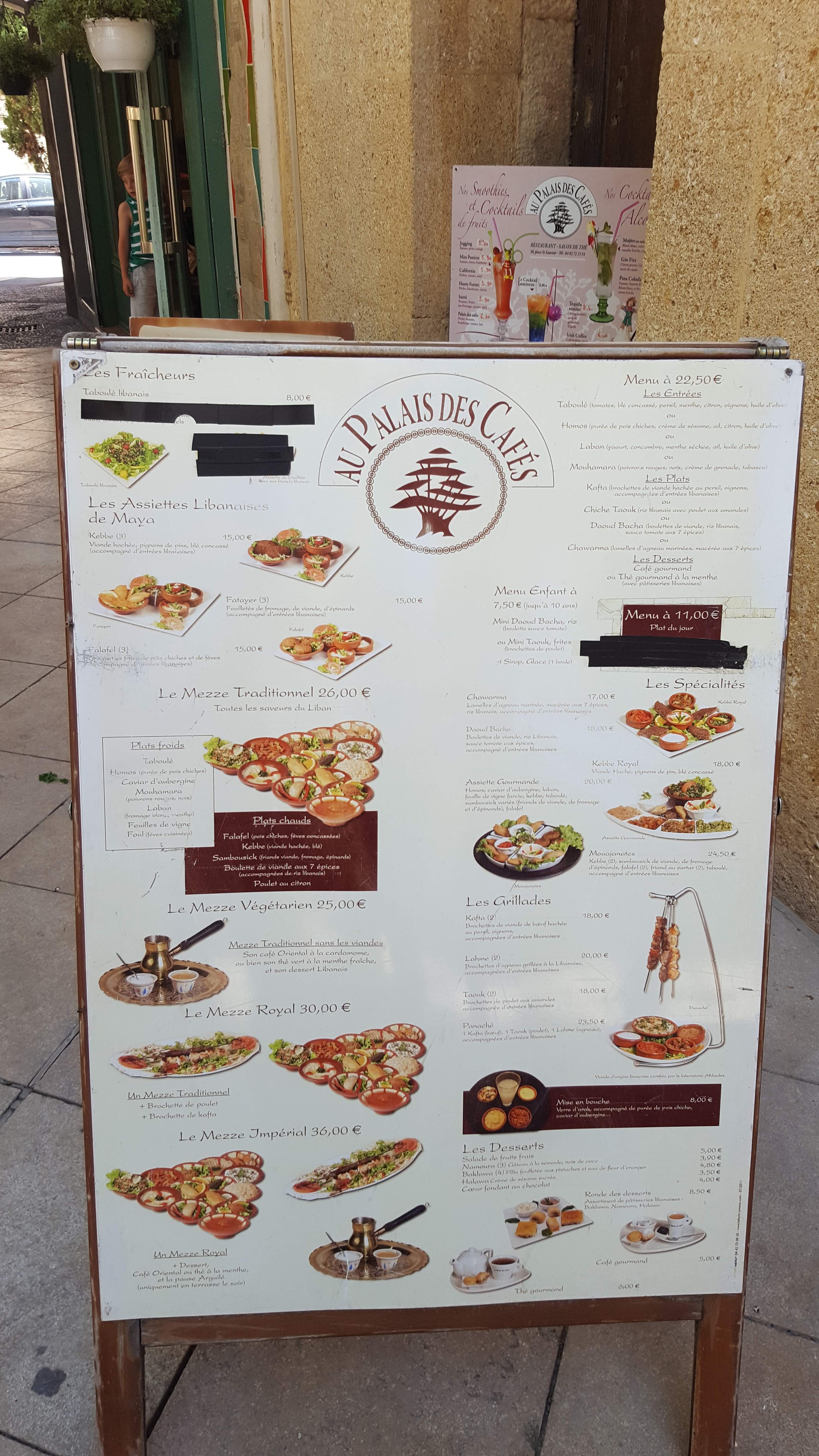 Prix exorbitant, j'y ai mangé hier 3 menus gourmand et un menu enfant, un milkshake et 2 café 120 euros; menu gourmand que de nom!!! Nourriture plutôt fade casse pas des briques a part le café je vois pas l'intérêt. Je me suis fait avoir a cause du pseudo prix d'excellence 2015 de TripAdvisor ft croire que la personne qui à noté n'a jamais mangé libanais.