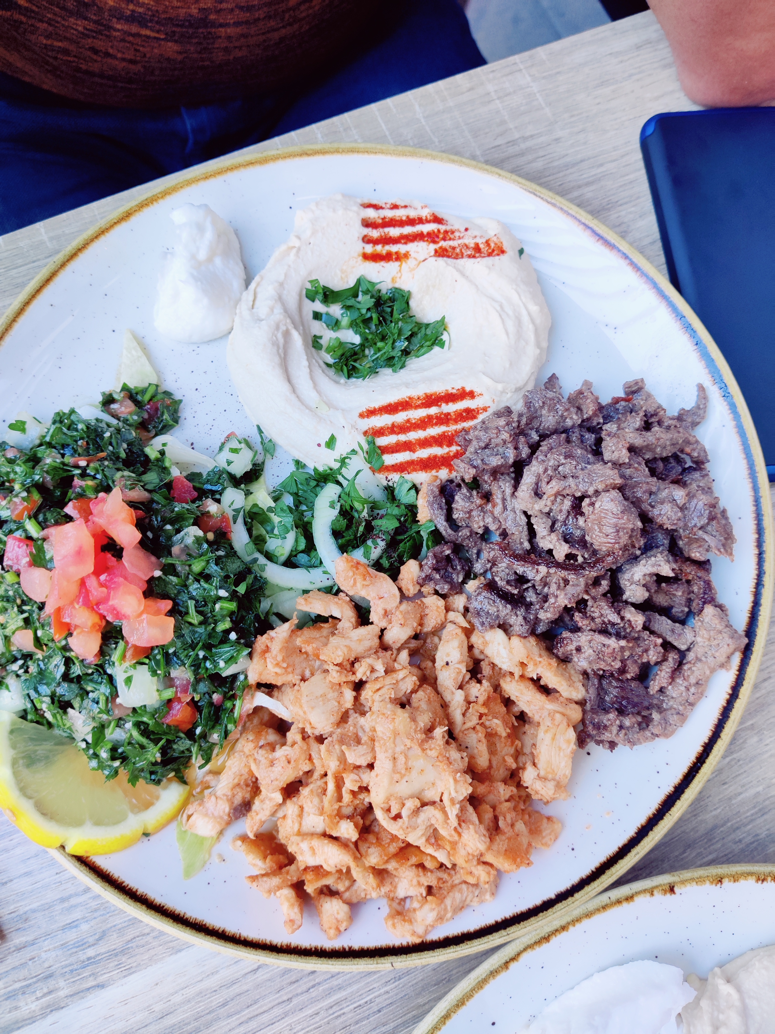 Une vraie découverte de la cuisine libanaise que je ne connaissais pas. Un régal pour les yeux et les papilles. Plat à emporter jusqu'ici j'espère avoir le temps un jour de me poser et de pouvoir savourer ça sur place. Service chaleureux également. J'y retourne vite 👍
