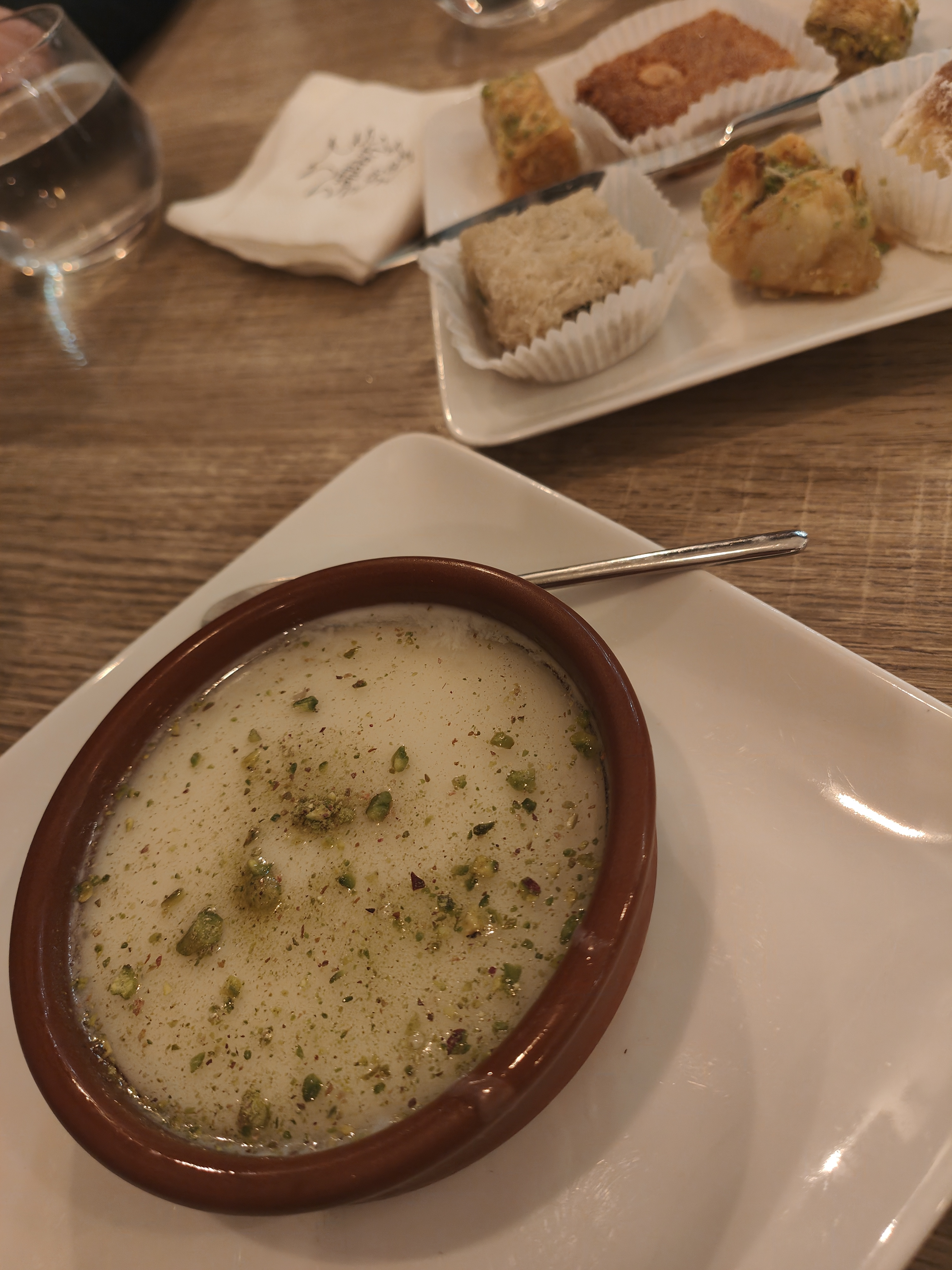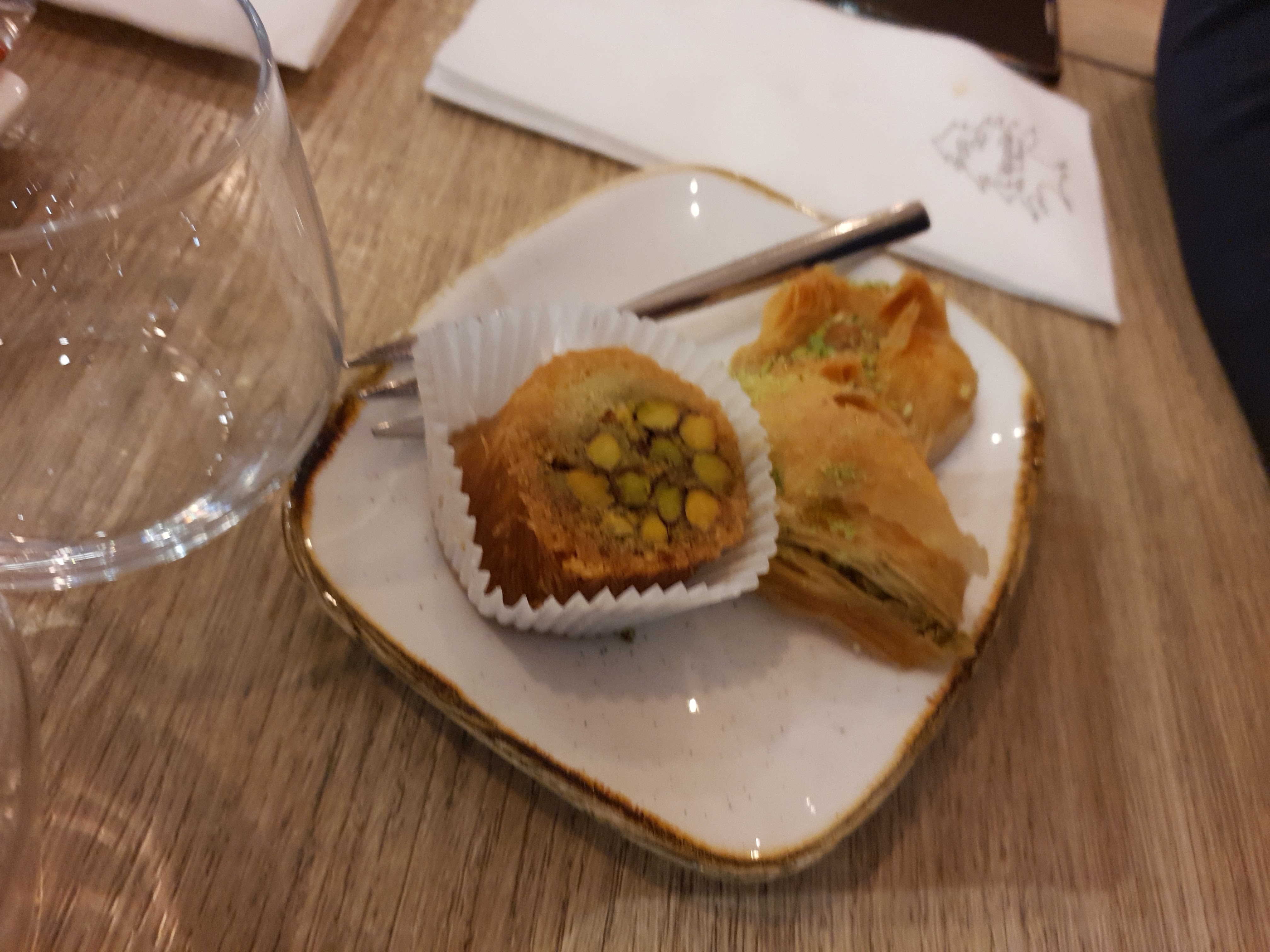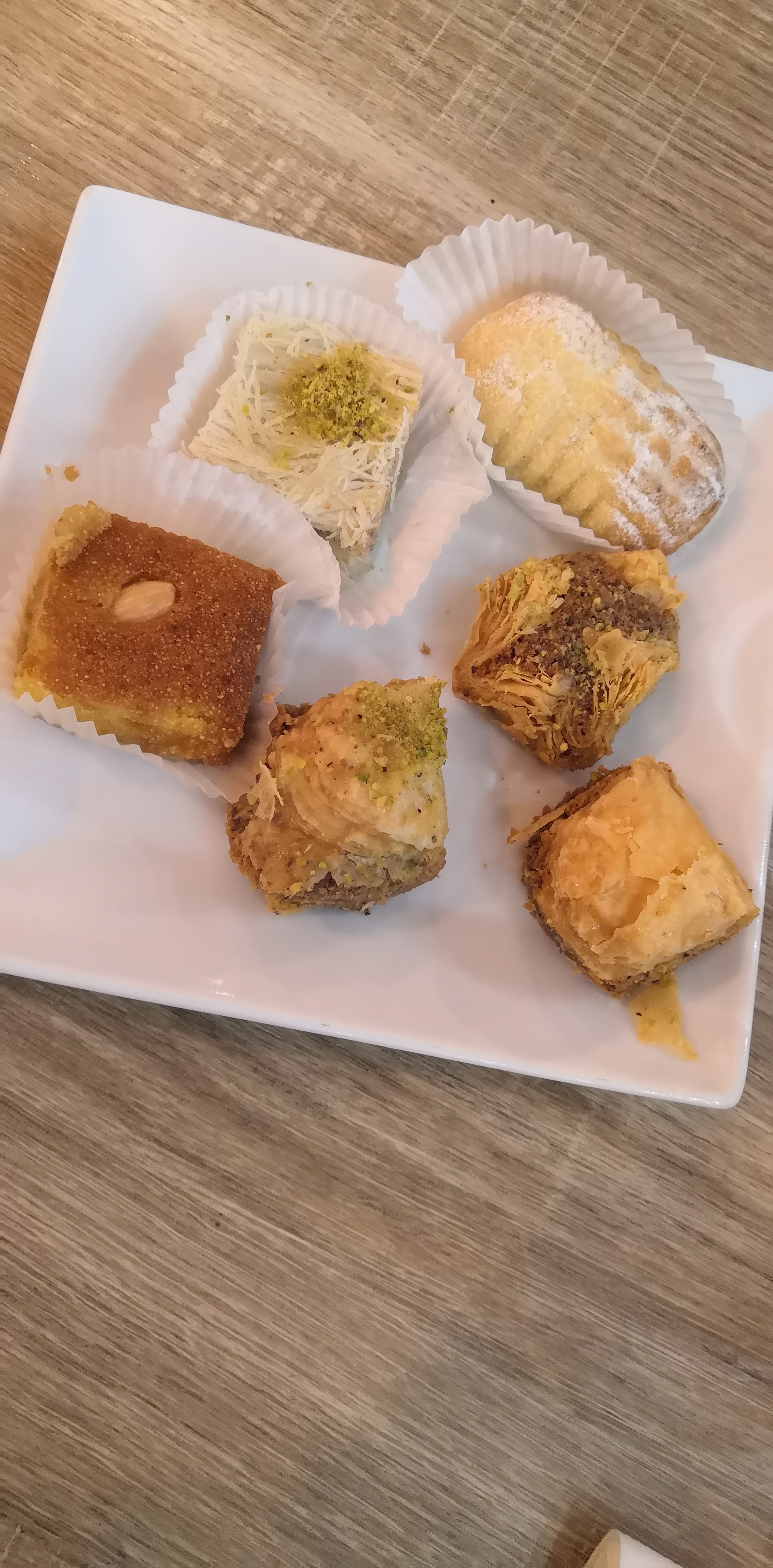 Nous avons passé un bon moment. Les serveurs sont discrets mais très serviable. Nous avons bien mangé. Je ne suis pas fan de houmous d'habitude mais là j'ai bien aimé celui qui accompagnaient mon chawarma de boeuf. Nous avons apprécié partager les petites pâtisseries avec mon conjoint. C'était une belle decouverte.