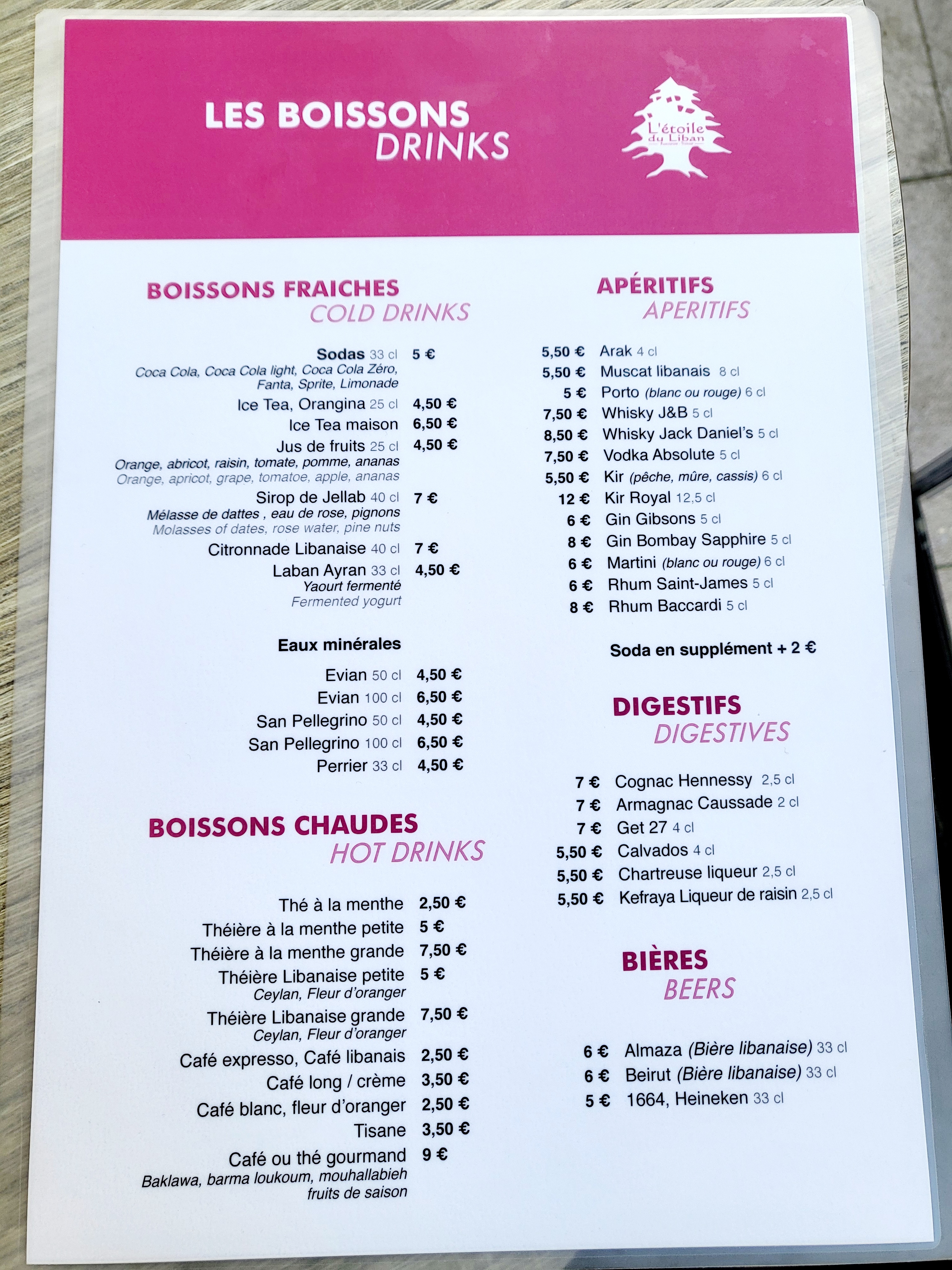 Pensez a réserver, il n'y a pas beaucoup de tables. Première fois que je goûte du libanais, c'est très bon, les menus a partager a plusieurs permettent de goûter a tout et c'est bien copieux. Les serveurs et serveuses sont aimables et n'hésitent pas a resservir et débarrasser sans devoir les appeler, service impec. Prix dans la tranche haute tout de même, comptez 16-20€ rien que pour manger.
