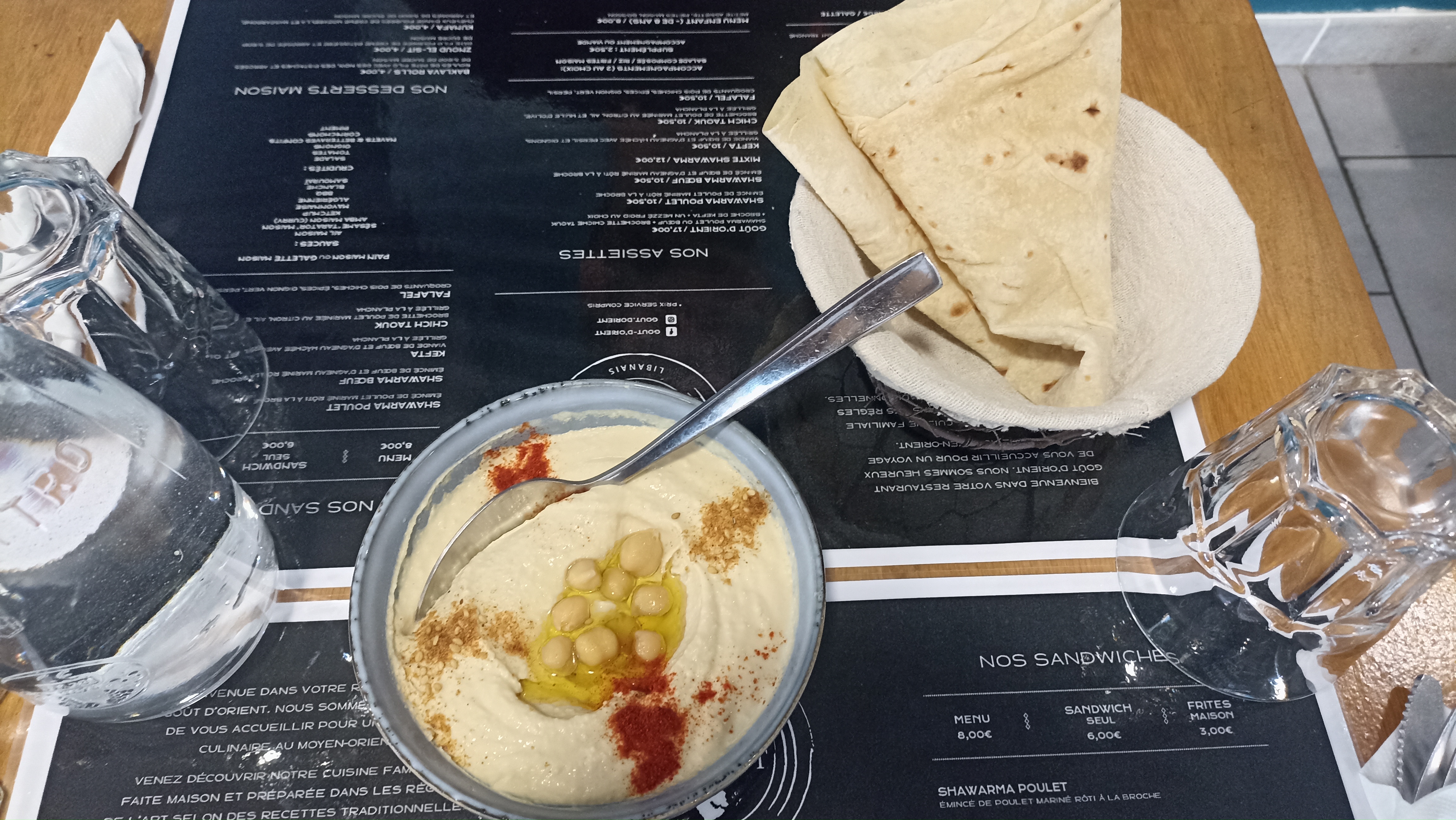 Je viens d’y aller avec ma fille. Menu Chiche Taouk et hoummous. Délicieux, propre, tout est fait maison, personnes agréables et pas cher, que demander de plus ! Super nouvelle adresse à Pau. Merci à vous. Ma petite chienne vous souhaite une belle réussite. À très bientôt !
