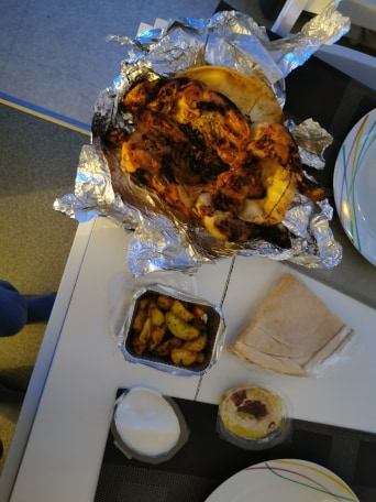 On a pris un plateau pour 2 (5 plats chauds et 5 froids) mais je ne recommande pas si vous êtes parmi ceux qui aiment la viande car vous aurez que 2 petits morceaux d’ailes de poulet.. En générale pour les autres plats rien de spéciale, à l’intérieur beaucoup de fumé.. on ne reviendra plus :)