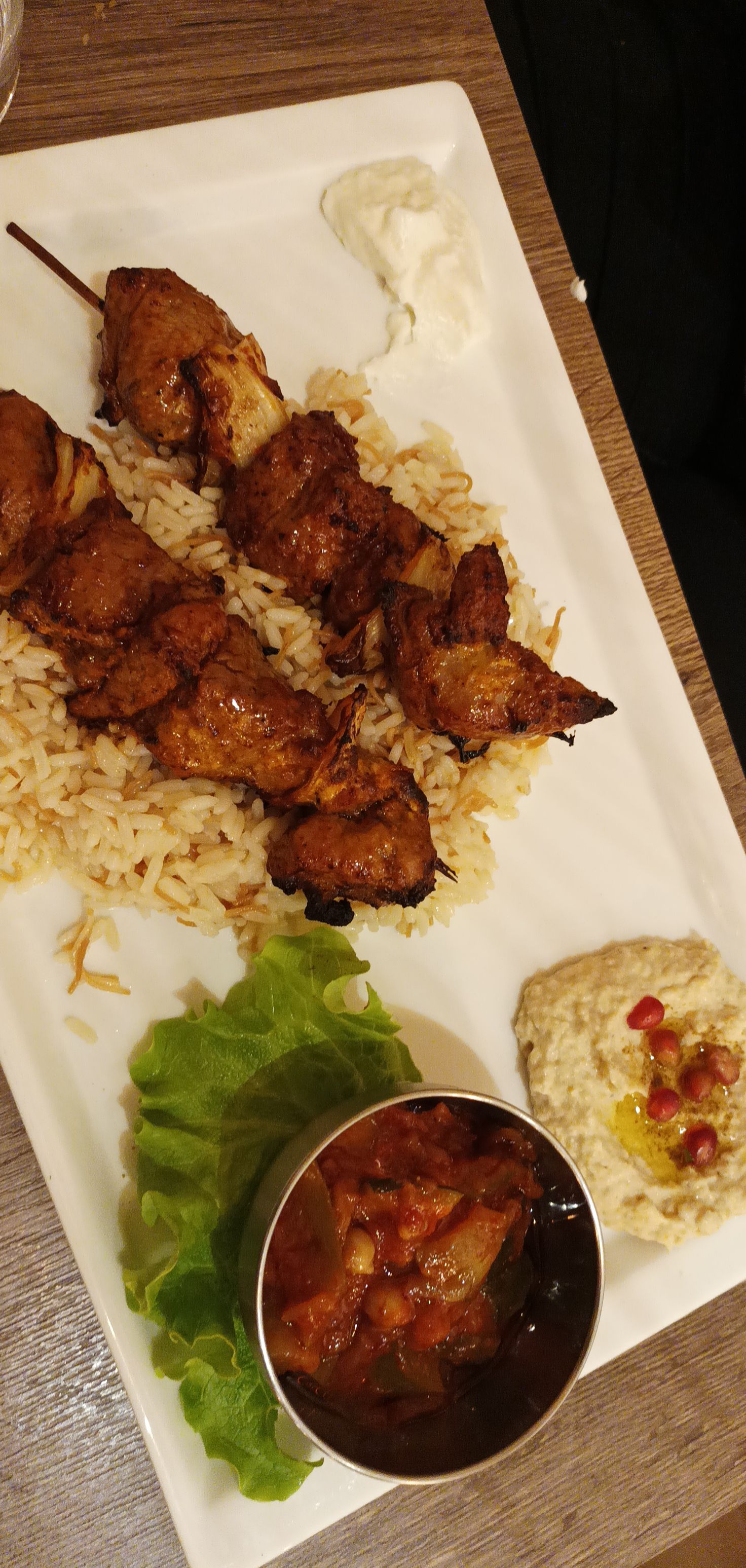 Restaurant Libanais j ai pris le trio de brochettes Très bien cuit très bon produits copieux je recommande