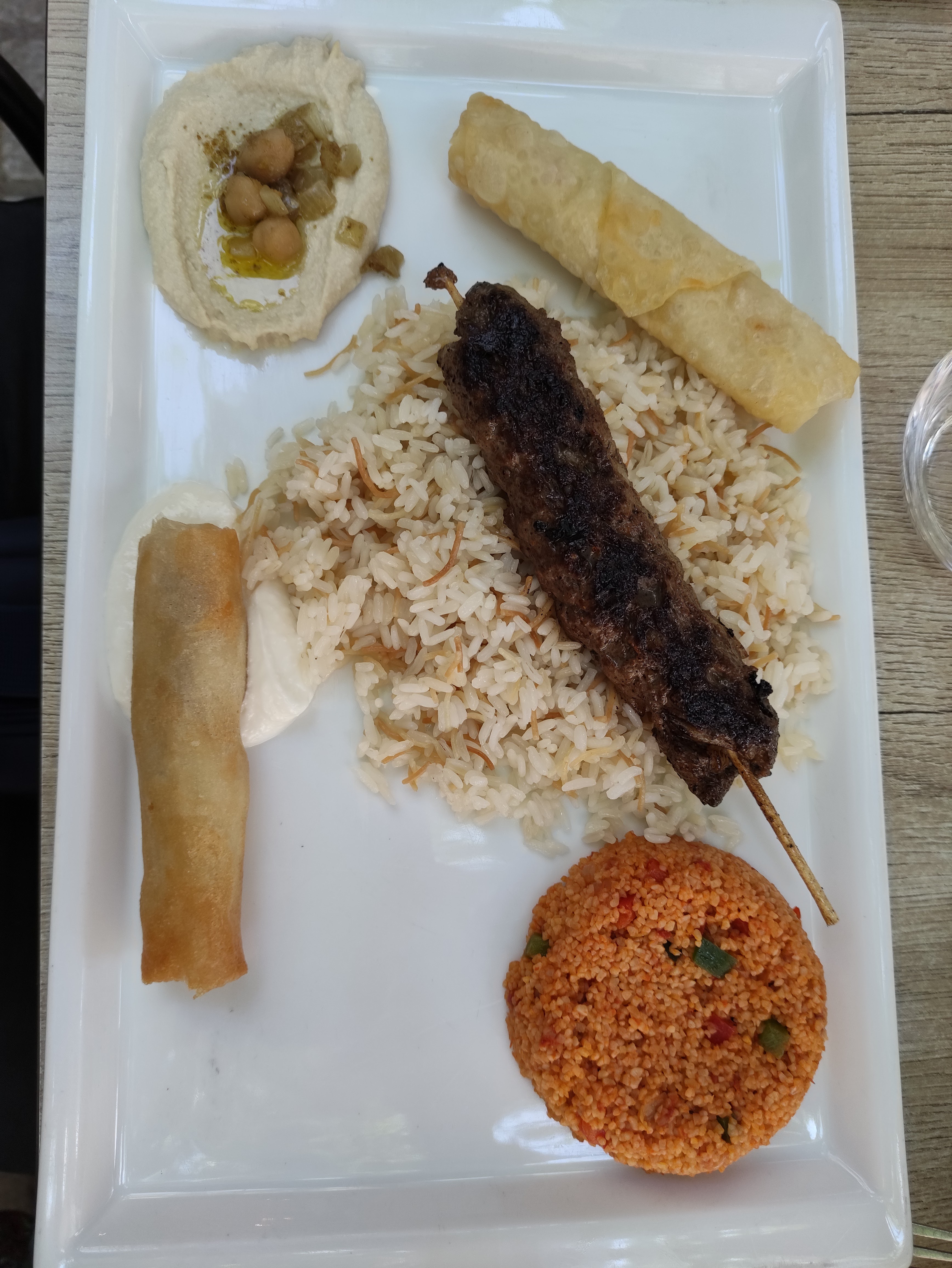 Je suis pas fan du libanais....pour moi y a souvent trop de persil ...mais là y a vraiment une belle variété de plats, biens representatifs du pays. On y est servi rapidement, et le service top ! Une serveuse qui vous conseille et prend le temps pour cela....le tout sans perdre son sourire, commercial peut être mais c'est mieux ainsi....des assiettes mix de qualités.....pour découvrir c'est top. Cela semble frais et fair sur place....moi j'ai beaucoup apprécié...avec des amis qui ont retenus la même chose que moi: bon, prix raisonnable, et bon accueil....quoi de plus ?!?!