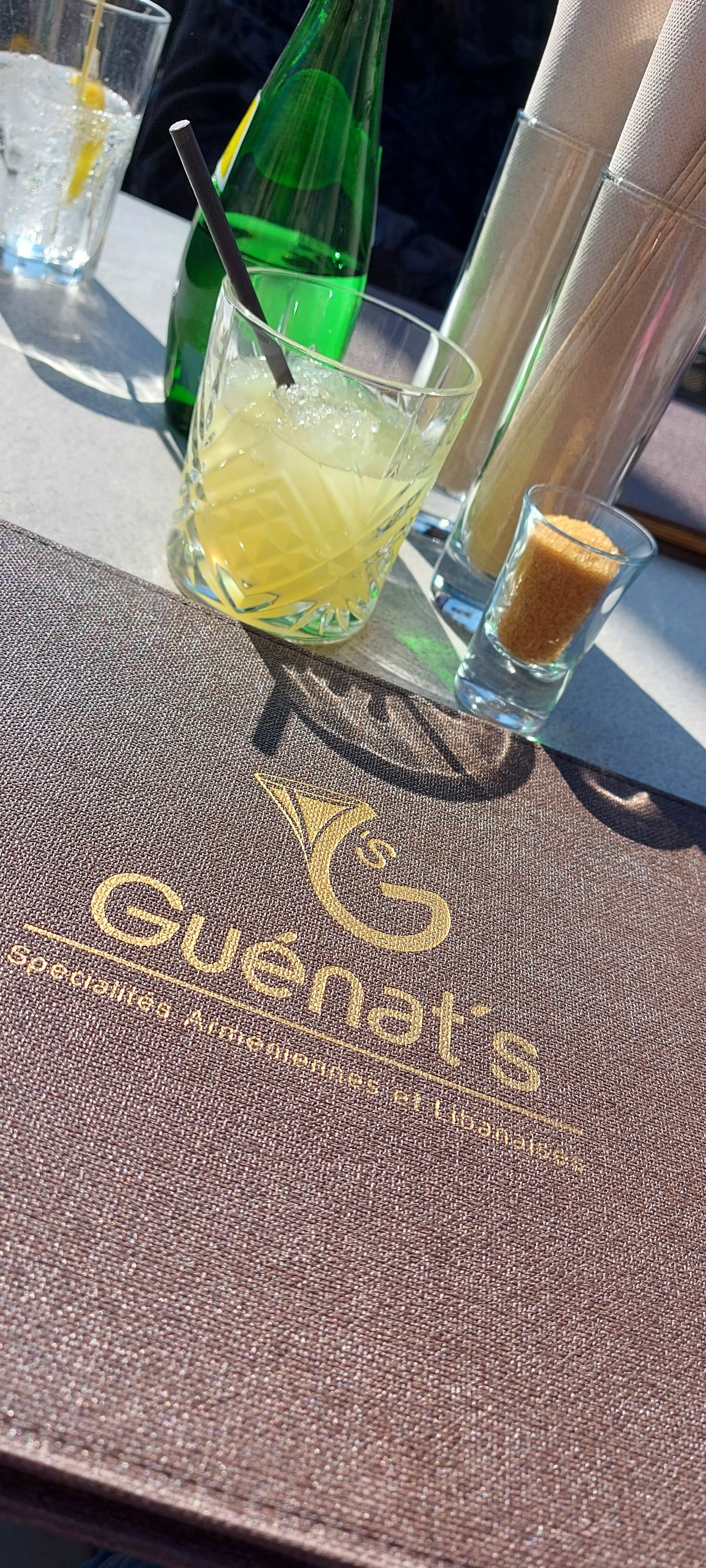 Nous avons découvert le Guenat’s, et quelle découverte ! Le restaurant est très agréable, très bien décoré, la véranda est est vrai plus. Nous avons été très bien accueilli, notre serveur était vraiment très sympathique ☺️ Les drinks sont délicieux, nous avons ensuite opté pour un mézzé végétarien et un végétalien, les deux étaient très copieux et délicieux. Les produits sont frais et de qualité. N’hésitez pas à les accompagner d’un verre de vin libanais qui va à merveille avec ! Nous n’avions plus faim mais nous voulions tout de même goûter les desserts par gourmandise, le paklawa et Ghaz El Ashta, un vrai coup de cœur 😍 Merci pour cette belle soirée sans fausse note