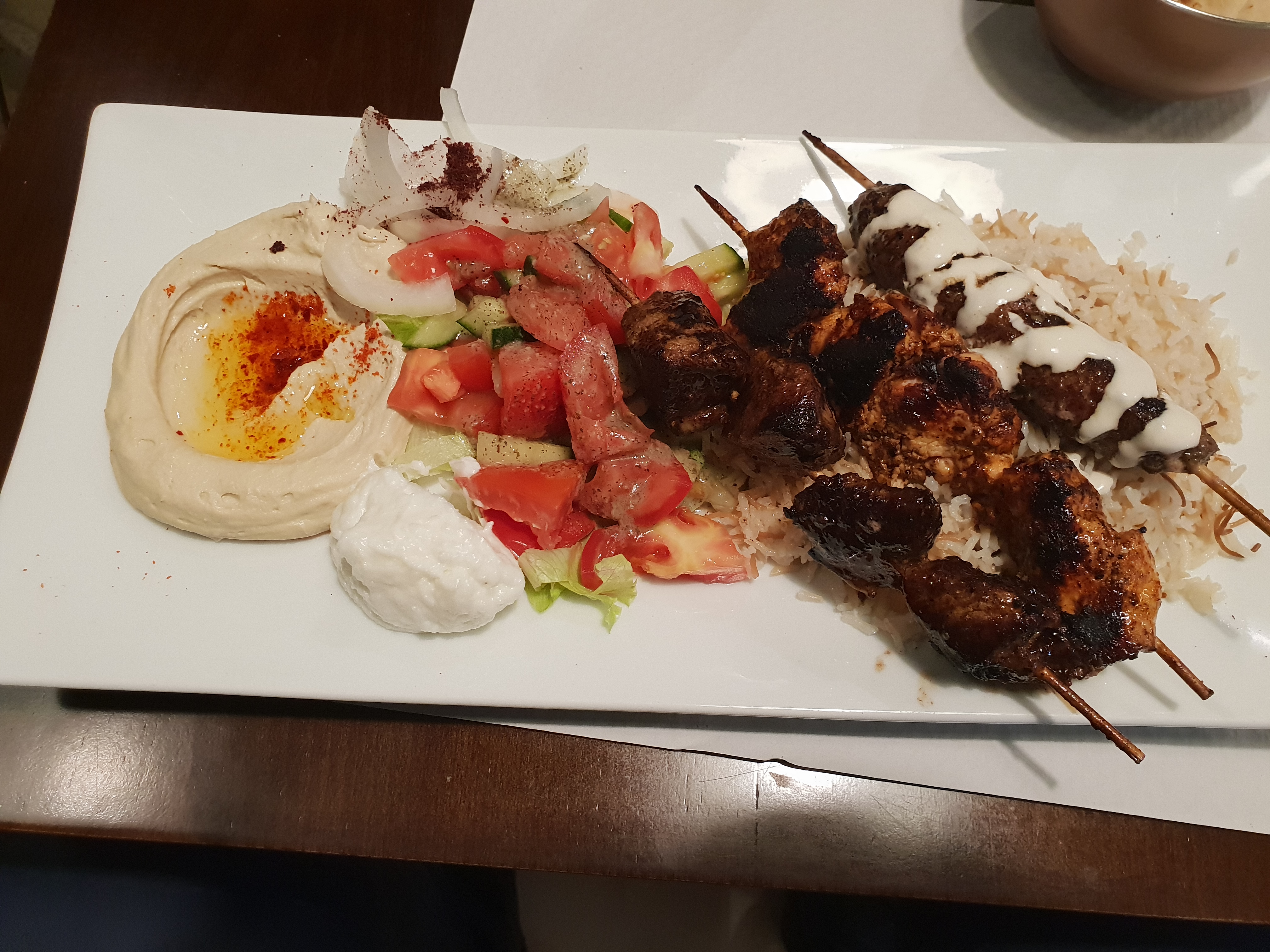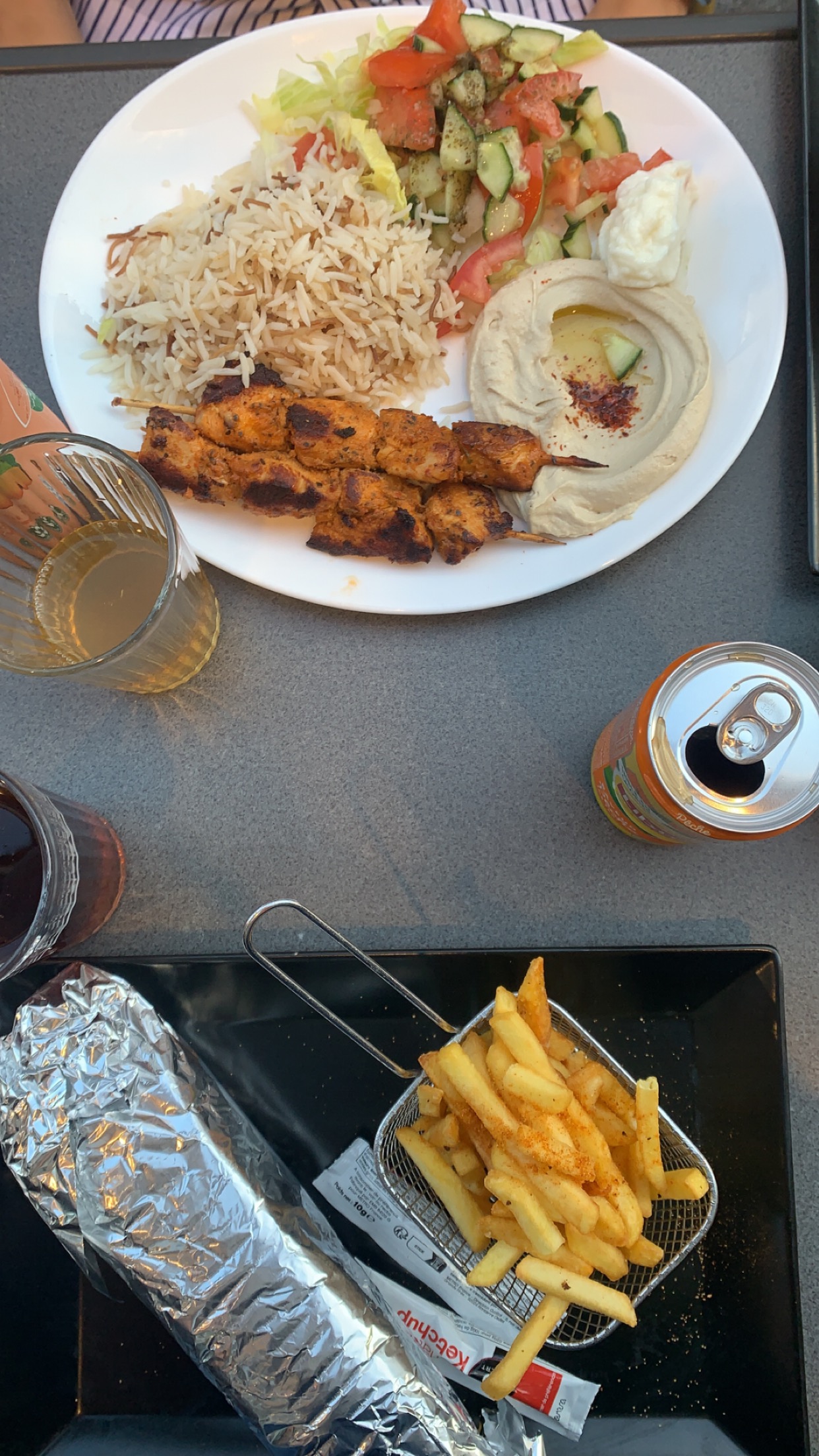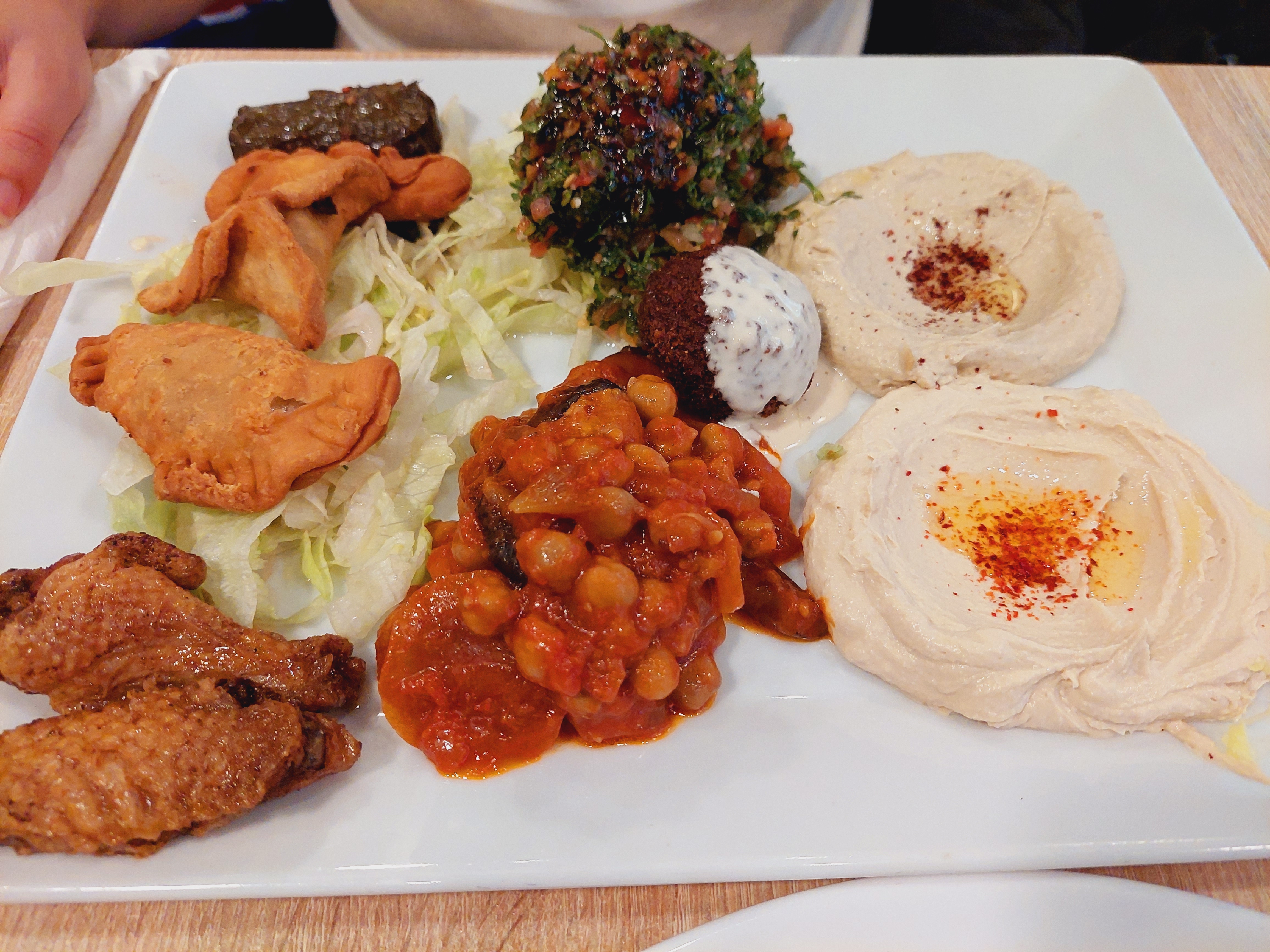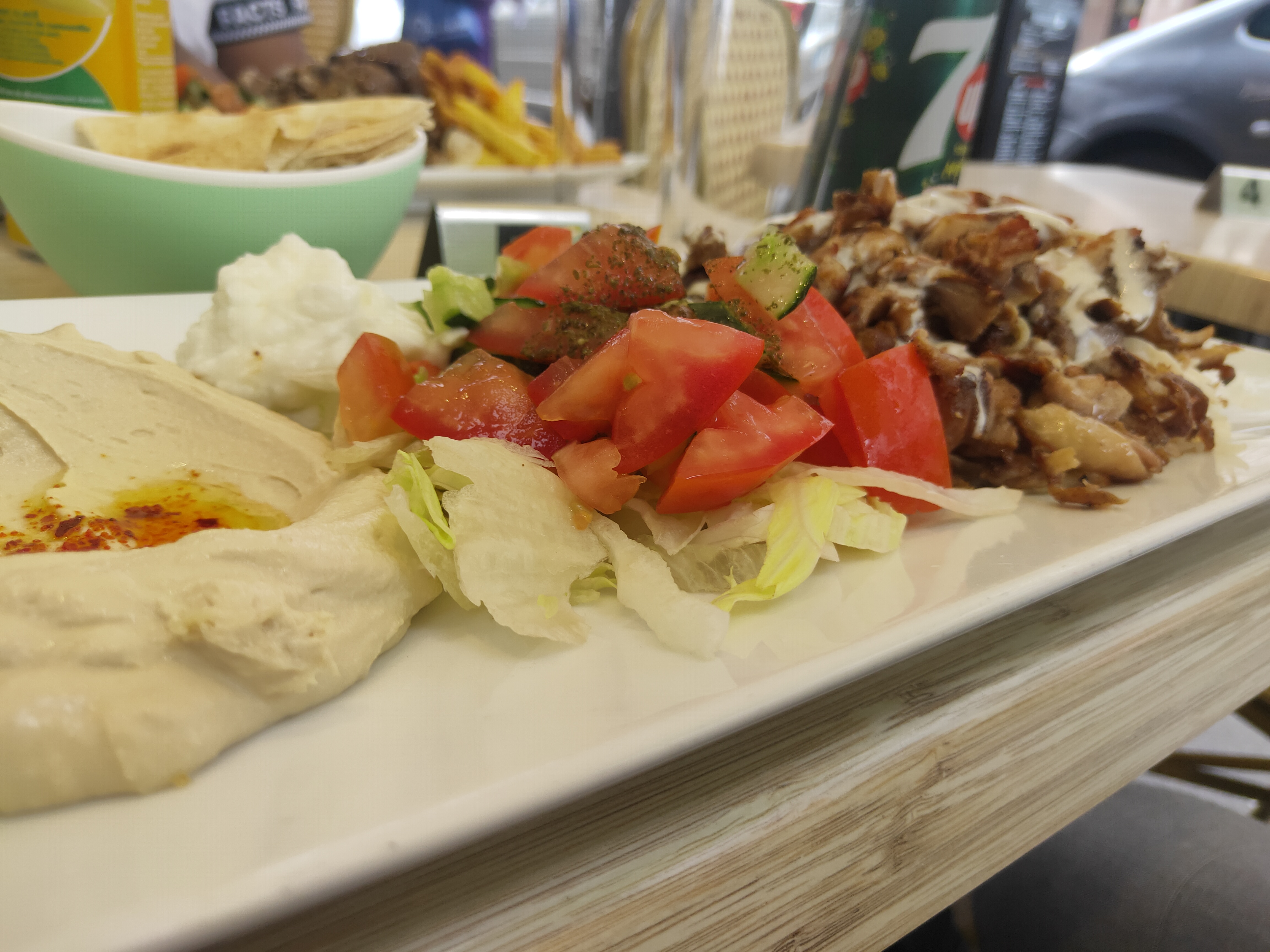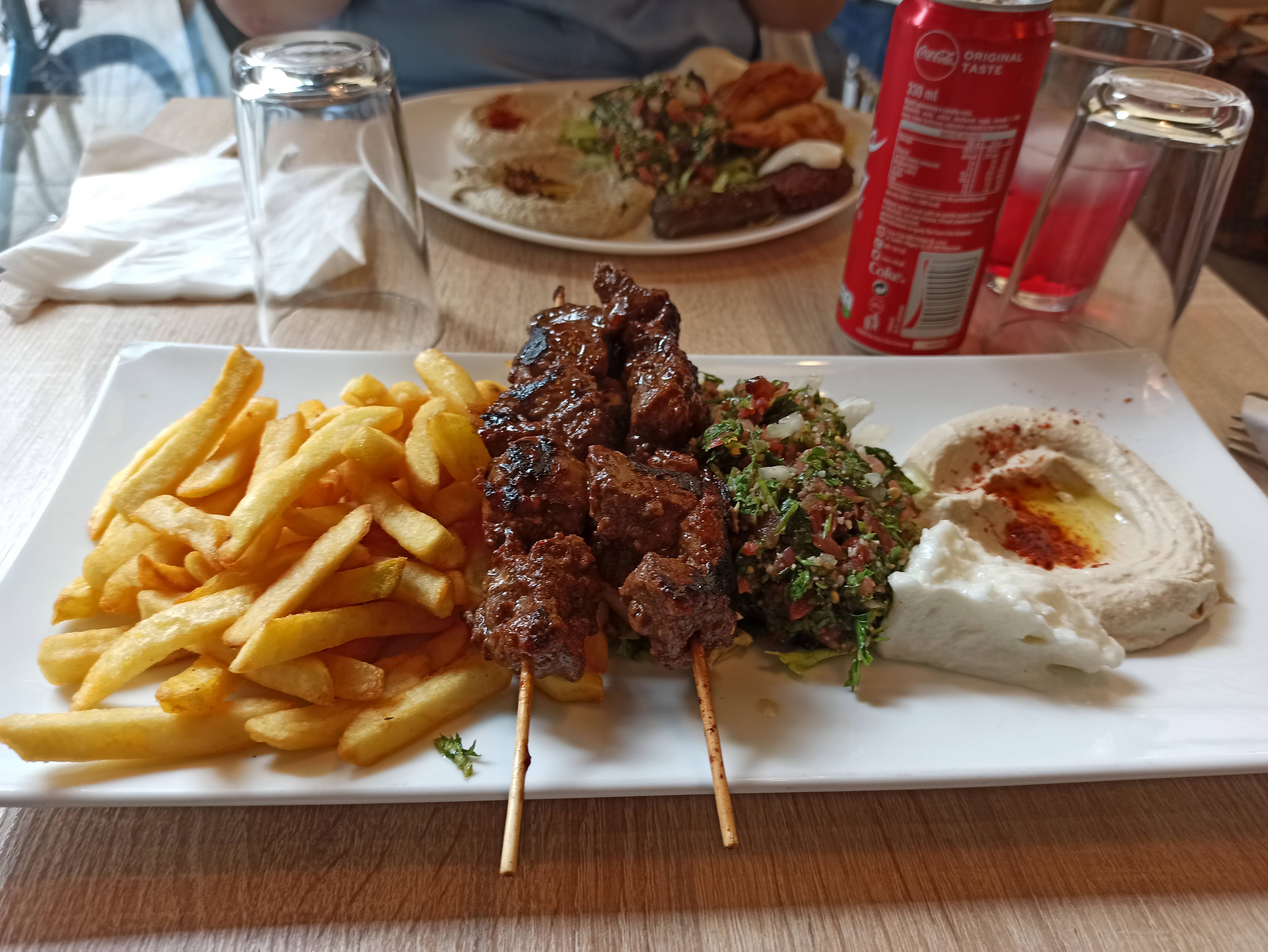 Leur hummus est très très bon, mais malheureusement, je n'ai pas été fan plus que ça. Les frites aussi ne sont pas vraiment croustillantes, donc même si de goût, c'est trop bon de les tremper dans leur hummus, la texture est moyenne (elles sont soggy, comme on dit). Certaines portions (les assiettes) sont plutôt petite pour le prix et la viande shawarma n'est rien vraiment de spécial. Mais ce n'est que mon opinion, car mon copain a absolument adoré, il a tellement hâte qu'on y retourne et qu'il reprenne soit le mix de toutes leurs mezze, soit un bon shawarma poulet. On a été du même avis sur les desserts, ils ont bien été vendus, mais n'étaient pas ouf du tout. Perso, je vous conseille juste une bonne assiette de hummus là-bas😅