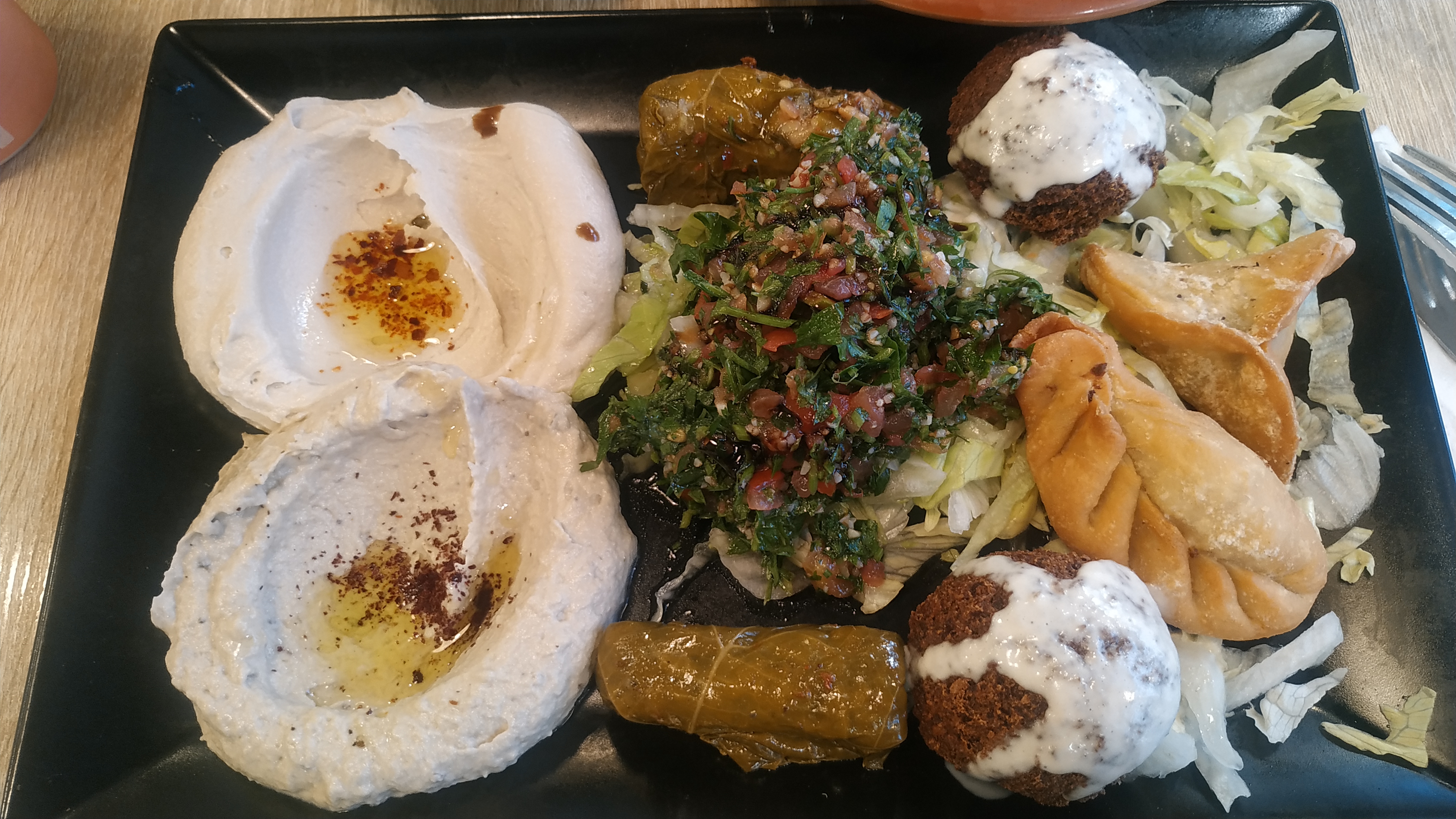 J'ai commandé des mézzés. Les sambousseks et houmous étaient très bons. En revanche, moutabal le plus acide et salé que j'ai mangé de ma vie et Dieu sait que j'en ai mangé, c'est mon plat favori :). On ne sent pas l'aubergine, pas même dans le texture et les falafels étaient franchement mauvais. Je ne recommande pas.