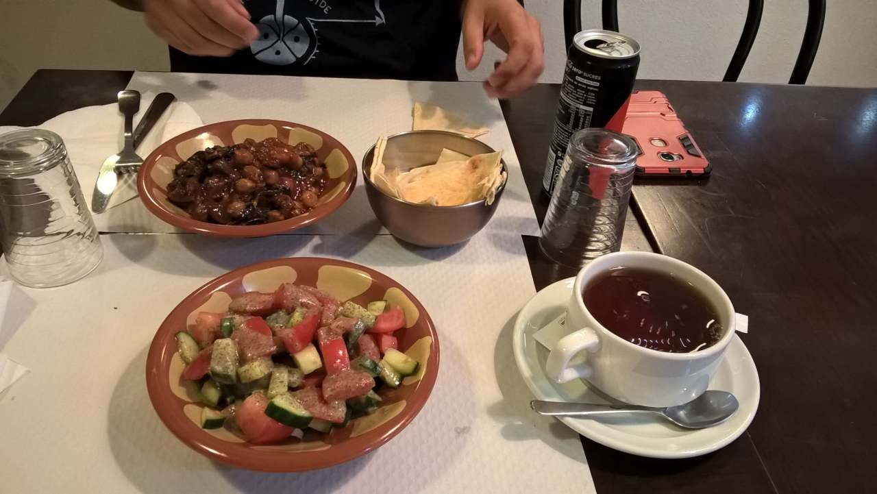 Restau Top! De la salade de crudités, aux sandwichs et ses frites, à la viande à la cannelle jusqu'au thé à la fleur d'oranger! Finissez votre repas avec un dessert (Assafiri fortement recommandé!)
