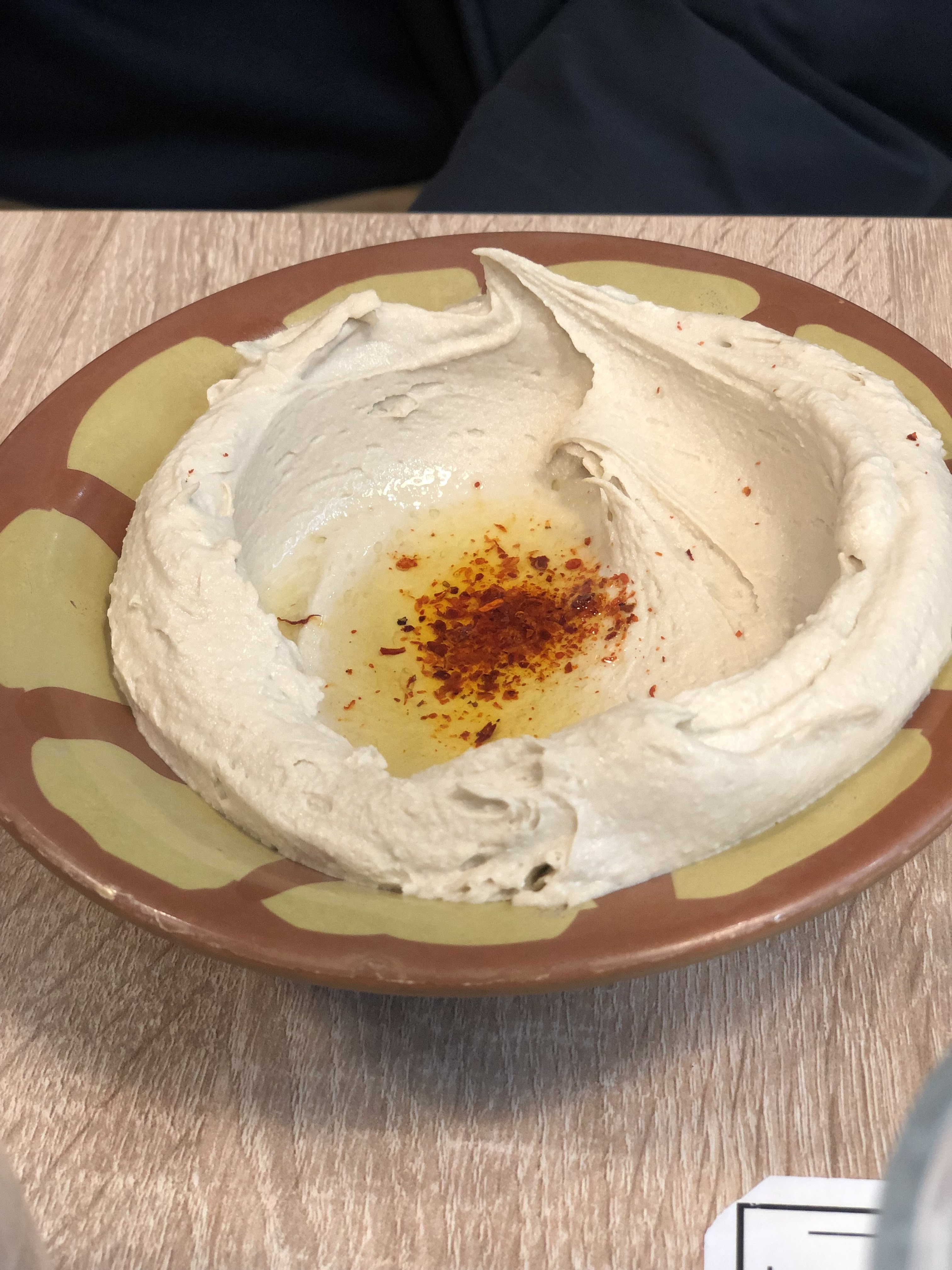 Houmous de couleur grise, au goût inhabituel, très amer et peu digeste. J'ai l'impression qu'on m'a servi des restes de la veille. C'était ma première et dernière visite dans votre établissement...