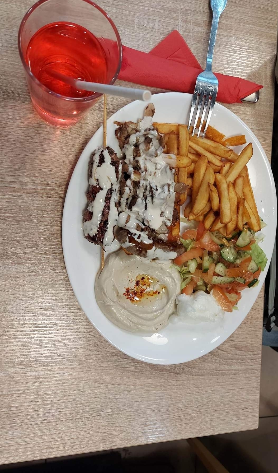 Première fois que je suis venu le 18 août dernier avec mon frère. On passe souvent devant, puis on a sauté le pas pour testé et on a pas était déçu. J'ai pris une assiette Charwama poulet. Franchement c'était très bon surtout la sauce à l'ail qui je trouve est incroyable et se démarque bien des autres. Elle avait de la fraîcheur et elle accompagnée bien tout les aliments du plat, bien goûtu. Je recommande