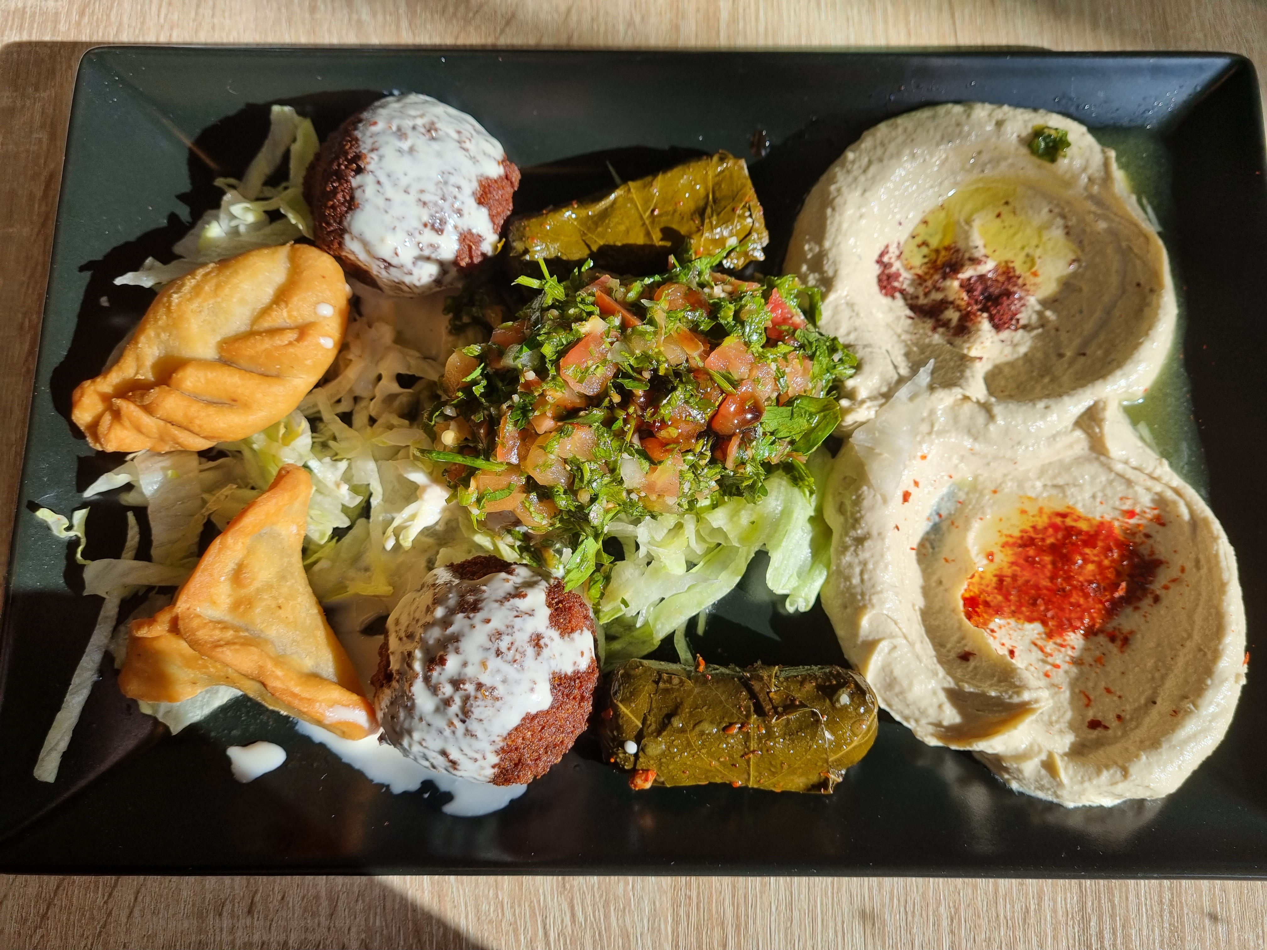 Je suis venue pour tester avec des amis qui commandent et viennent régulièrement se régaler au Houmous&Co. La cheffe et son équipe sont très accueillants et souriant. Le service est très rapide et l’assiette vegan est très bien servie et délicieuse. Le rapport qualité-prix est imbattable. Je recommande fortement et je reviendrai.