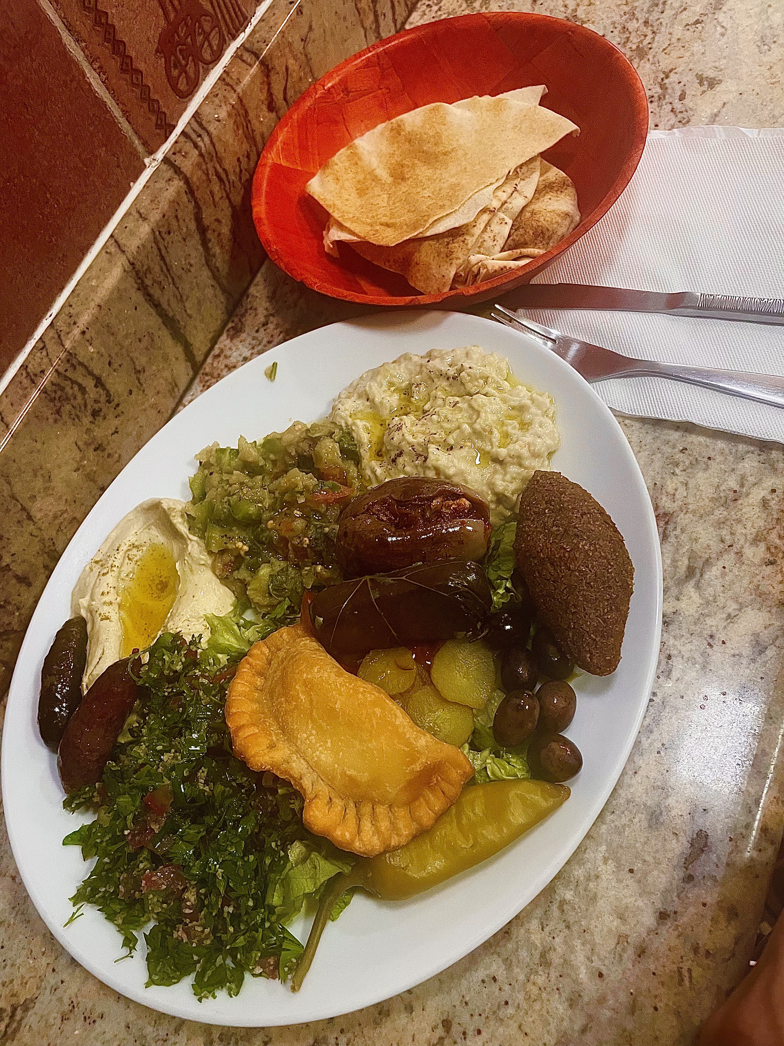9 euros pour une copieuse assiette de mezze. Le caviar d'aubergine est un délice. Le menu sandwich à 7€50 comprend un sandwich libanais au choix, une boisson, des frites et un dessert. Prix plus qu'imbattable pour découvrir les saveurs du Liban.