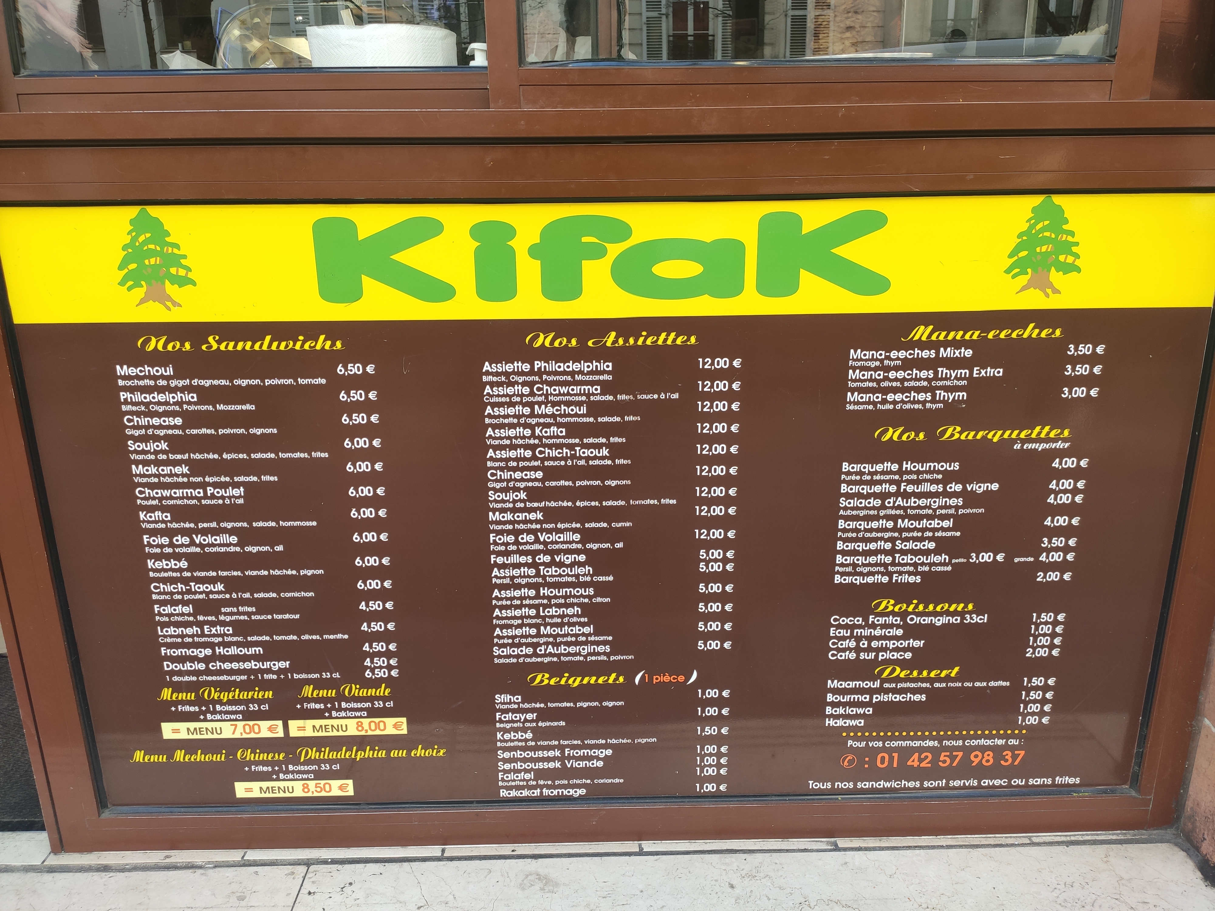 J’habitais près du Kifak et je n’ai jamais mis de commentaire mais depuis que j’ai déménagé j’y reviens spécialement. J’ai beau mangé dans d’autres restaurants libanais je le compta toujours au kifak et je reviens toujours au kifak. Le chichtaouk est le meilleur de Paris, les frites sont super bonnes, les sauces également, et en plus c’est super propre. Toute la famille valide le kifak et le personnel y ai toujours agréable ! Mon meilleur libanais