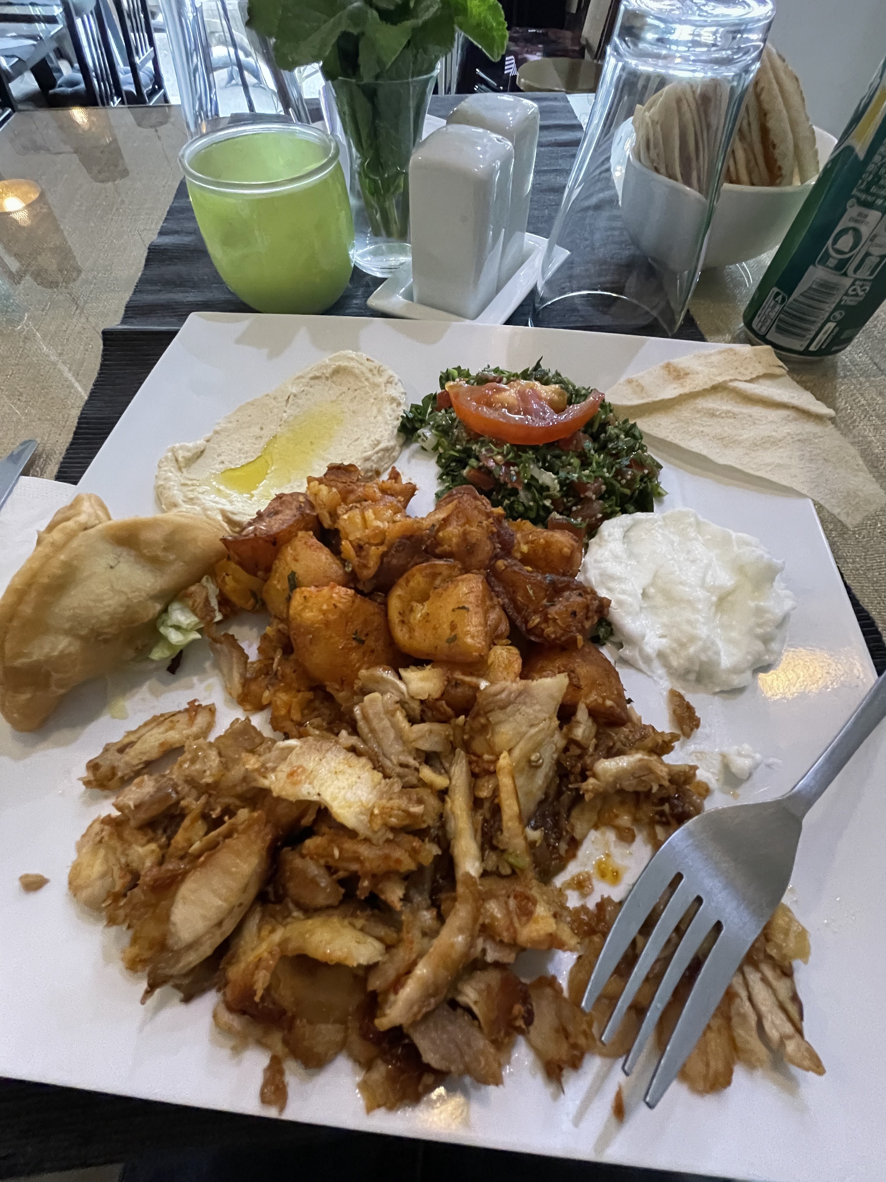 Portion treeees correcte et rassasiante. Les plats sont suuuper délicieux, ça nous a fait voyager à l'orient par son goût agréable. Personnel sympa et serviable, service tres vite. Le gérant est très gentil et accueillant. Nous allons surement y revenir. A recommander