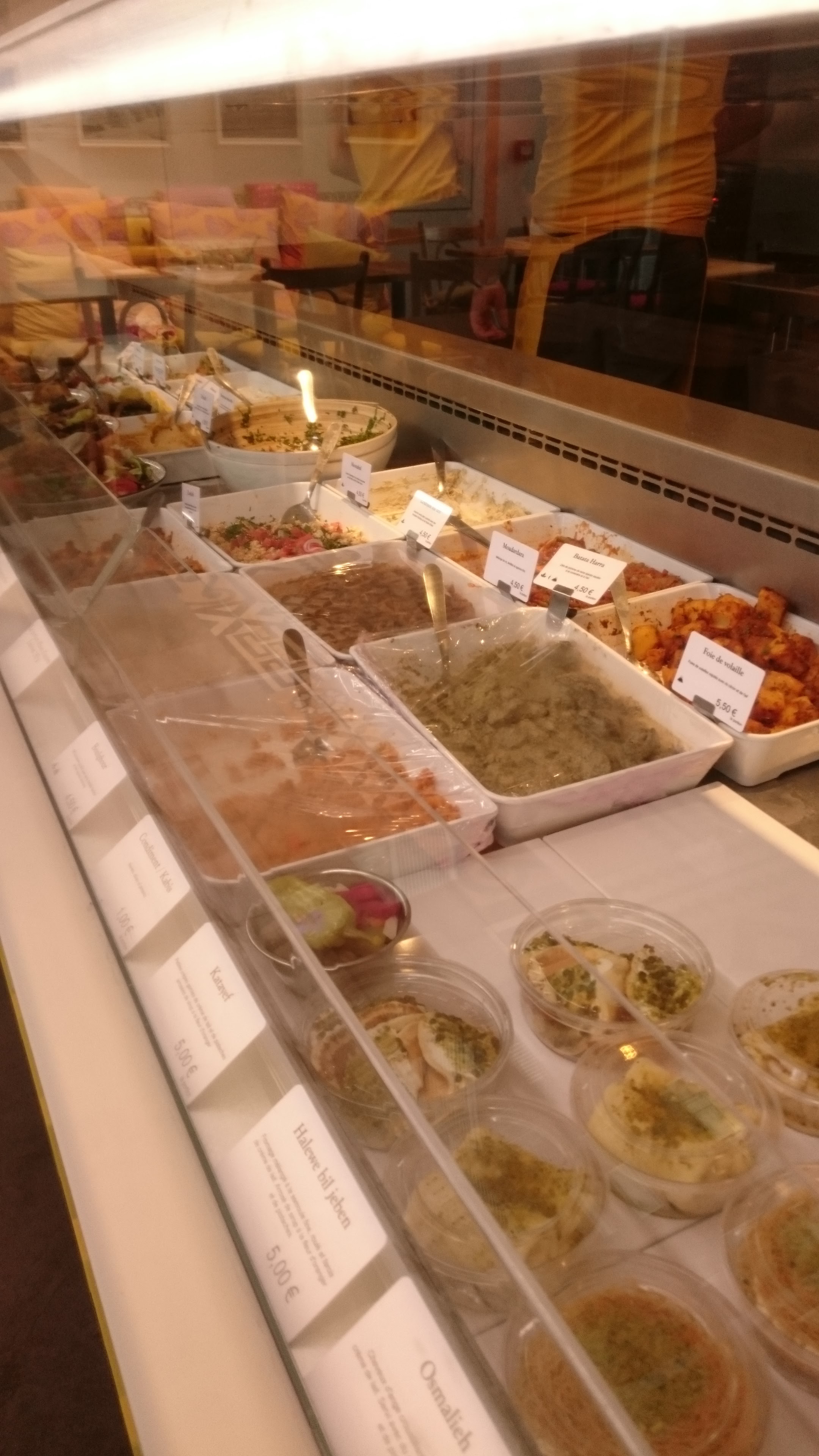 Nous y sommes allés le soir et Il ne restait plus grand-chose en terme de plats. Ça manquait un peu de saveur en ce qui concerne le taboulé. Et les desserts sont trop chers à mon goût. 5€ pour une crème saupoudrée d’1g de pistache c’est exagéré