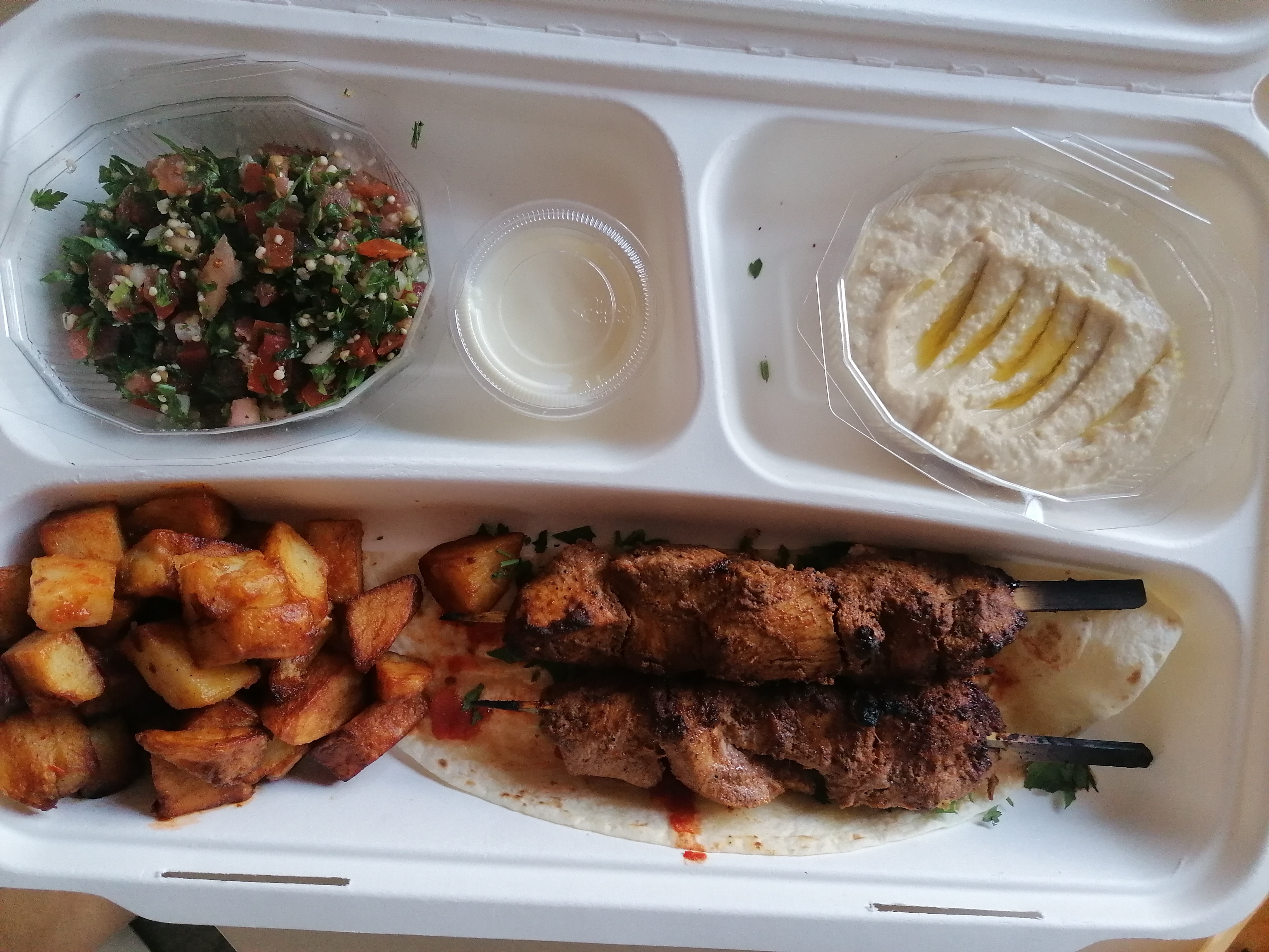Un mezze mix grill commandé hier par téléphone, et dégusté à midi après être allé le chercher. Les épices nous ont fait voyager. Les produits sont clairement frais. La quantité est largement suffisante pour 2 personnes. Bref on s'est régalés !! Merci au chef cuisinier !
