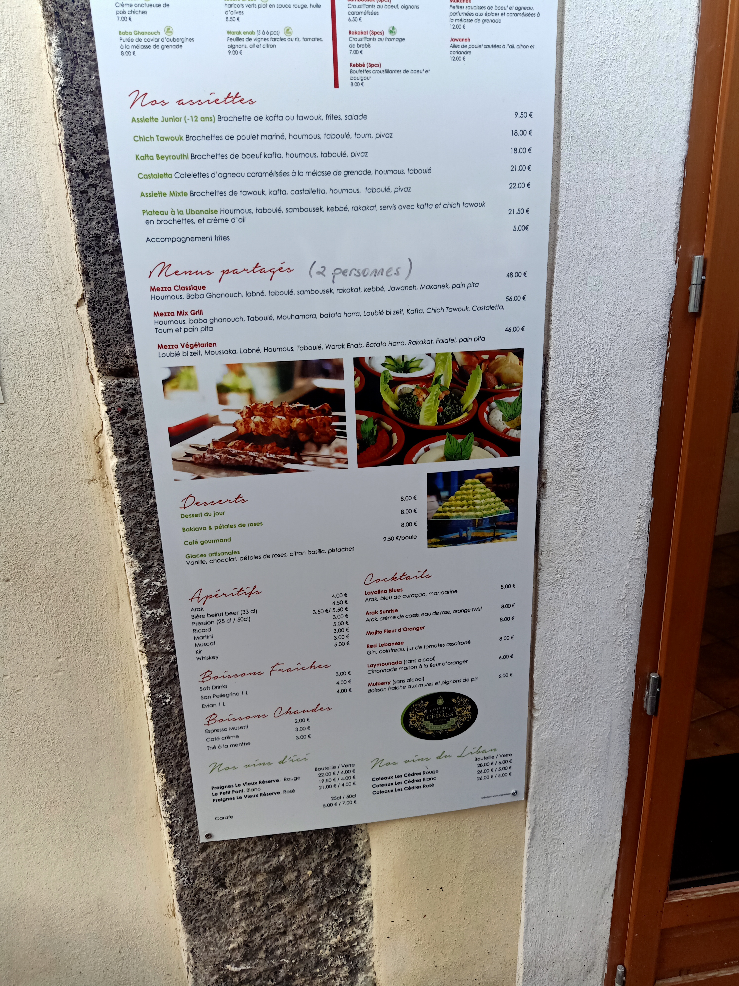 Un bon restaurant libanais. La petite terrasse du haut est agréable. L'assiette à 21,50€ est à tester. Elle est copieuse et fameuse. Un accueil très sympa. Mille merci pour ce bon moment.