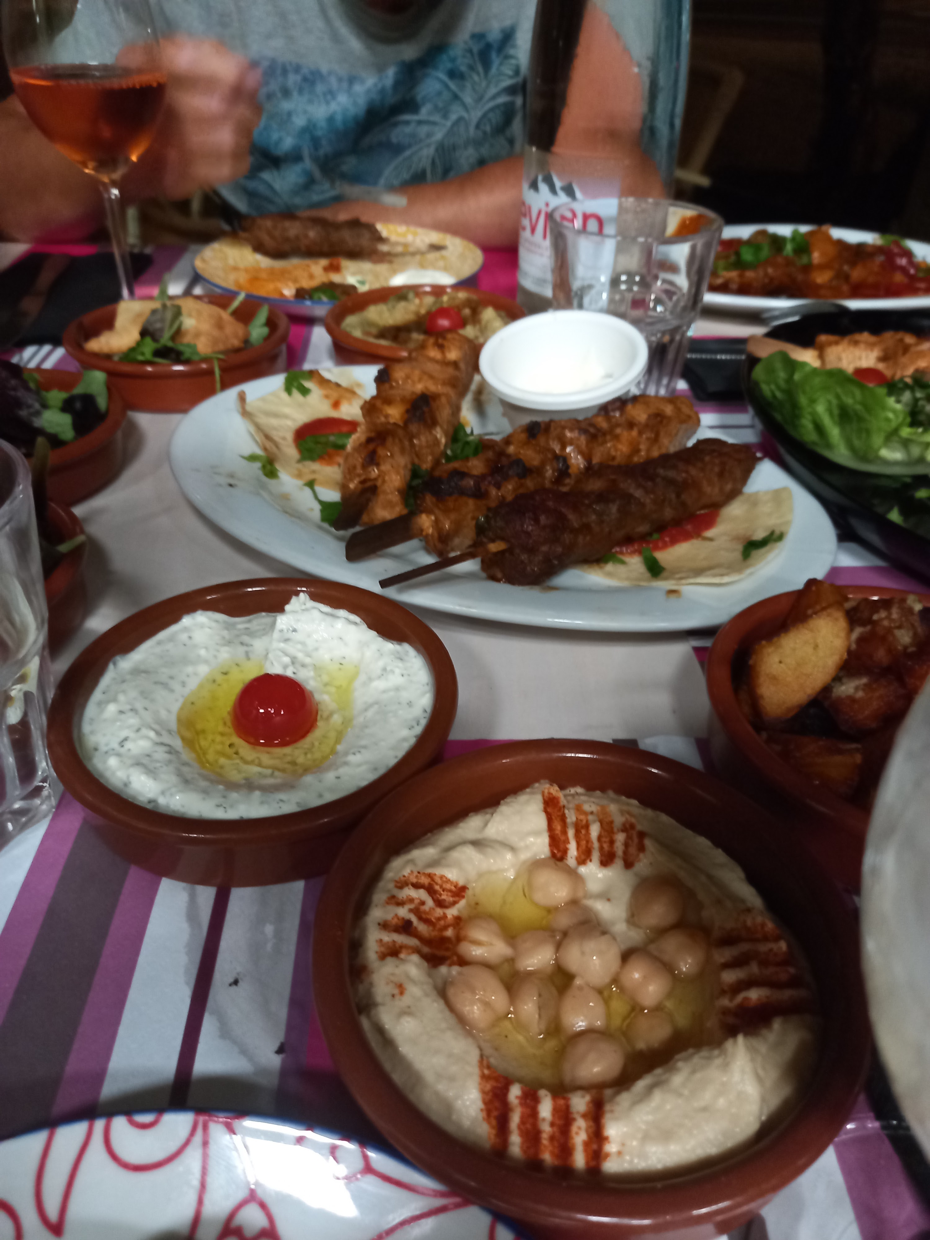 de passage à Agde centre ville, nous avons testé le restaurant libanais en terrasse et agréable de bonne brochette de boeuf plus les sauces différentes, par exemple sauce au pois chiches, sauce au soja, sauce au citron 🍋 sauce à la menthe fraîche avec un verre de vin rouge dû pays le Liban quelle régal 👍