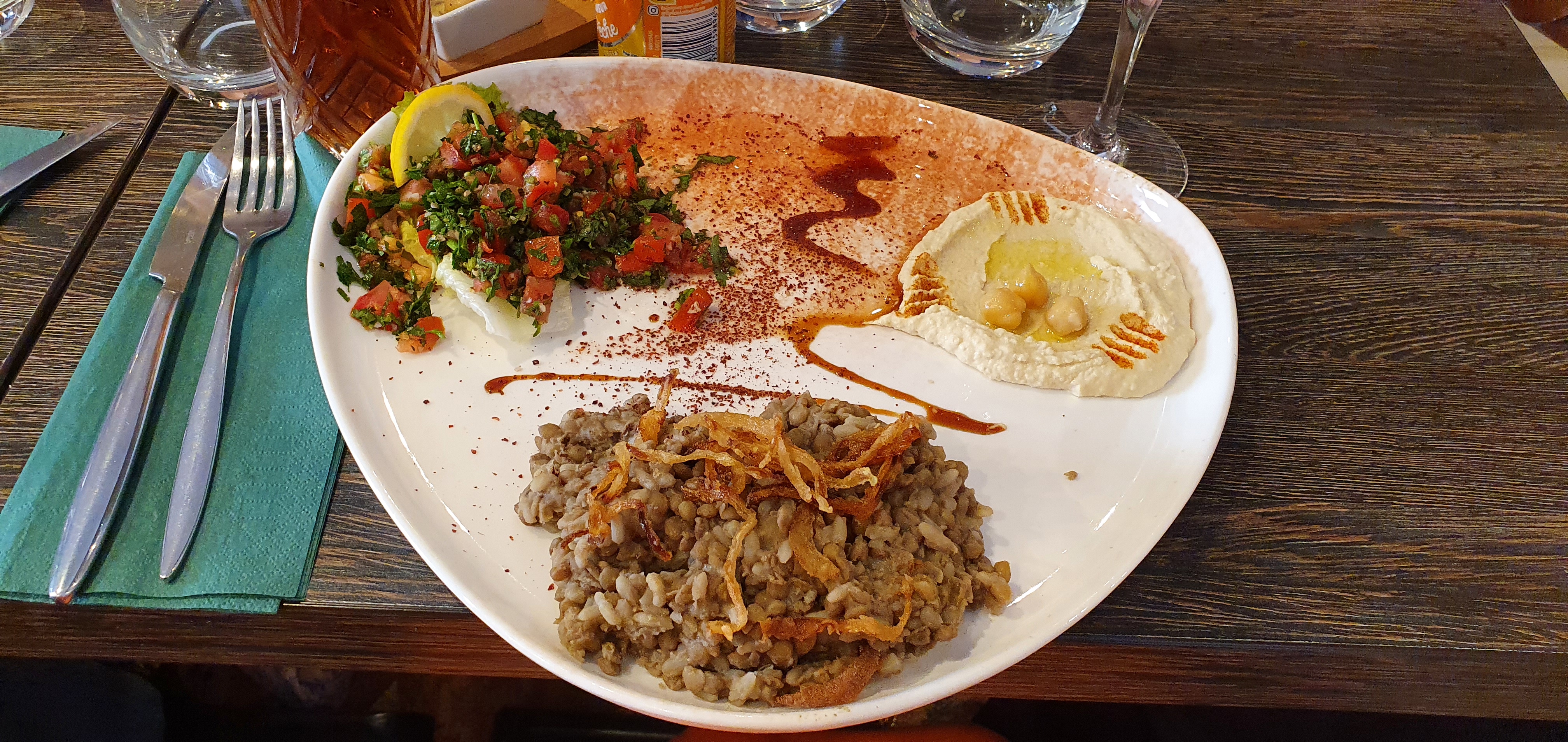 Très bon houmous et spécialités. Dommage que l'accueil n'ait pas été aussi bon.