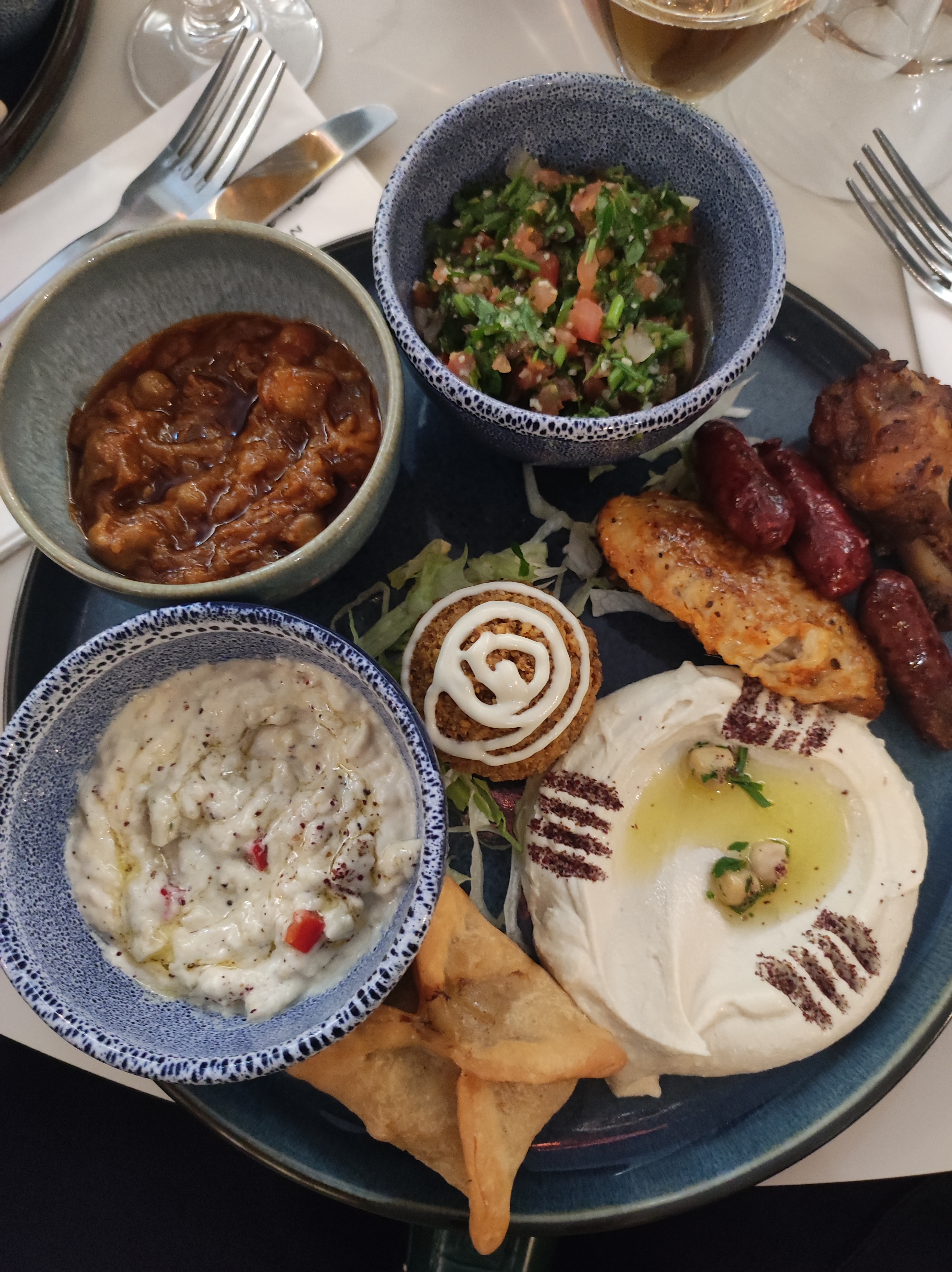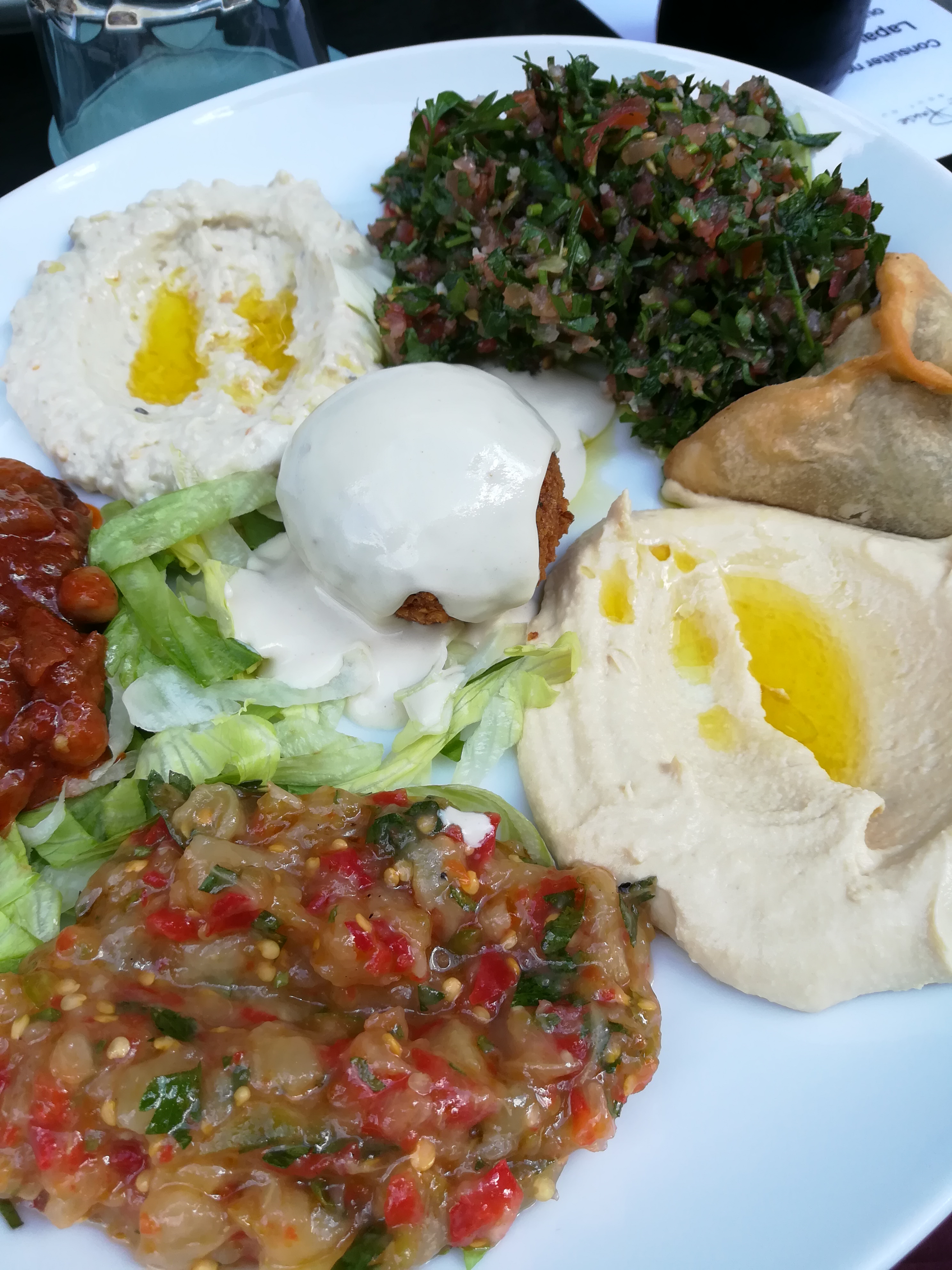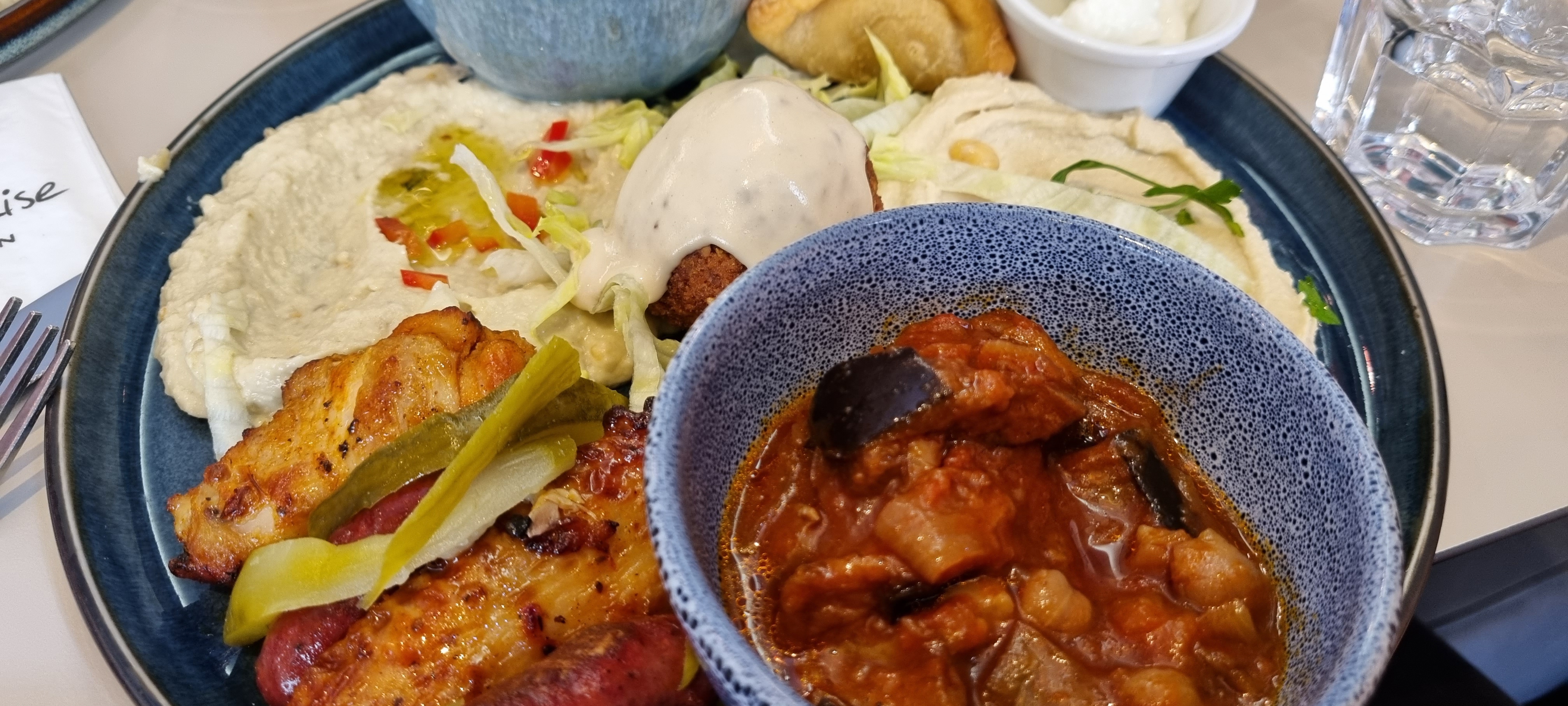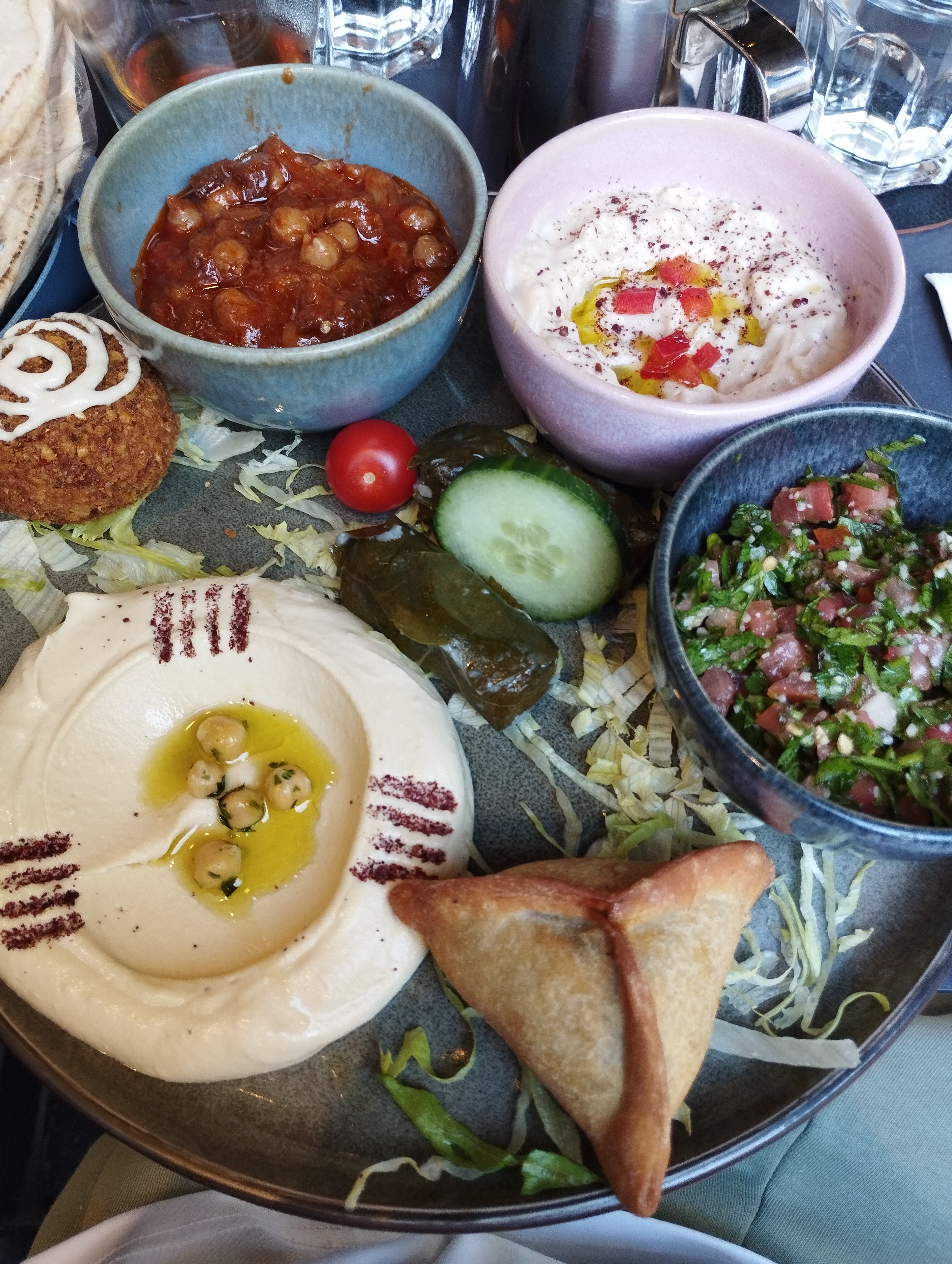 Nous avons testé l'assortiment de mezze. Pour deux personnes, ce ne sont pas les plats en double mais plus de variété. Du froid, du chaud, copieux et succulent! La table était presque trop petite pour accueillir tous ces petits plats. Equipe de service très agréable, ne nous presse pas pour assurer un service supplémentaire.