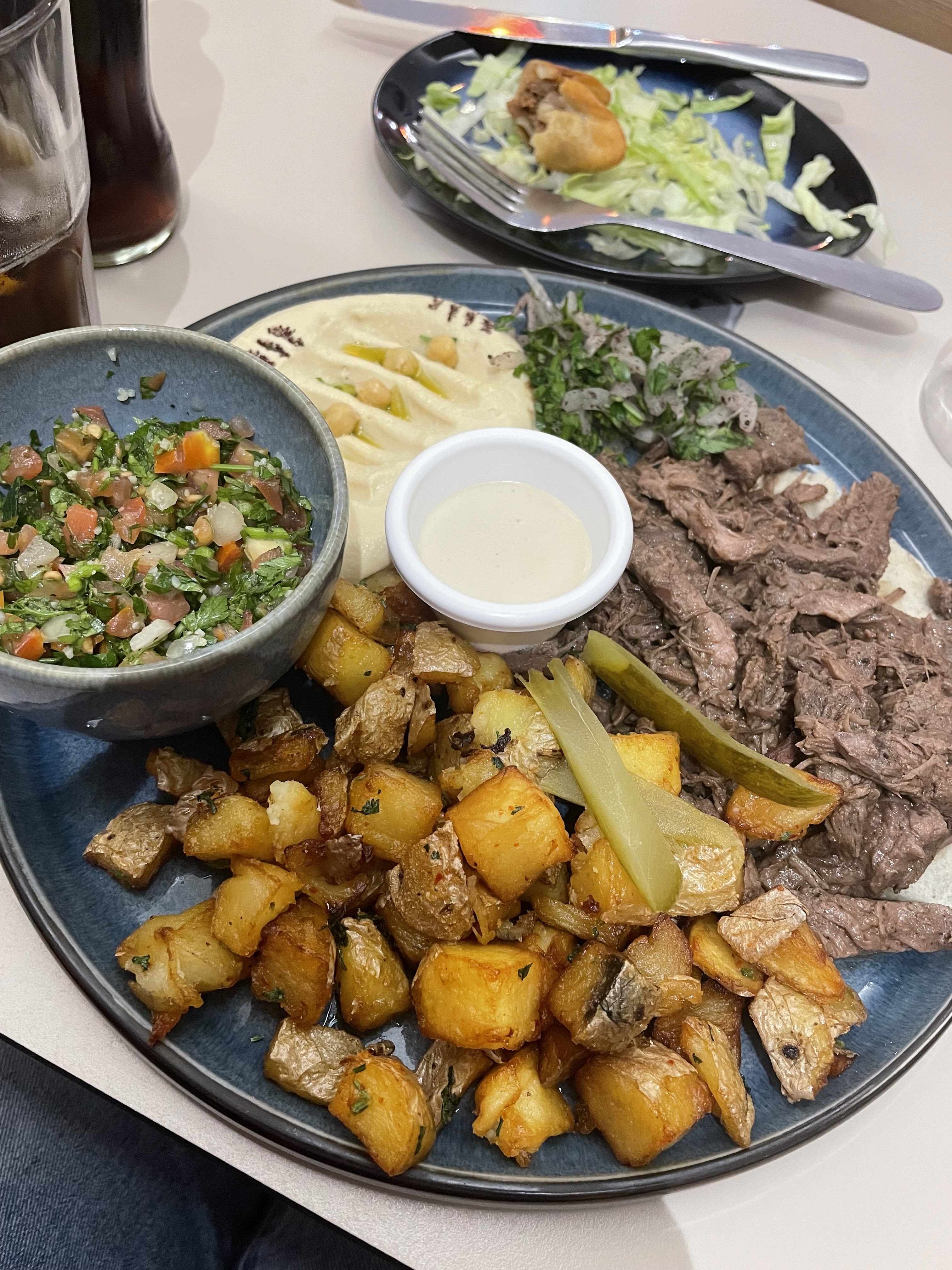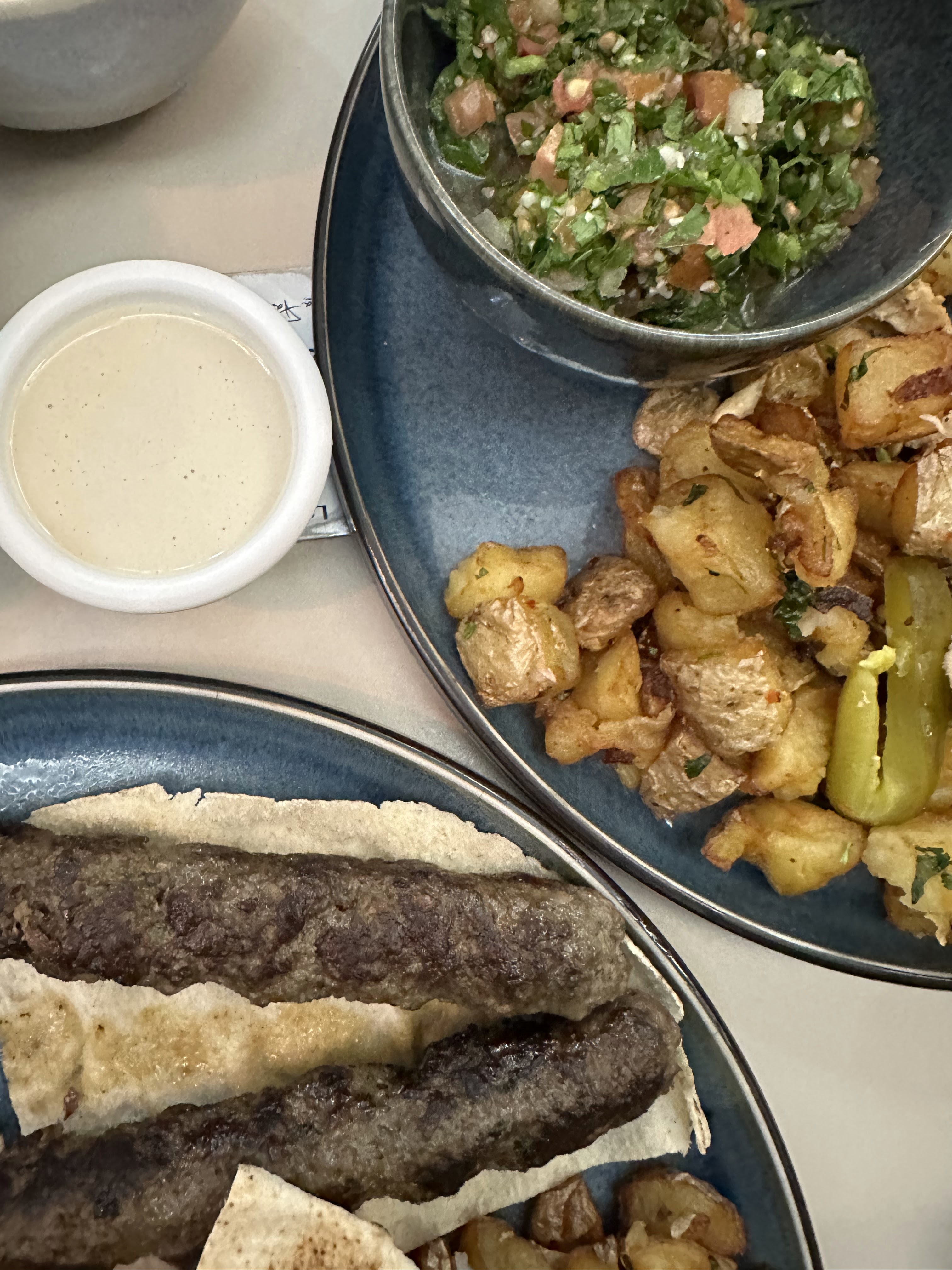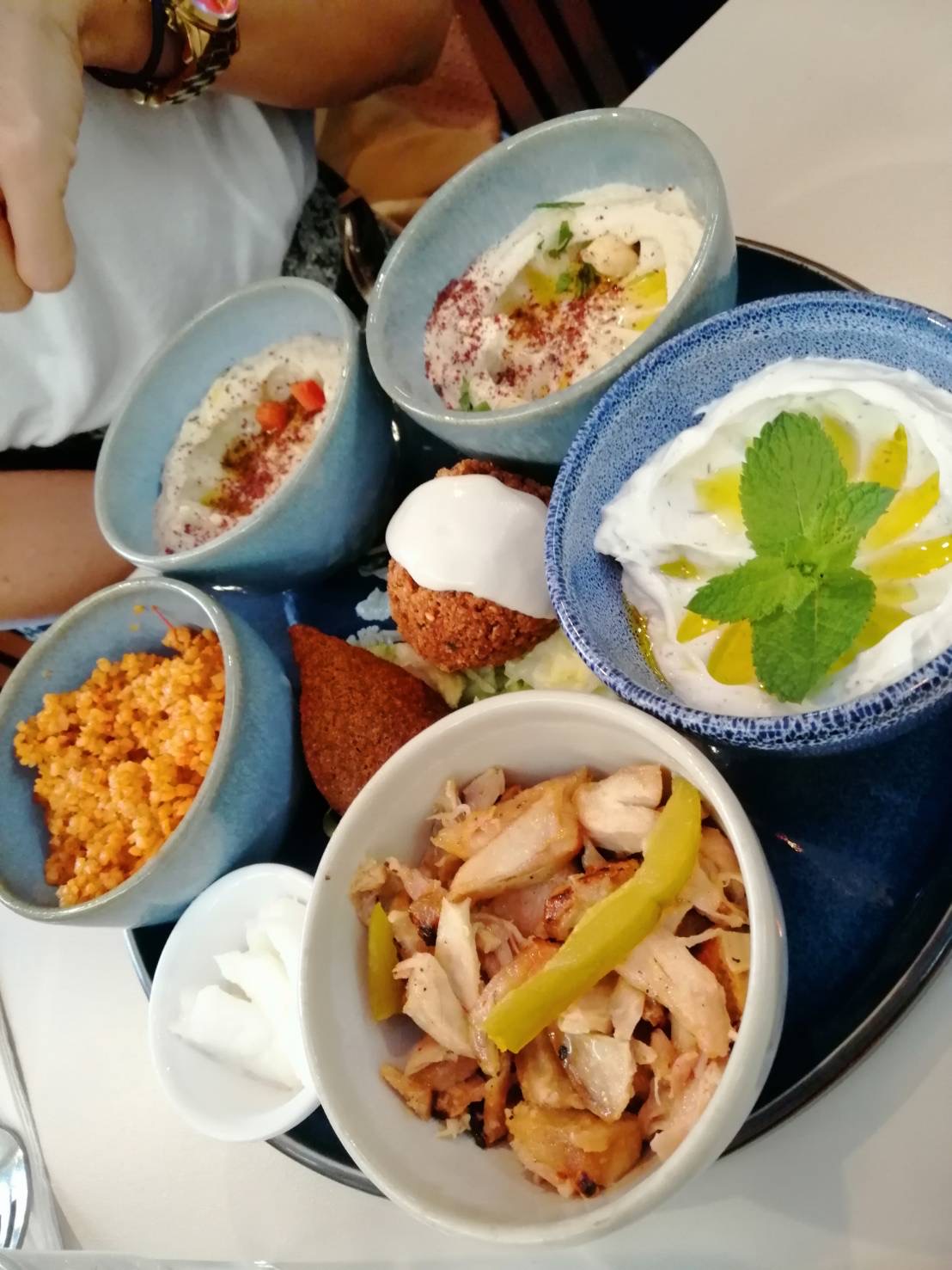 Nous avons testé l'assortiment de mezze. Pour deux personnes, ce ne sont pas les plats en double mais plus de variété. Du froid, du chaud, copieux et succulent! La table était presque trop petite pour accueillir tous ces petits plats. Equipe de service très agréable, ne nous presse pas pour assurer un service supplémentaire.