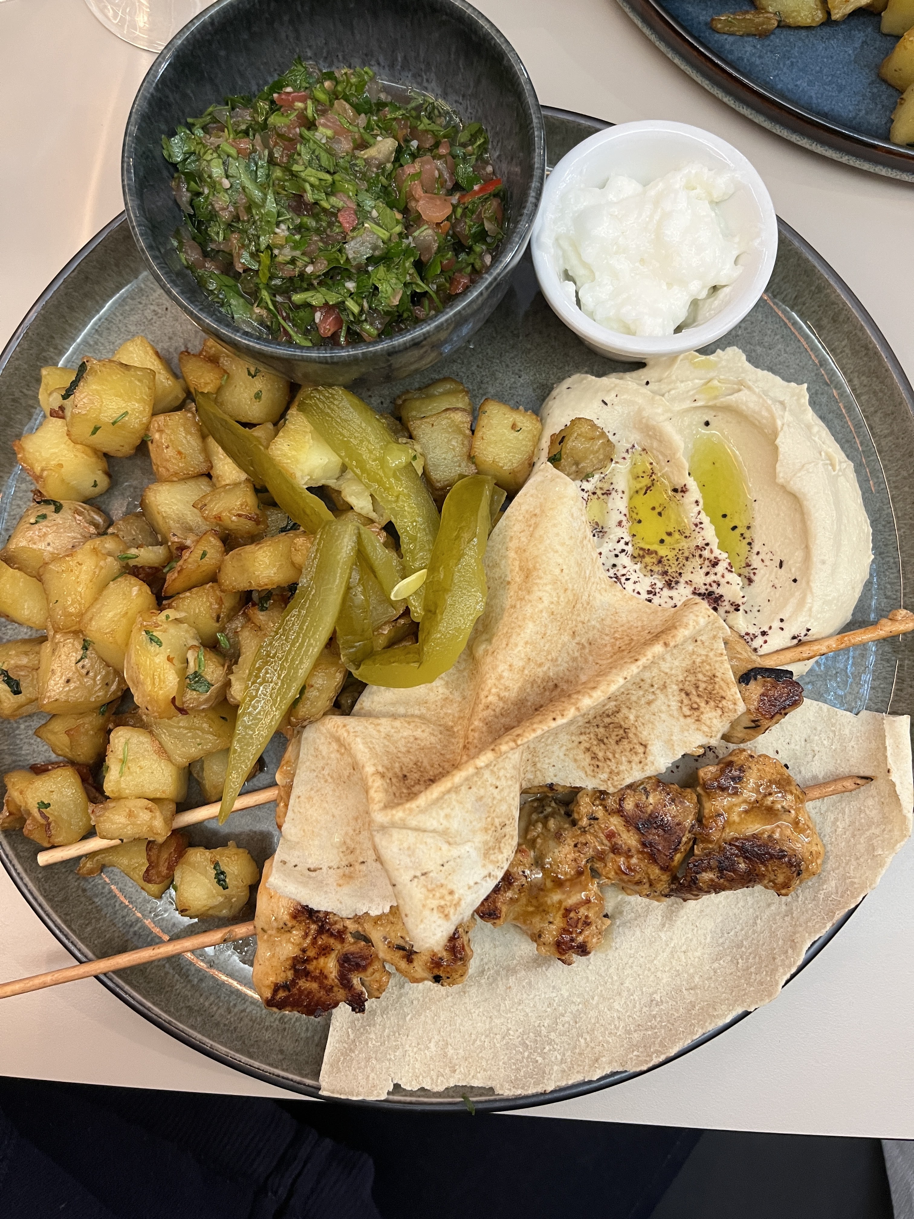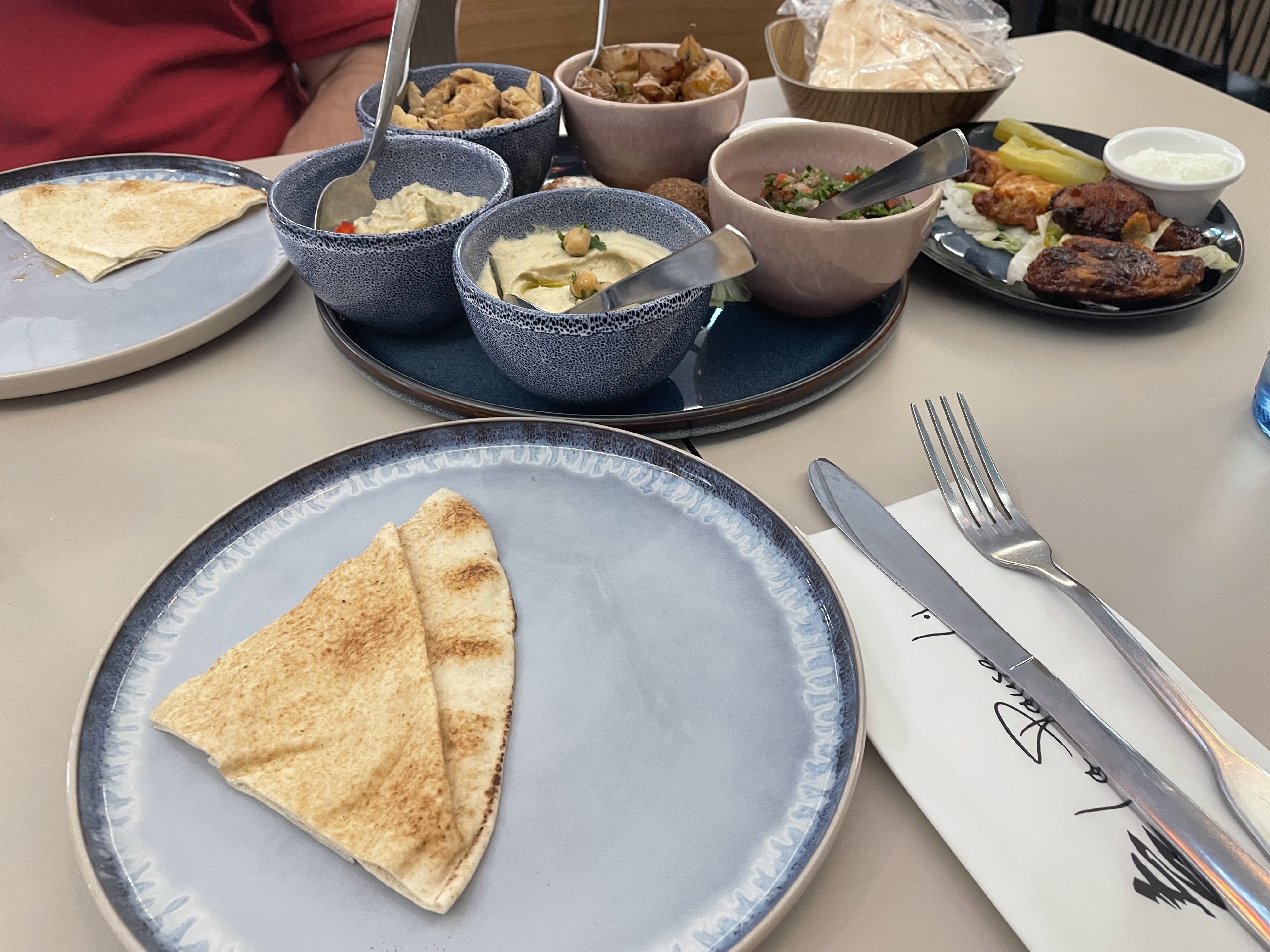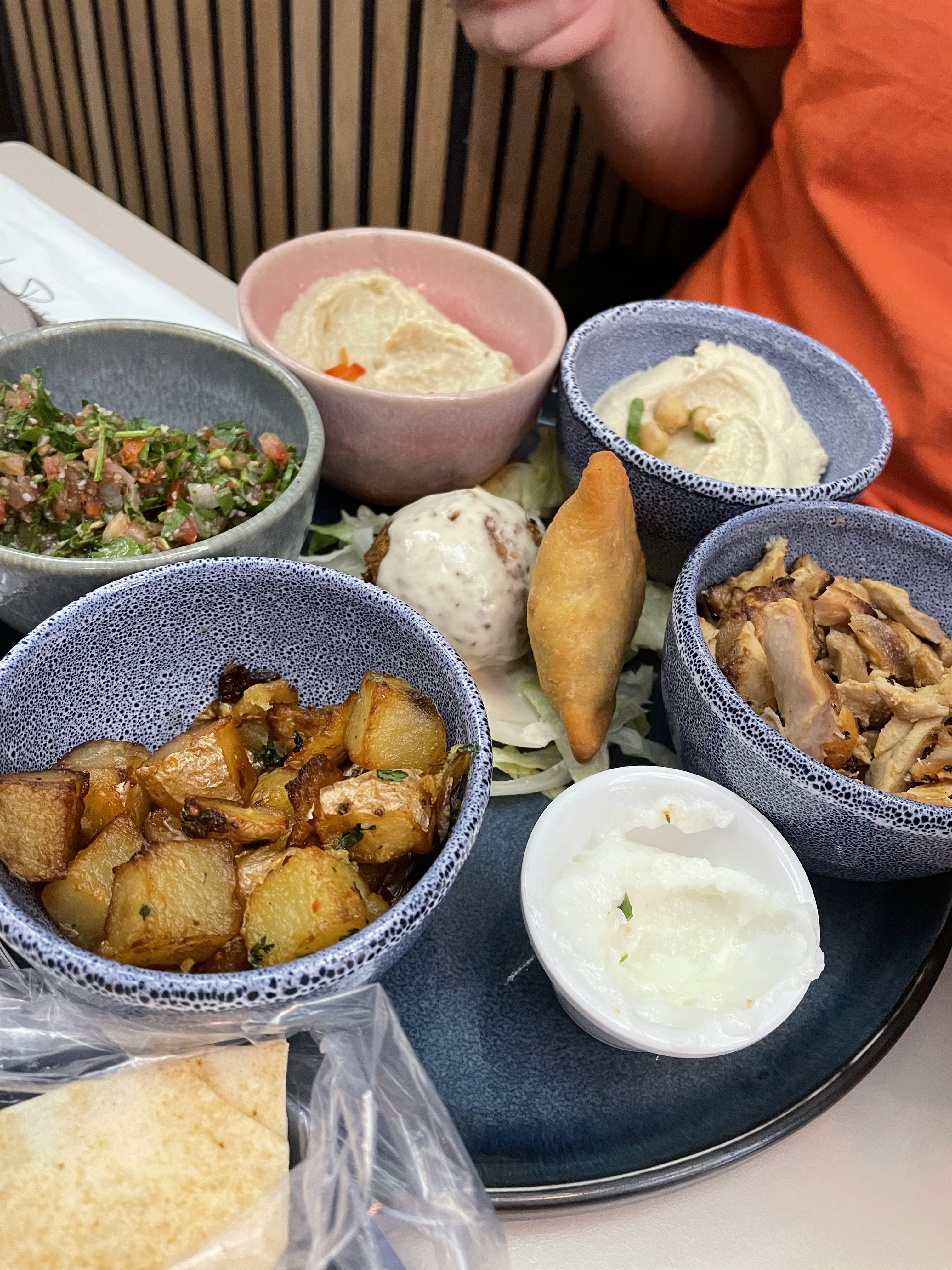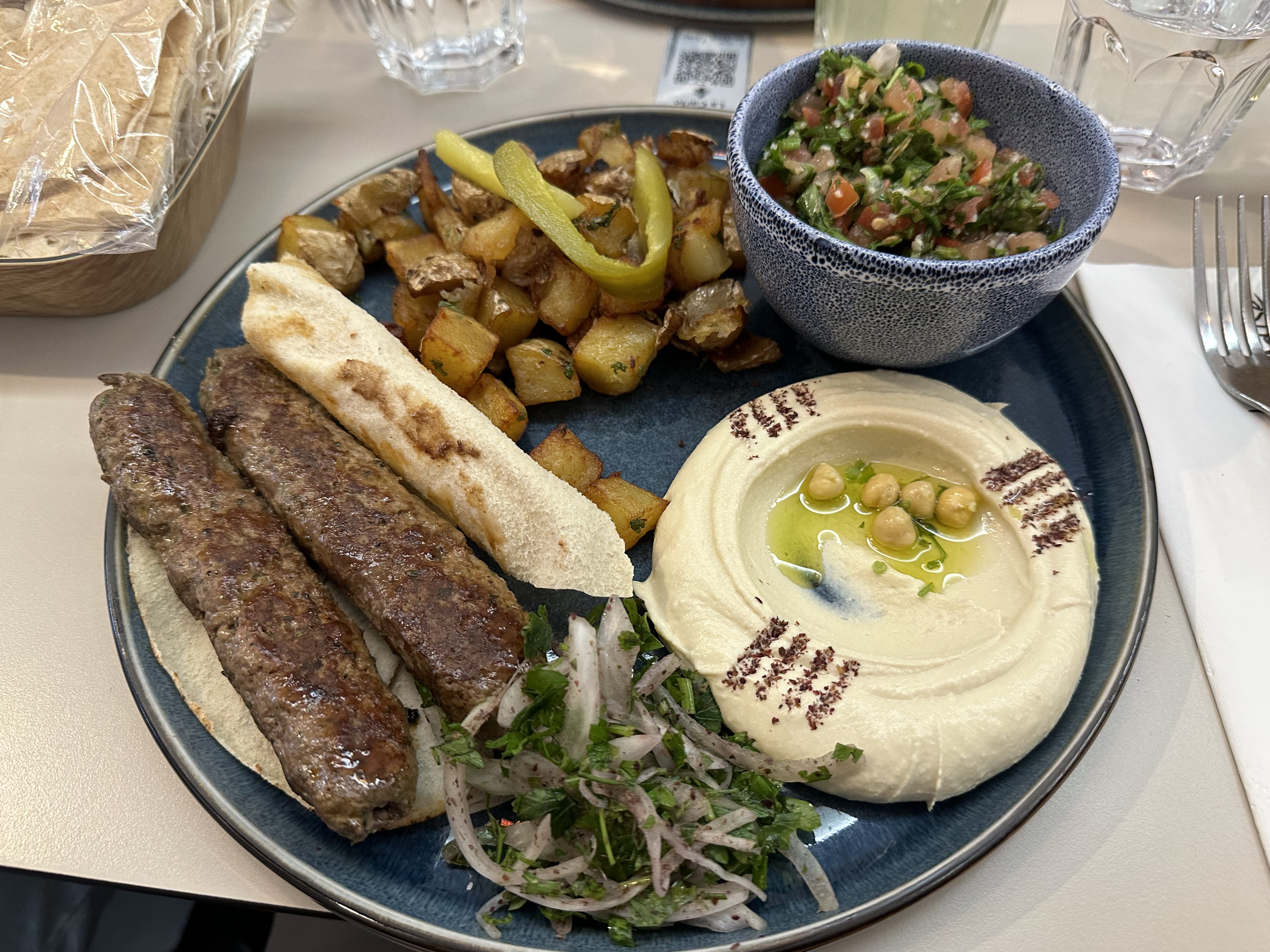 Nous avons testé l'assortiment de mezze. Pour deux personnes, ce ne sont pas les plats en double mais plus de variété. Du froid, du chaud, copieux et succulent! La table était presque trop petite pour accueillir tous ces petits plats. Equipe de service très agréable, ne nous presse pas pour assurer un service supplémentaire.