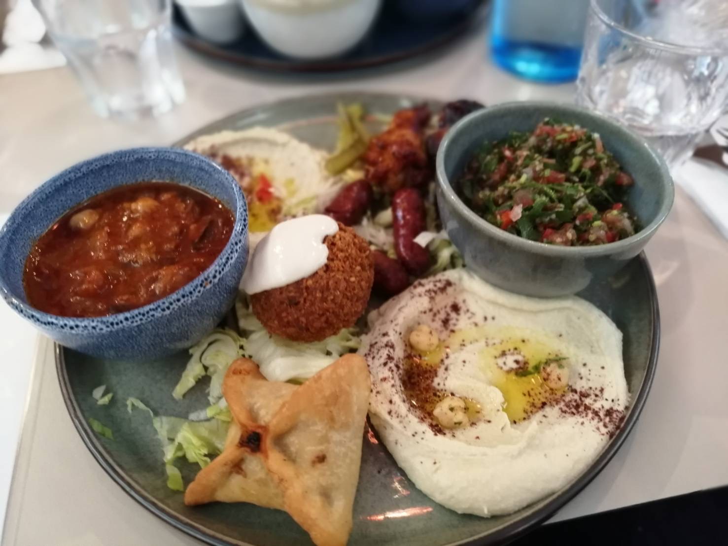 restaurant très agréable et personnels super accueillant et disponible ! Nous avons très bien mangé, le houmous et les samboussiks étaient excellents :) je recommande