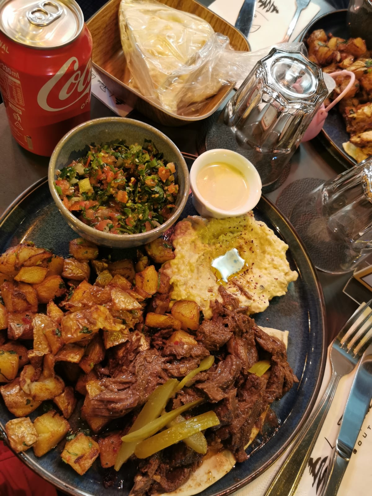 Nous avons diné dans ce restaurant mon épouse et moi. Sans réservation, le restaurant était complet, mais en nous faisant patienter, nous avons pu y entrer. Le personnel est très sympathique et très serviable. Les plats sont très bons et très copieux. Il y'a des combo qui permettent de gouter plusieurs assortiments et 2 viandes différentes dans un seul plat. Je recommande ce restaurant