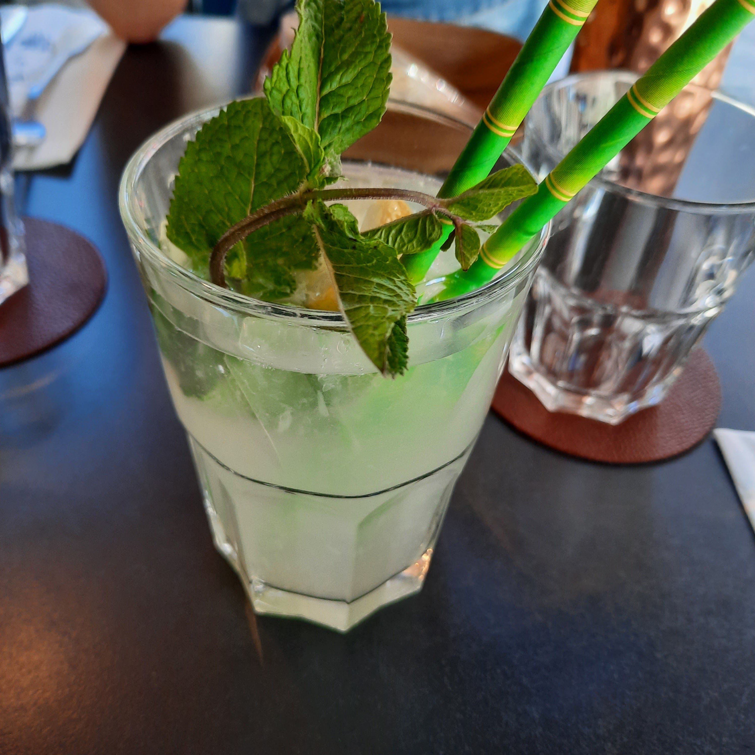 Les tables n'étaient pas déjà disponibles même si on est arrivé à midi 🤣. Les limonades étaient avec fleur d'oranger et menthe. C'était la meilleure limonade que j'ai eu 😍😋🍋 🌿 🌺.