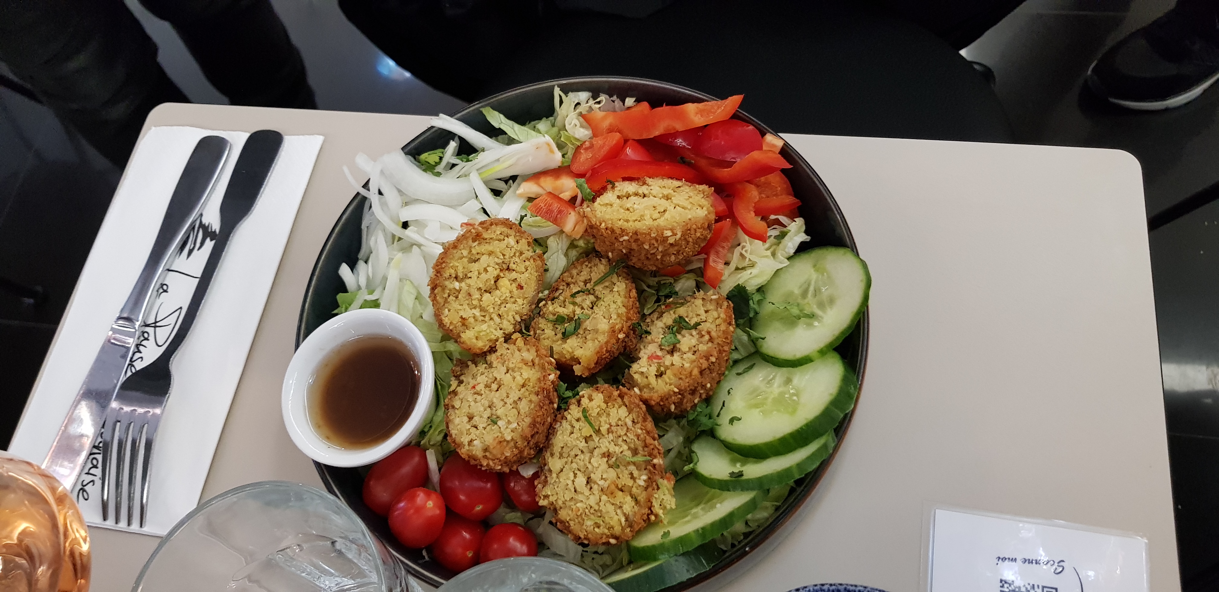 Délicieux moment. J'ai adoré la salade du moine j'en ai même pris a emporter. Le seul bémol est que la serveuse ne pouvait pas nous renseigner sur les plats. Une personne vegan parmi nous. Elle n'a pas su nous dire si l'assiette végé était vegan ou non ou si il y avait du fromage ou non et nous a suggéré de prendre des entrées a la place.