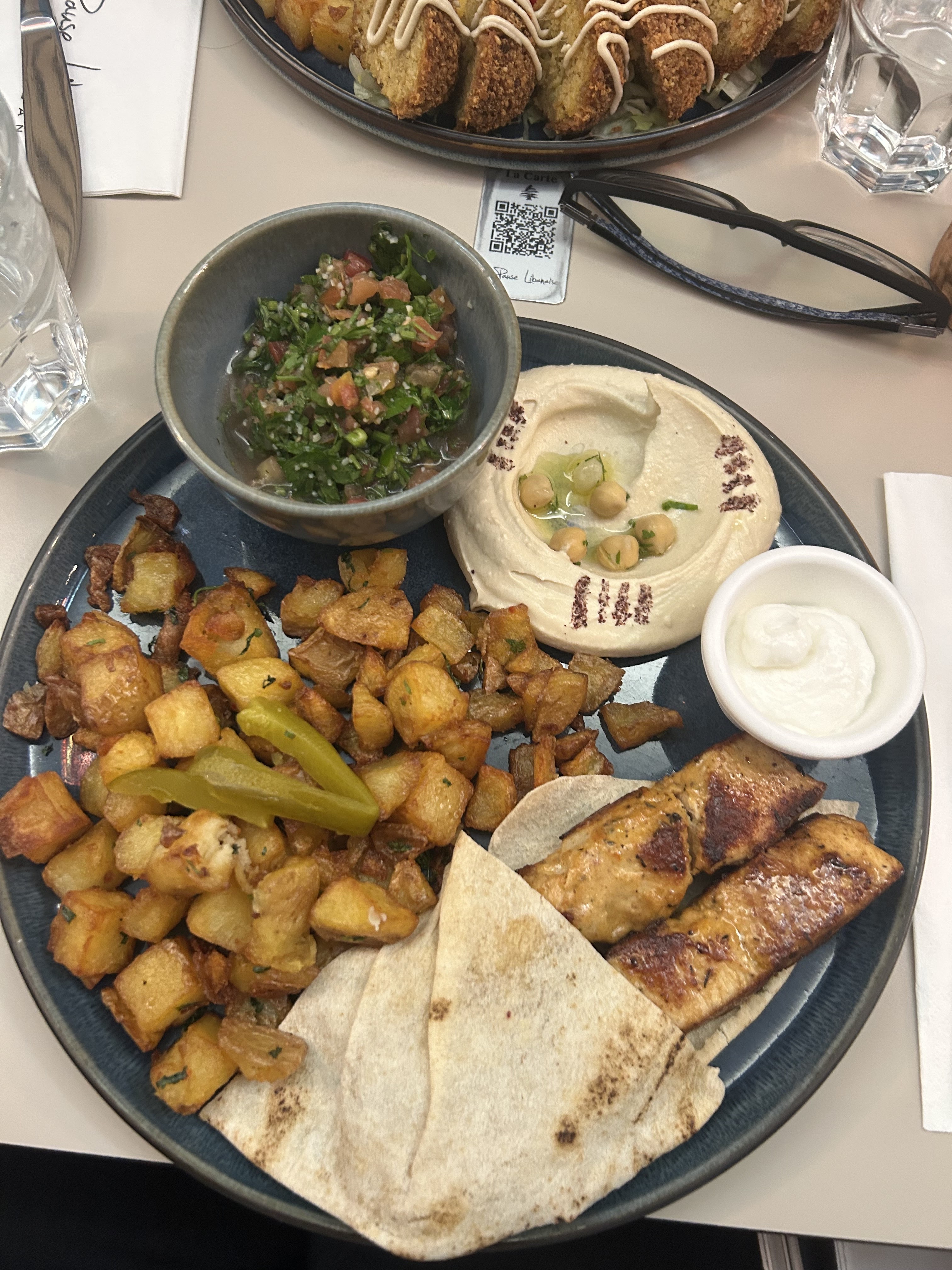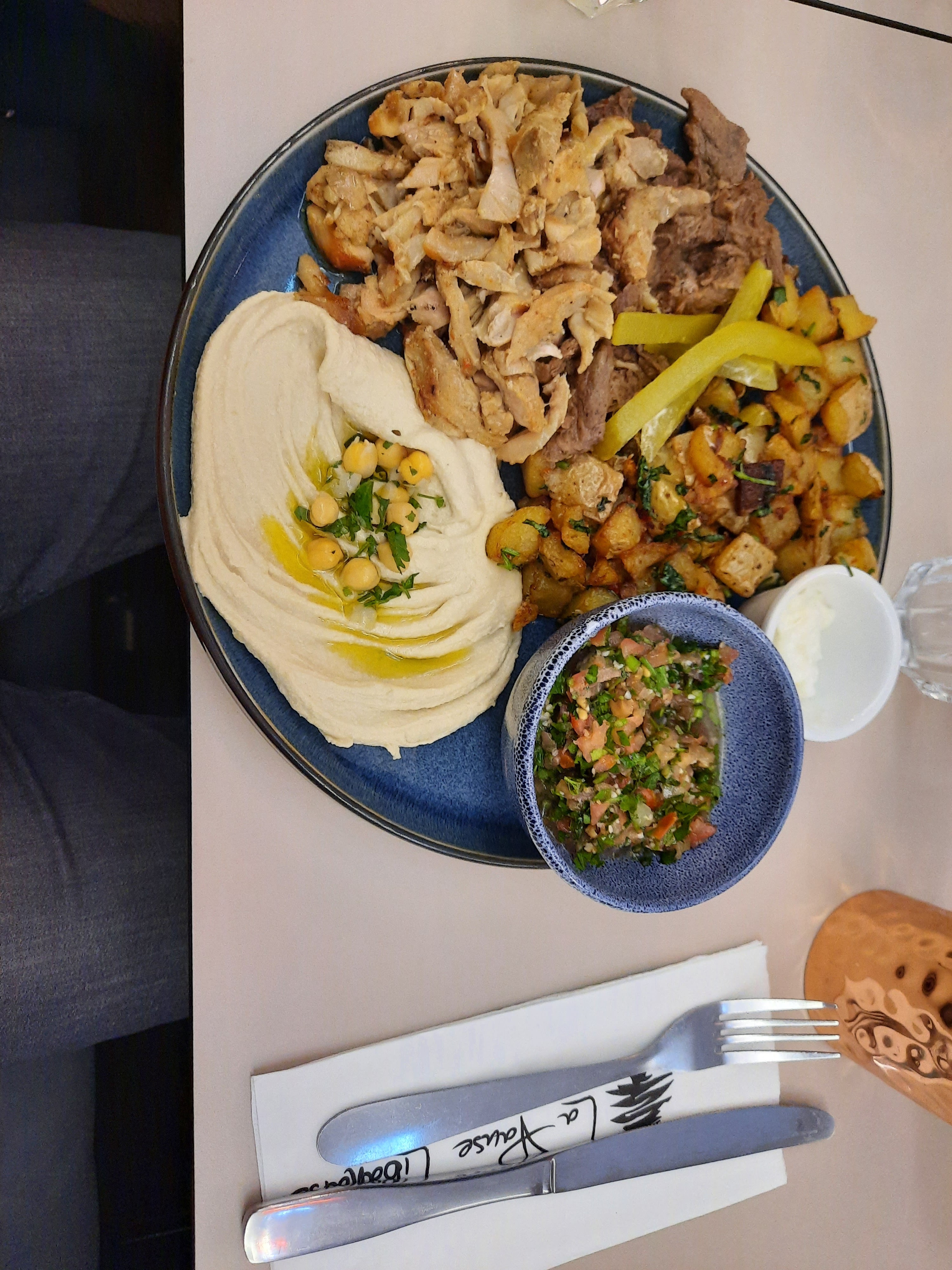 Première fois que nous mangions libanais, c’était la meilleure adresse que nous puissions espérer pour goûter à toutes les spécialités en un repas Copieux mais incroyable et l’équipe de même Merci au patron de nous avoir rajouter un couvert exceptionnellement pour mon ami Et merci au serveur très sympathique, bonne chance pour le diplôme ! ☺️🙏🏼