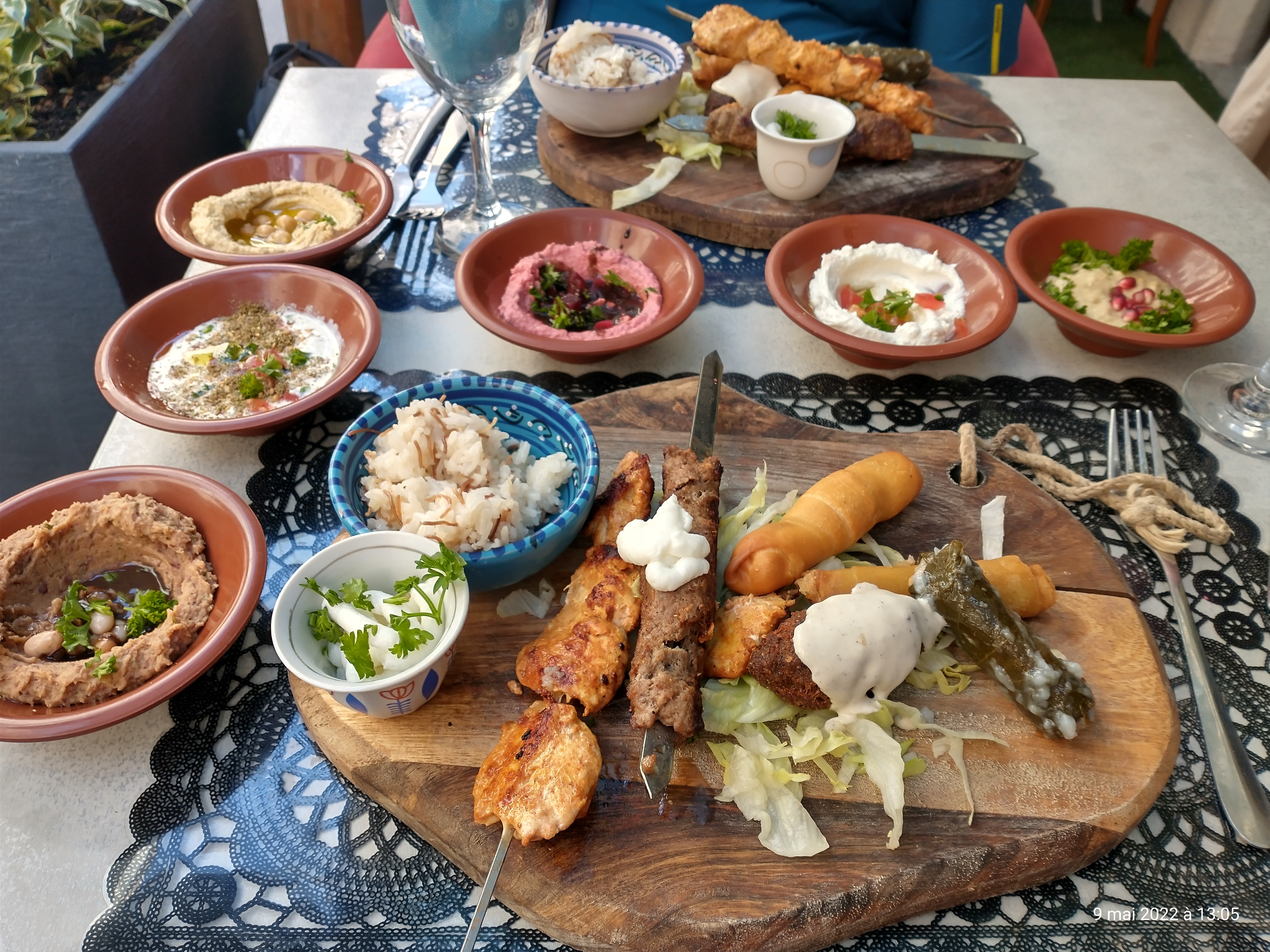Belle découverte, cadre très joli et typique, des saveurs qui font voyager . Seul bémol les samoussas un peu bourratifs avec beaucoup de pâte. Goûté un vin rouge libanais parfait pour accompagner ces mets un peu épicés.