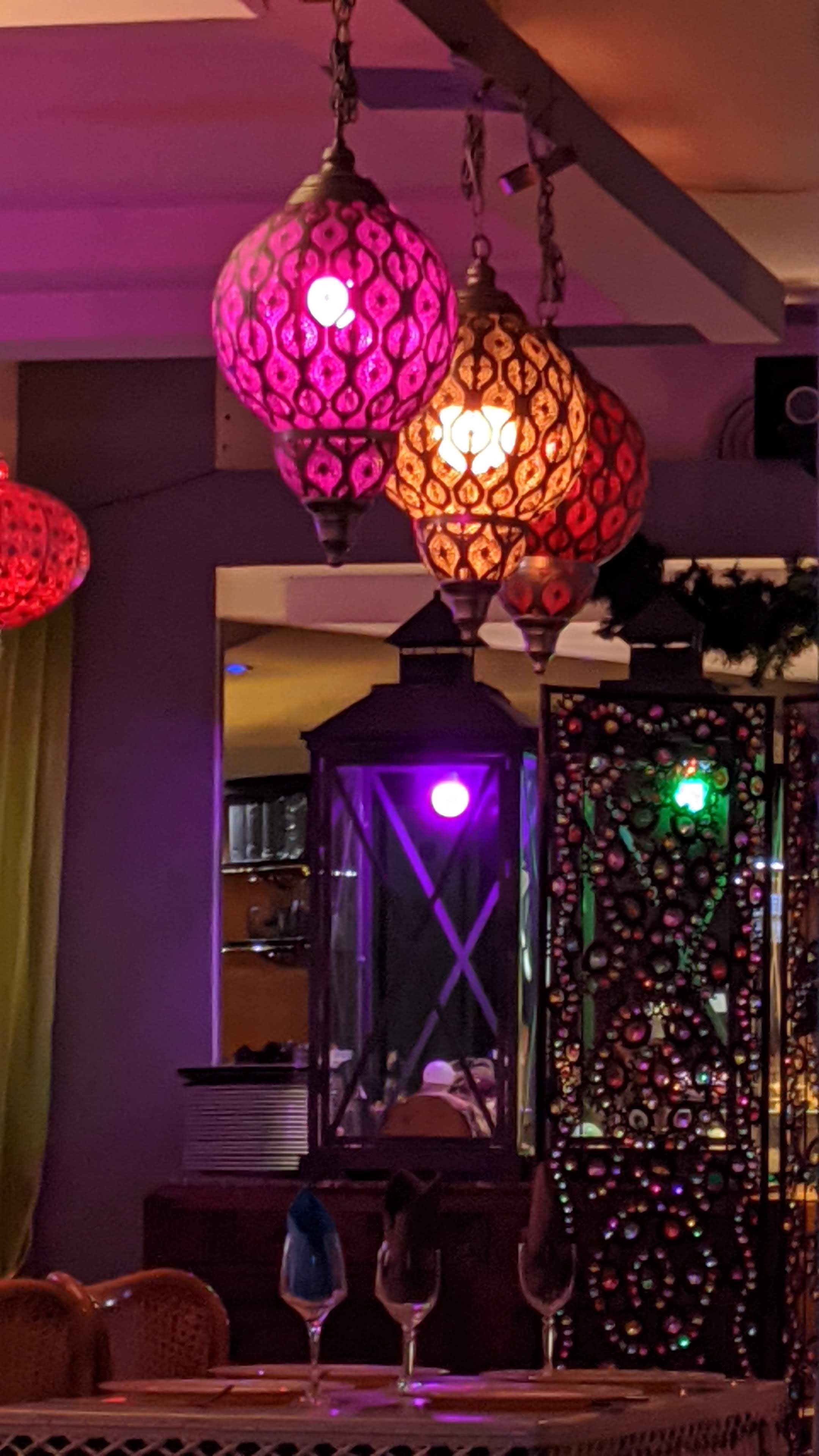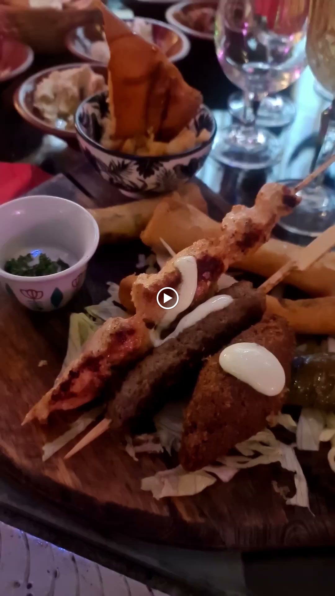 Une ambiance très agréable et chaleureuse avec des éclairage assez sympa. Dans sa globalité la nourriture est bonne mais à ma grande surprise il n'y a pas de dessert. En plus un menu mal fait et complètement incompréhensible car vous n'avez pas vraiment le droit de prendre qqch à la carte il est obligatoire de prendre un menu même si ce n'est pas vraiment indiqué, même si certaines choses peuvent l'être quand même. Exemple, je voulais prendre 4x Samosa qui était sur la carte dans les mezzes, je ne pouvais pas les prendre, il fallait forcément prendre un assortiment de plusieurs friture. Ça reste un restaurant plus friture que autre chose. Au niveau du service les serveuse ne sont pas très dégourdi pas extrêmement accueillante et n'étaient pas capable de nous donner le nom de l'unique vin rouge du restaurant, probablement de la piquette de carrefour. Si vous voulez y aller prenez du cash parce que la machine a carte à l'air d'avoir qq problème.