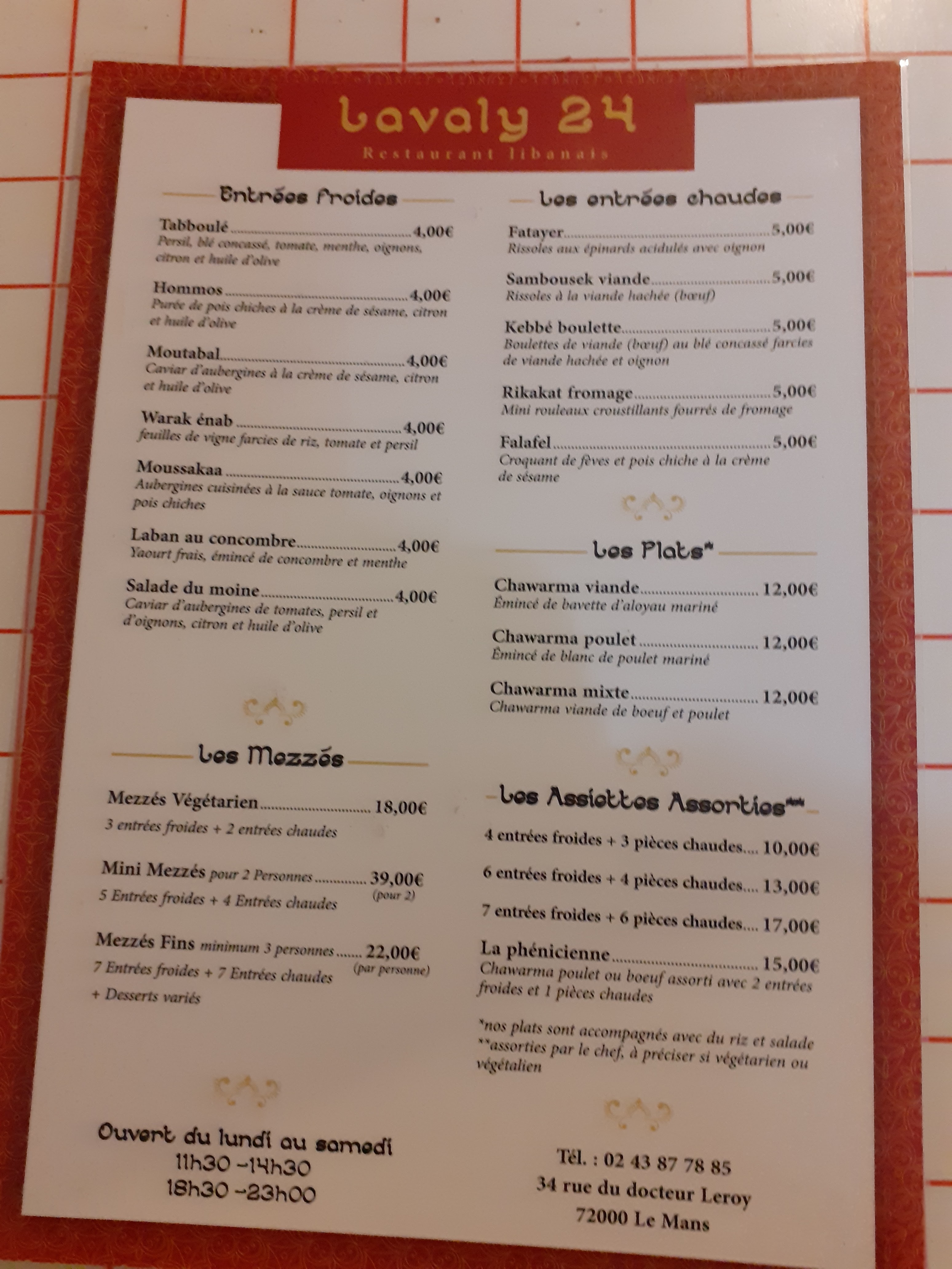 Voici toutes les informations sur le Restaurant libanais Layaly 24 qui ce trouve au 34 Rue du Dr Leroy, 72000 Le Mans (72). Sur cette fiche vous trouverez les photos, l'adresse, les horaires d'ouverture, le numero de téléphone et les avis clients.Vous pouvez églement rédiger un avis si vous le souhaitez en bas de page.